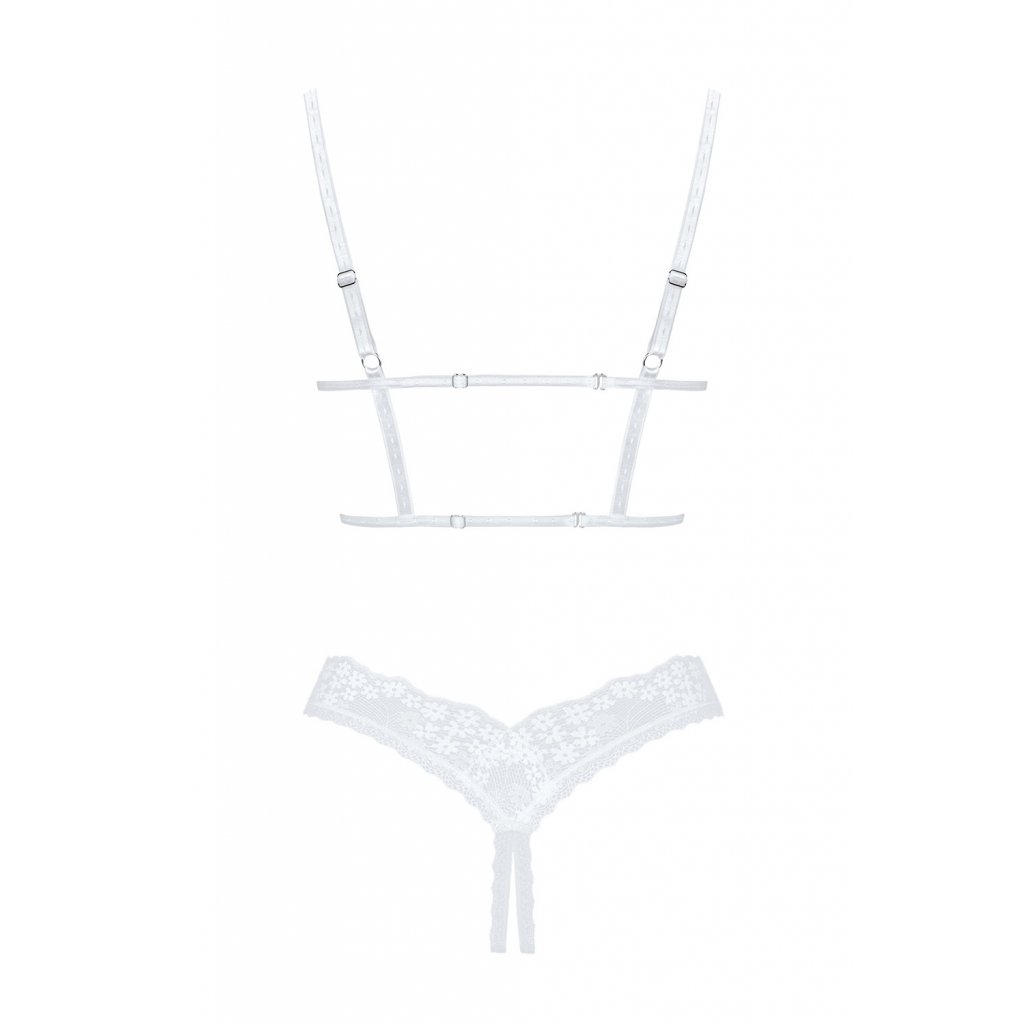 Podívejte se na lákavé detaily: - souprava Heavenlly obsahuje otevřenou podprsenku a otevřená tanga - ještě větší potěšení - kostice v košíčku - krásný vzhled prsou - nastavitelné ramínka na zádech  - dobře sedí - šperkový přívěsek - třpytivý doplněk - krásné, příjemné materiálySložení: 90% polyamid, 10% elastan.