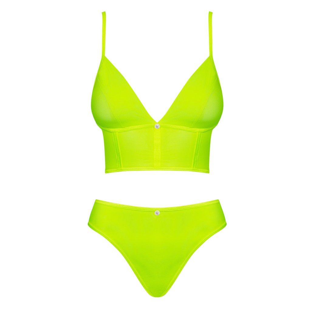 V této sadě budete zdánlivě nevinní, ale co se pod touto svůdnou fasádou skrývá ve skutečnosti... Váš milý to zjistí! Neobvyklý střih Neonia přiměje vašeho muže věnovat pozornost vašim krásně vypadajícím ňadrům a nádherně odhalenému bříšku. Přiznejte si, že rádi dráždíte smysly v netradičním spodním prádle.Další podrobnosti: