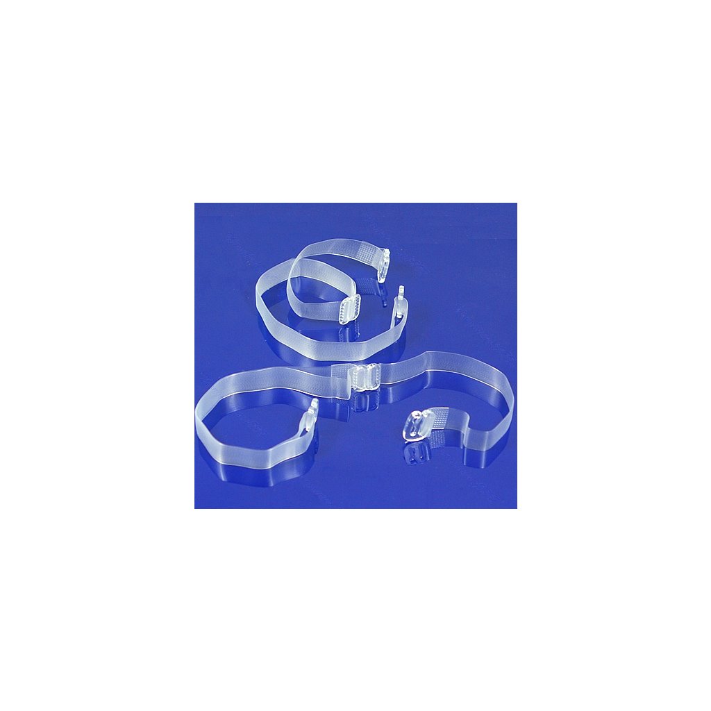Čiré silikonové ramínka s plastovými háčky. Ramínka jsou určena především pro podprsenky jejichž původní textilní ramínka jsou stejné šíře. Ramínka mají šířku 10 mm a délku při maximálním uvolnění 47 cm.