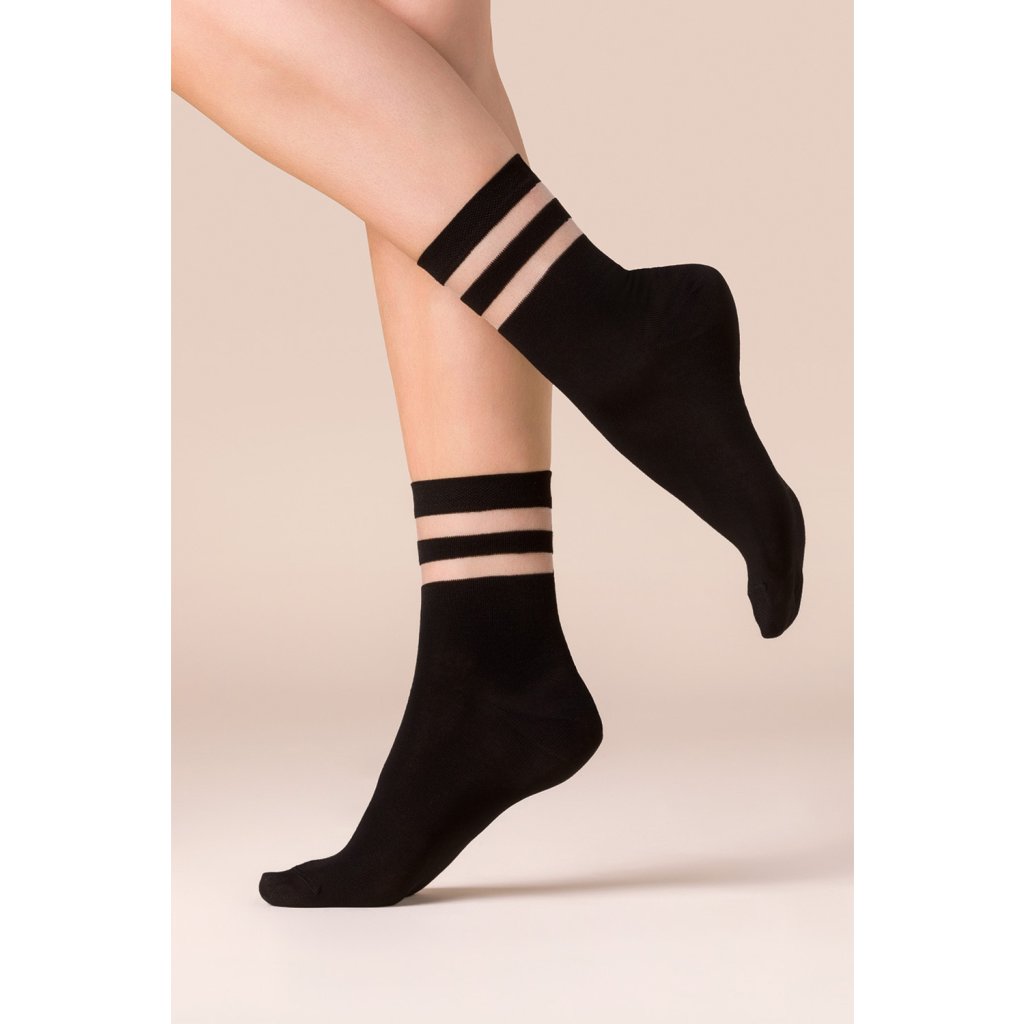 Dámské jednobarevné ponožky 528 Cami značky Gabriella s obsahem vlákna typu Lycra. Jednobarevné ponožky jsou ozdobené dvěma proužky na kotníku. Ponožky jsou šité plochým švem, bez vyznačené špice.- tloušťka 40 den
