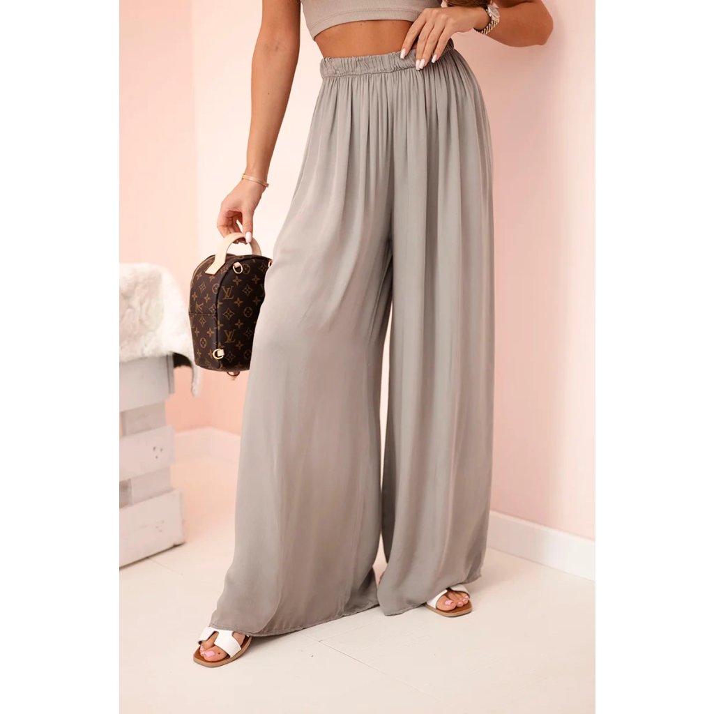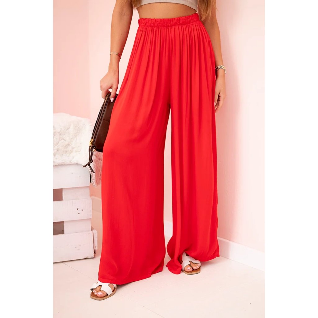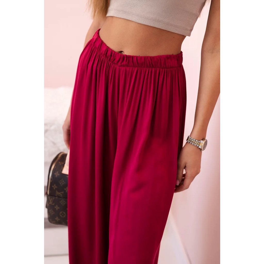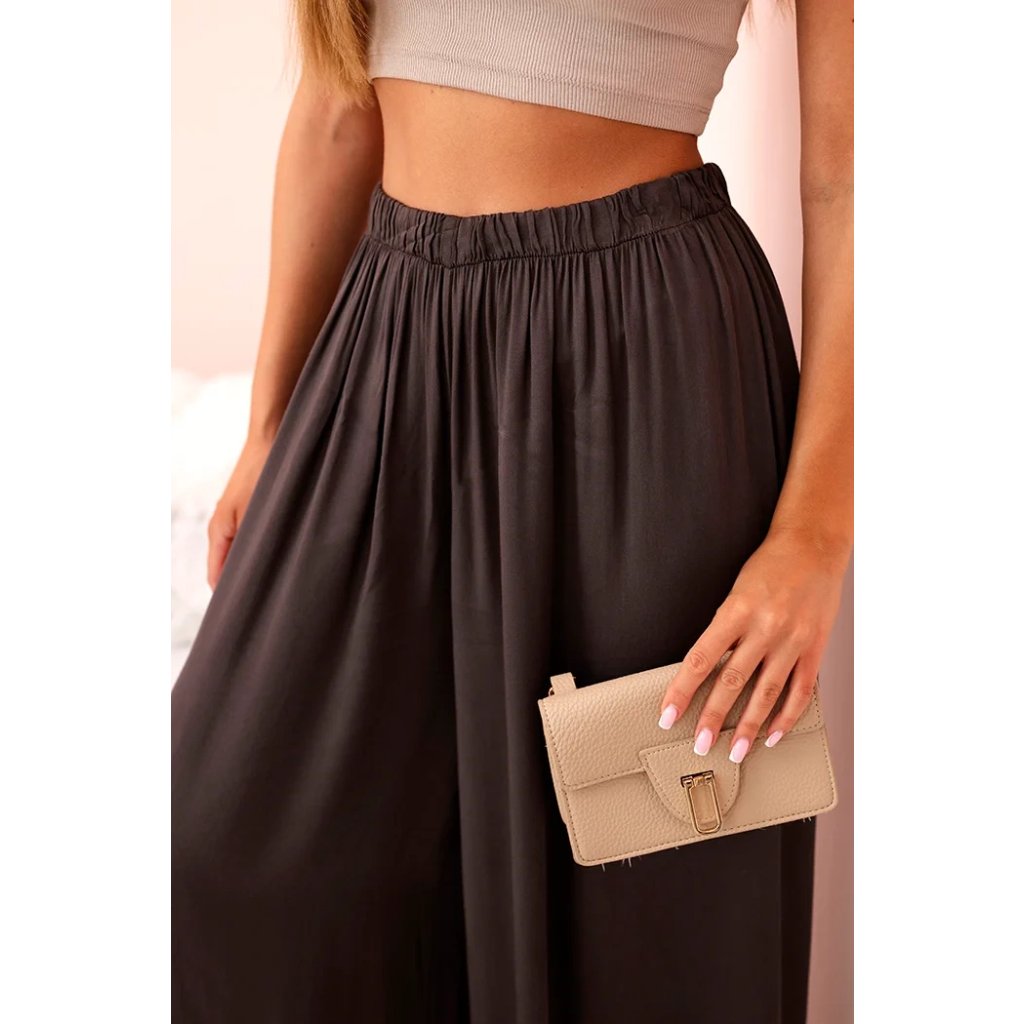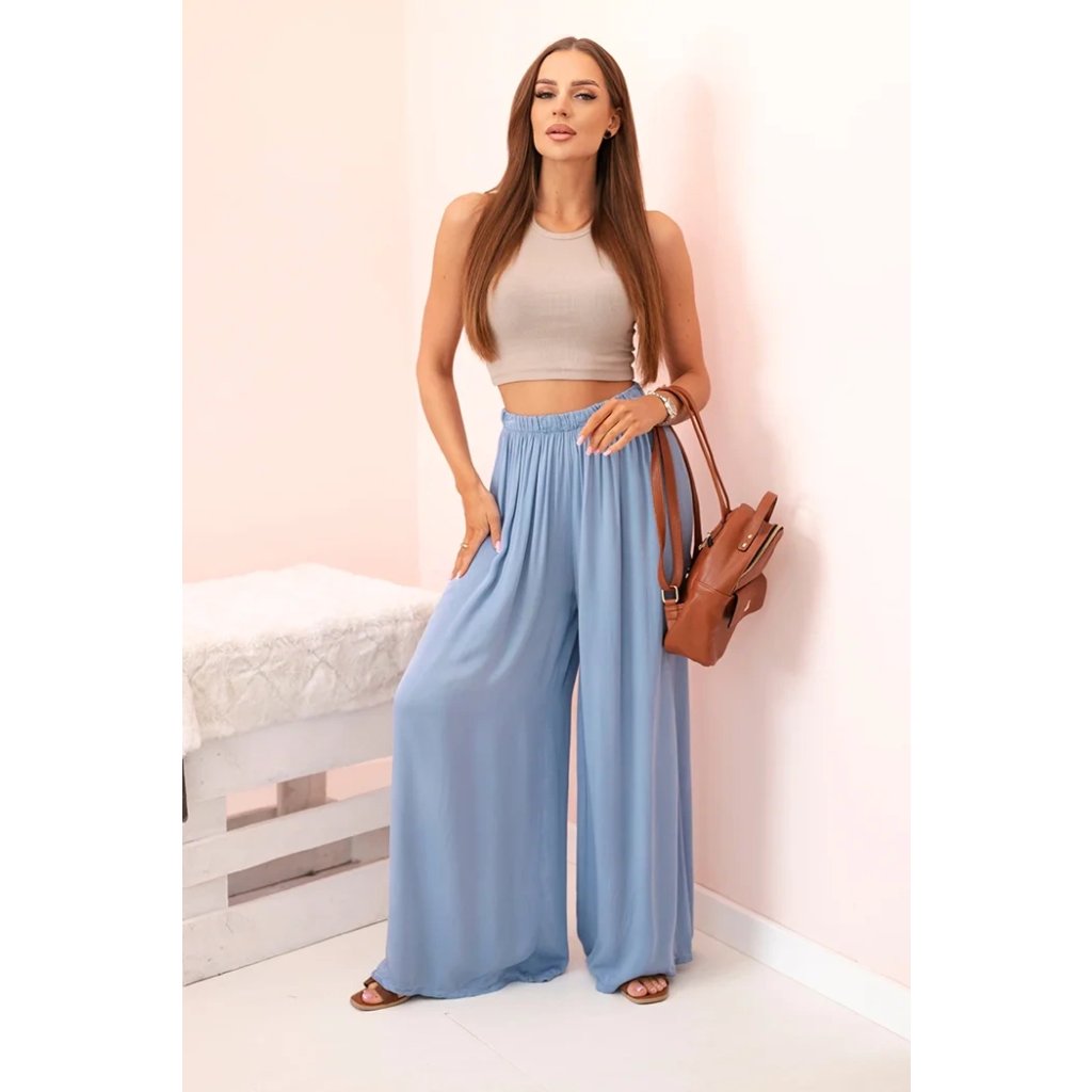 Tyto jedinečné dámské kalhoty kombinují pohodlí a styl. Jsou vyrobeny ze 100% viskózy, což je činí lehkými, vzdušnými a dokonale přizpůsobitelnými postavě. Široké nohavice dodávají elegantní, splývavý vzhled, který se hodí jak na každodenní nošení, tak pro výjimečné příležitosti. Díky elastické gumě v pase poskytují pohodlí a volnost pohybu. Můžete je kombinovat s elegantní halenkou nebo volným tričkem – vždy budou vypadat módně!