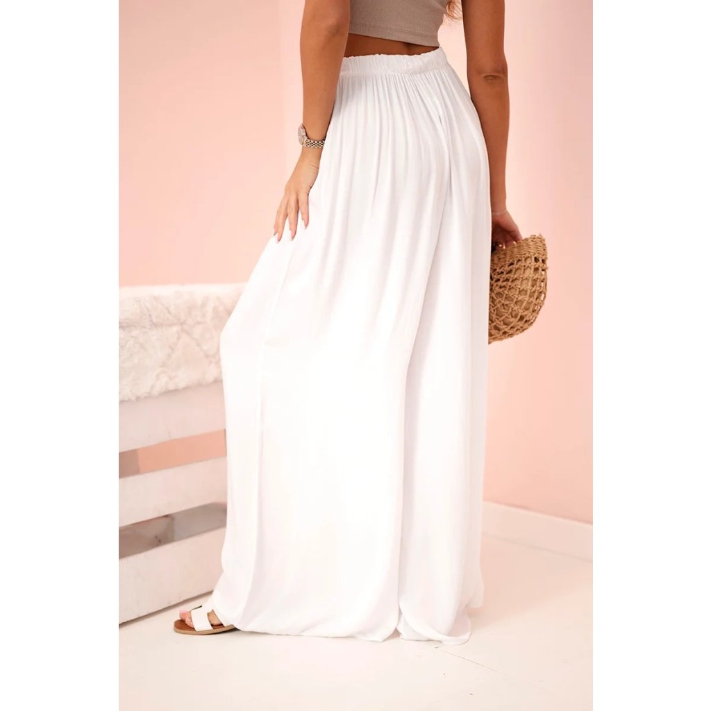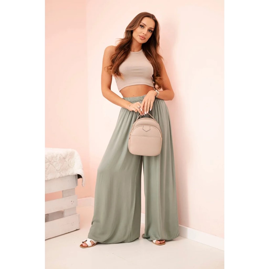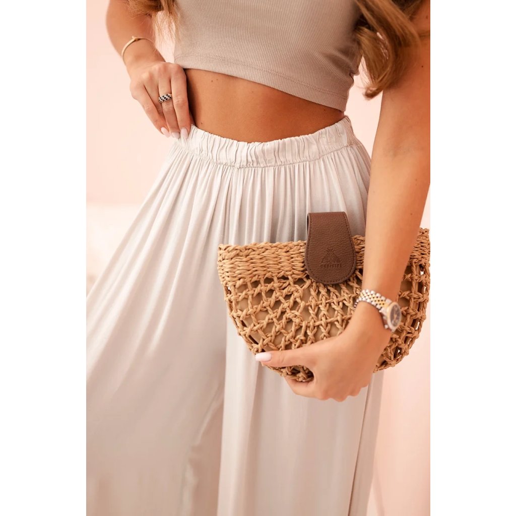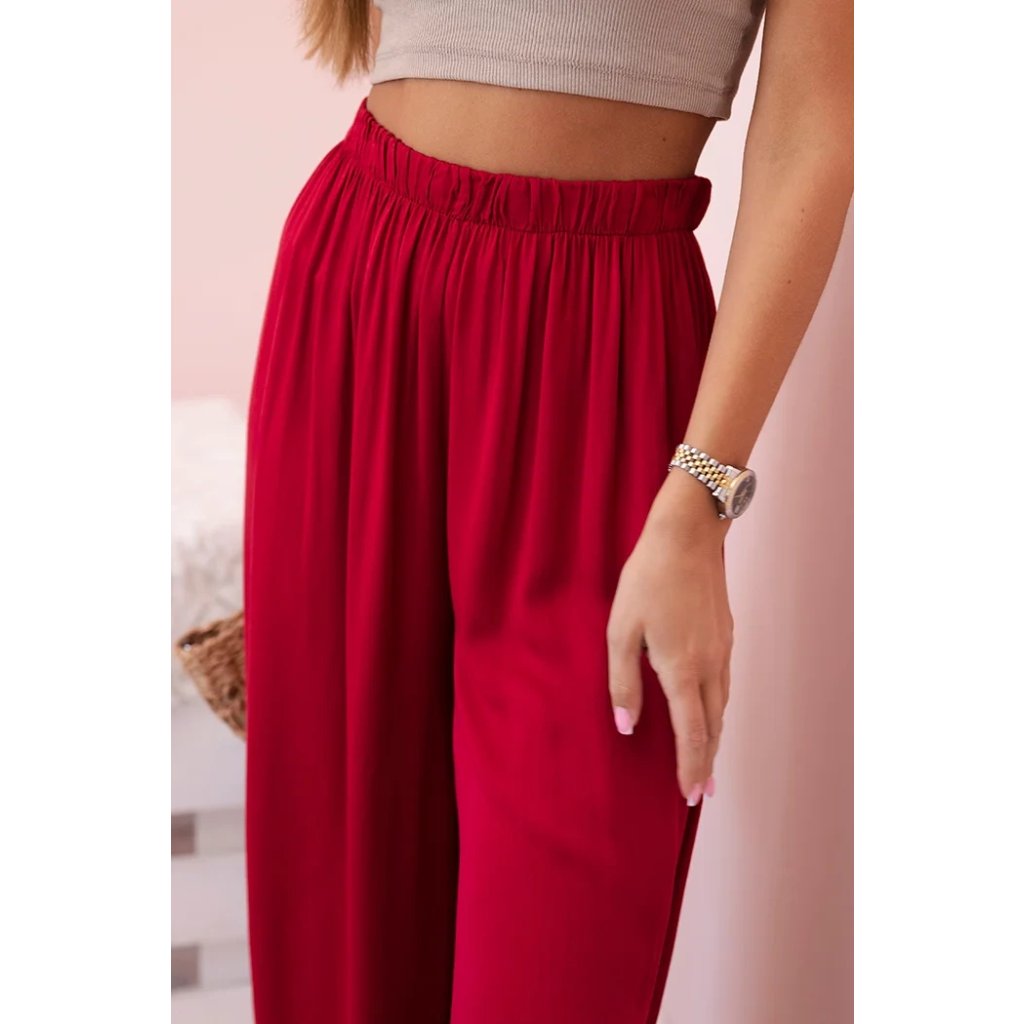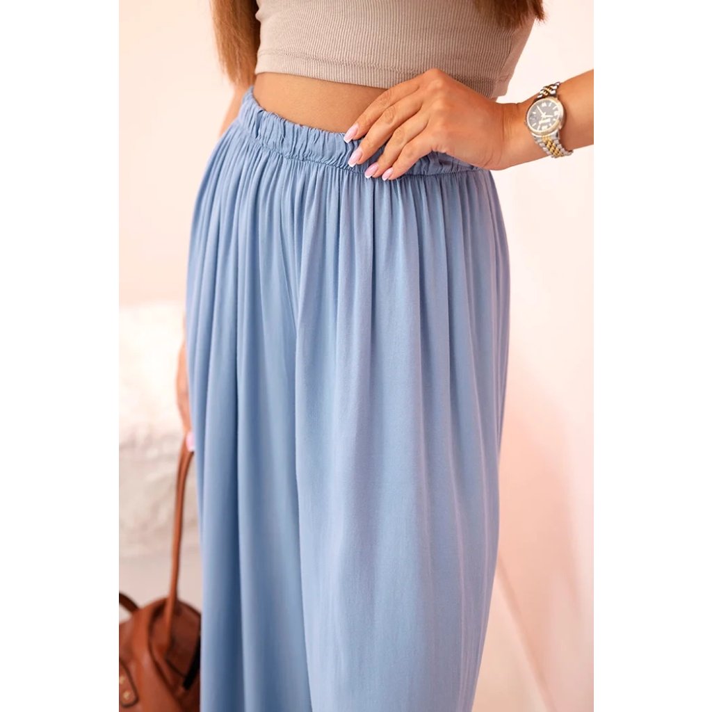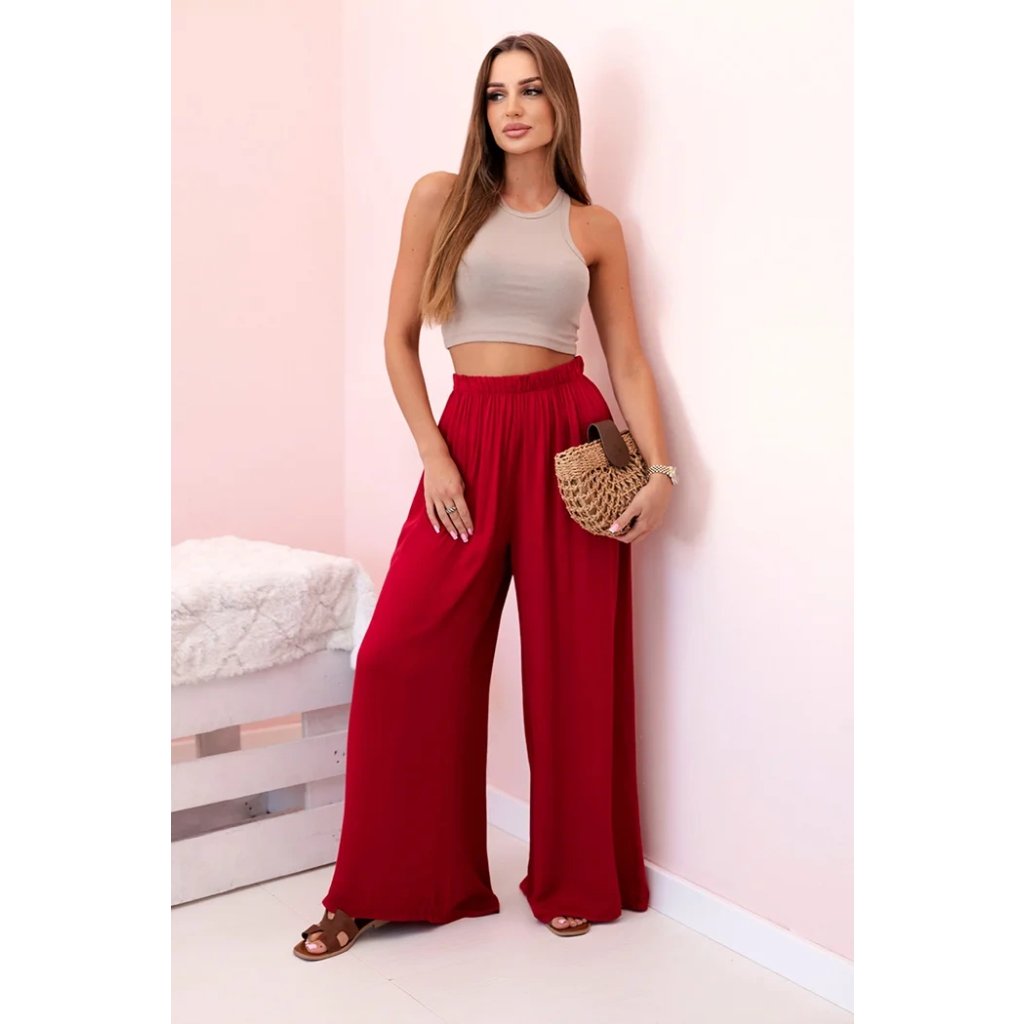 Tyto jedinečné dámské kalhoty kombinují pohodlí a styl. Jsou vyrobeny ze 100% viskózy, což je činí lehkými, vzdušnými a dokonale přizpůsobitelnými postavě. Široké nohavice dodávají elegantní, splývavý vzhled, který se hodí jak na každodenní nošení, tak pro výjimečné příležitosti. Díky elastické gumě v pase poskytují pohodlí a volnost pohybu. Můžete je kombinovat s elegantní halenkou nebo volným tričkem – vždy budou vypadat módně!