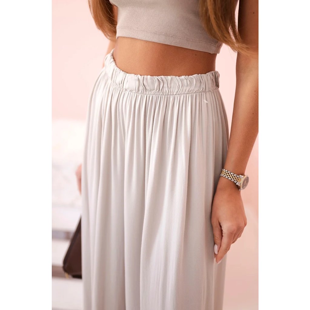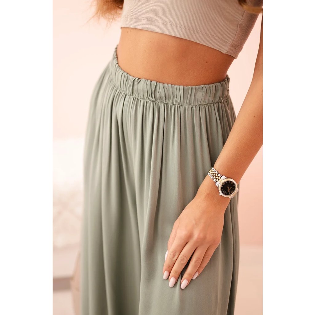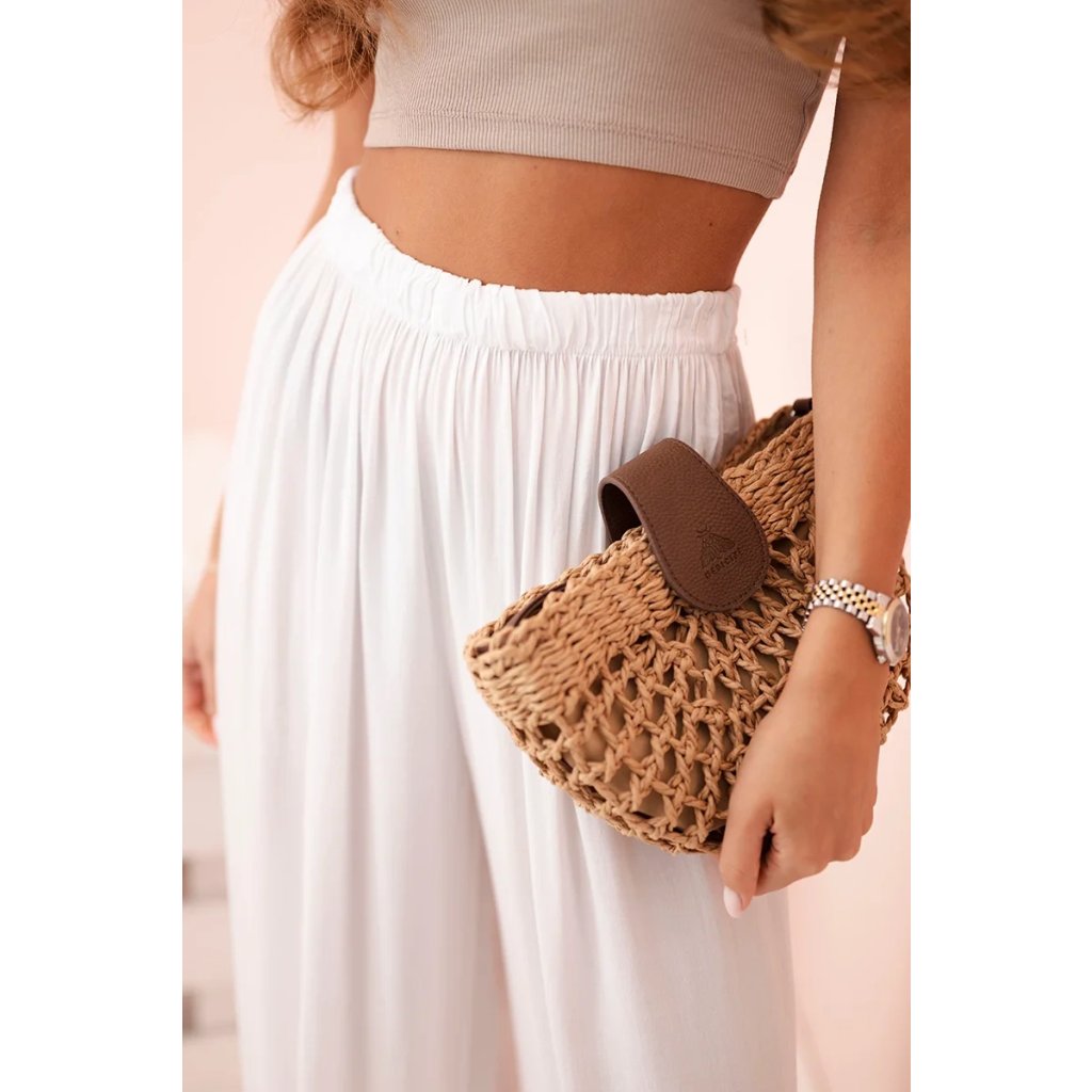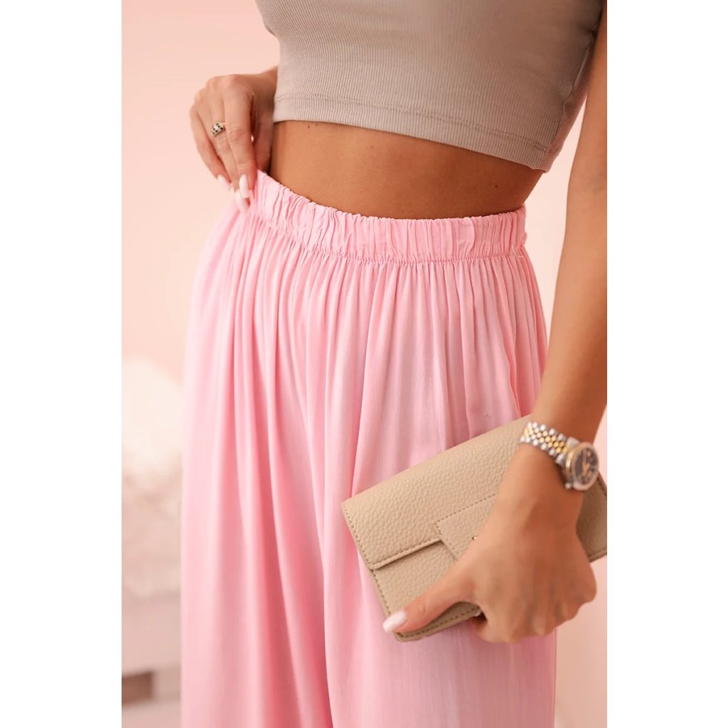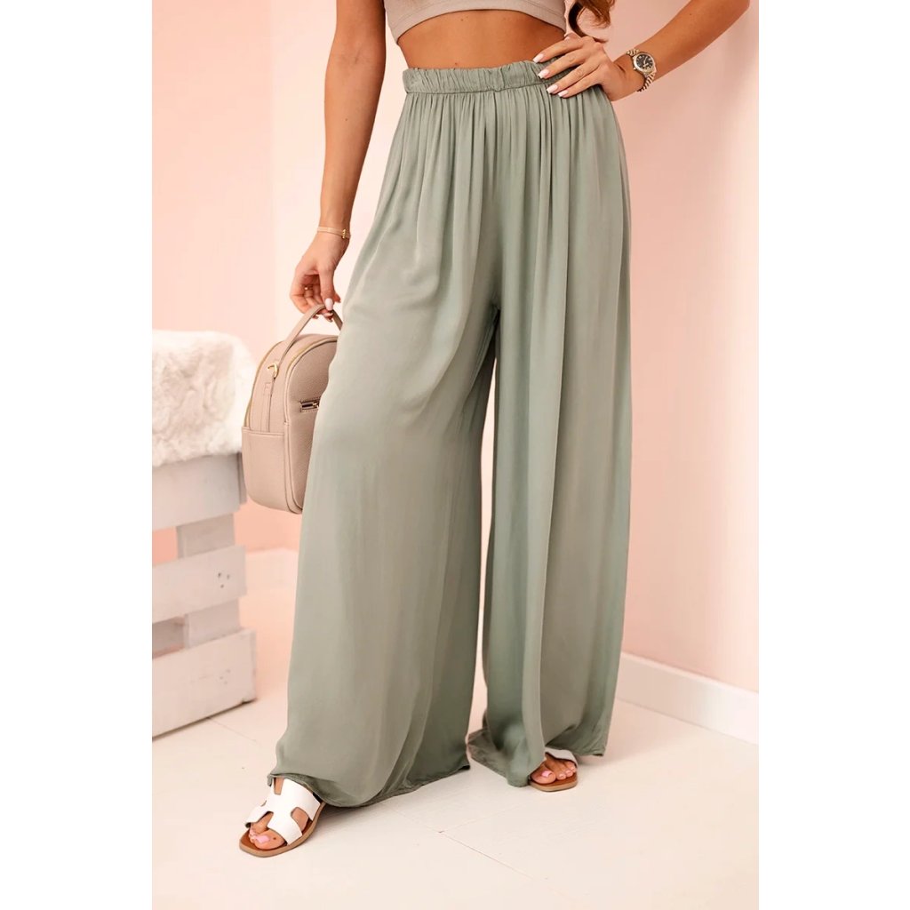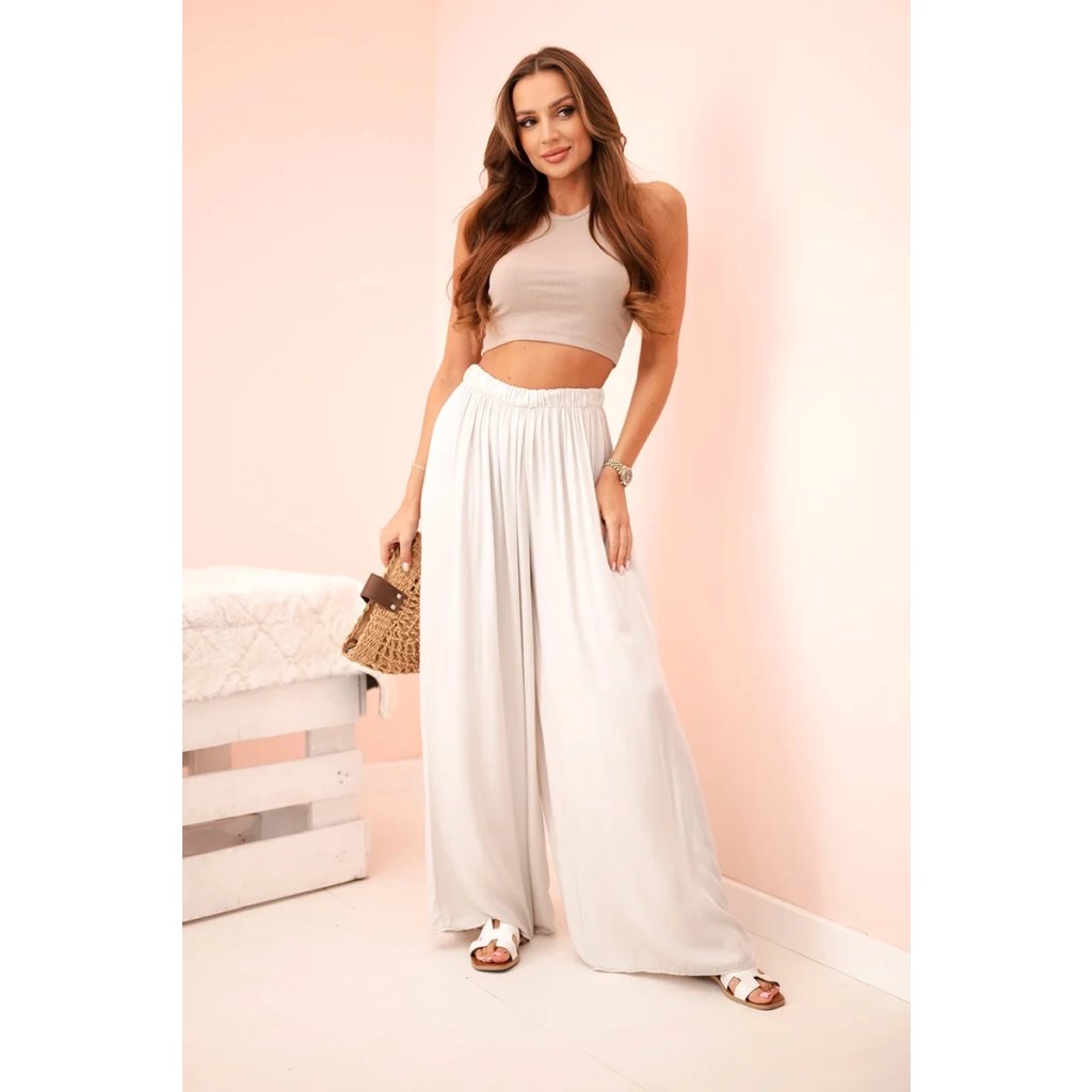 Tyto jedinečné dámské kalhoty kombinují pohodlí a styl. Jsou vyrobeny ze 100% viskózy, což je činí lehkými, vzdušnými a dokonale přizpůsobitelnými postavě. Široké nohavice dodávají elegantní, splývavý vzhled, který se hodí jak na každodenní nošení, tak pro výjimečné příležitosti. Díky elastické gumě v pase poskytují pohodlí a volnost pohybu. Můžete je kombinovat s elegantní halenkou nebo volným tričkem – vždy budou vypadat módně!