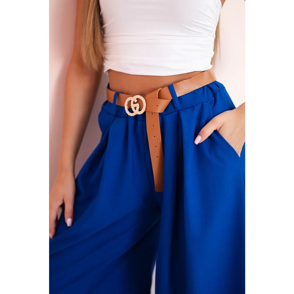 Stylové kalhoty se širokými nohavicemi jsou skvělou volbou pro ženy, které oceňují pohodlí a moderní vzhled. Vyrobené z vysoce kvalitního materiálu, skvěle padnou na postavu a zdůrazňují její přednosti. Pásek v sadě umožňuje dokonalé přizpůsobení v pase a dodává celku elegantní charakter. Díky širokým nohavicím kalhoty vypadají velmi efektně a zároveň poskytují volnost pohybu. Ideální jak pro každodenní outfity, tak pro formálnější příležitosti – skvěle se hodí k elegantní halence, košili nebo přiléhavému svetru. Univerzální velikost je vhodná pro ženy nosící velikosti S, M nebo L.