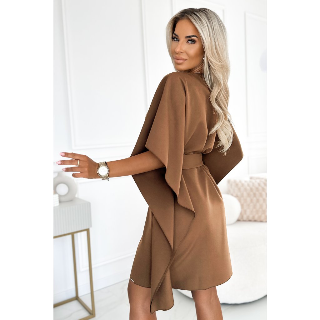 SOFIA Motýlí šaty s vázáním v pase - cappuccino 287-39 - výprodej