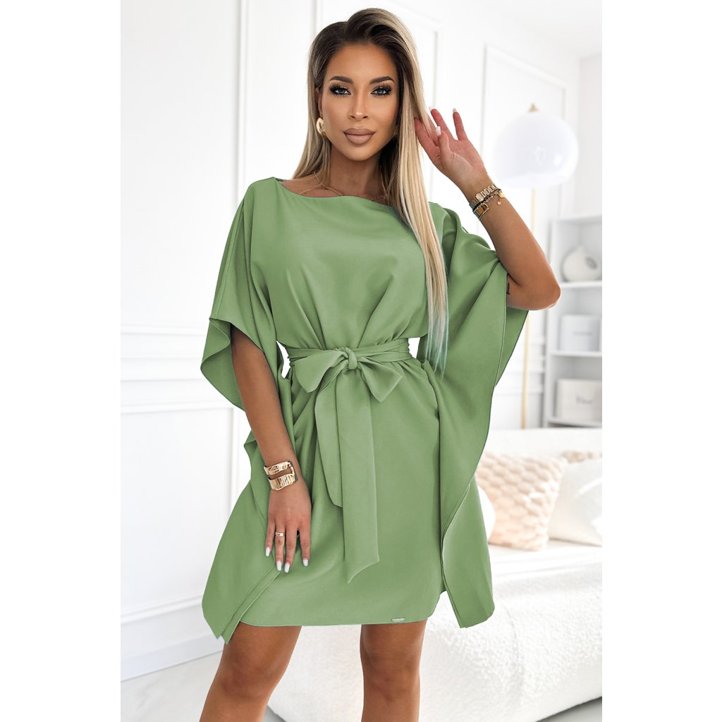 SOFIA Motýlí šaty s páskem - olivová barva. Vyrobeno z materiálu příjemného na dotek. Značka numoco. Polská výroba.