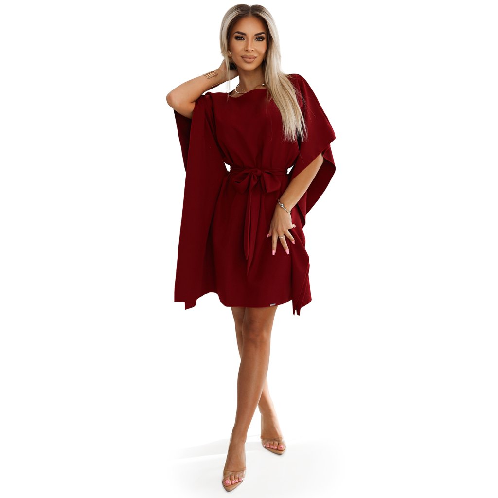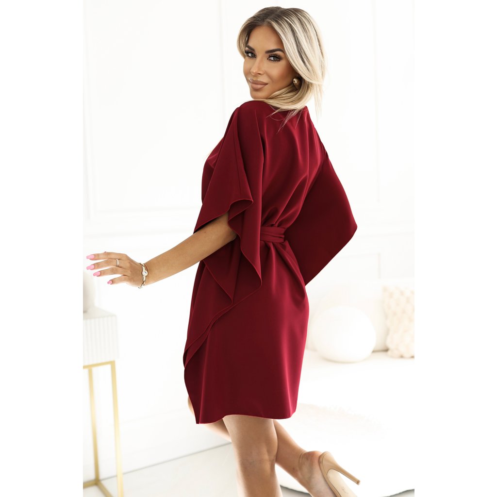 SOFIA Motýlí šaty se zavazováním v pase - Vínová barva 287-34