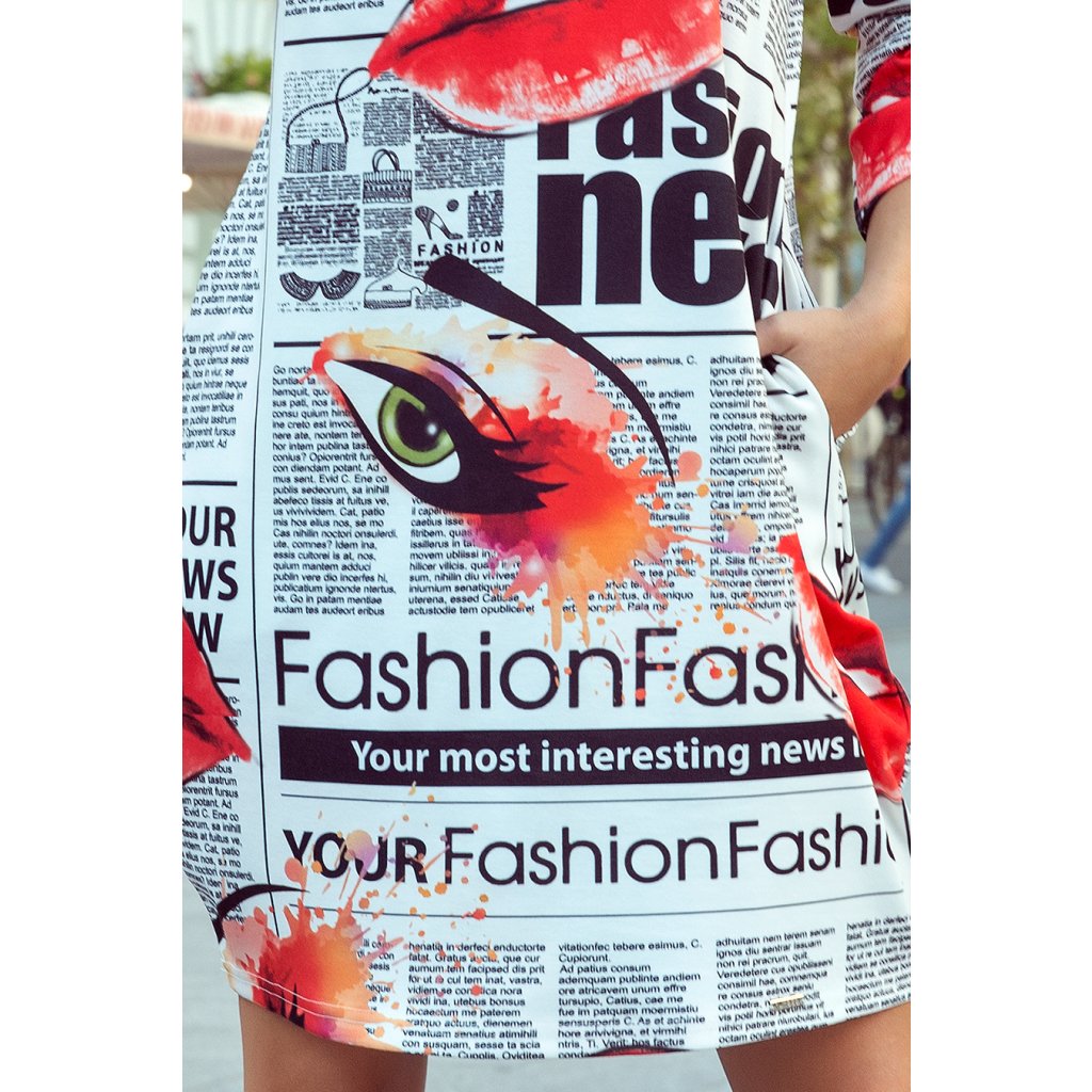 SOPHIE Pohodlné nadměrné šaty - novinový vzor 281-1