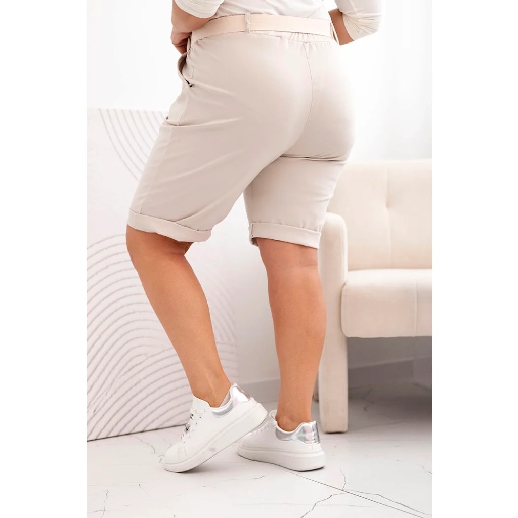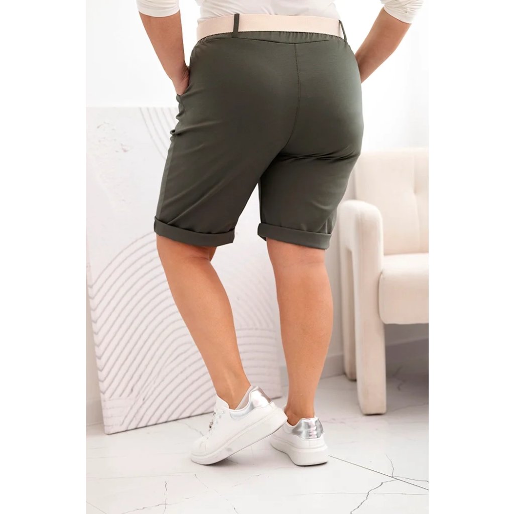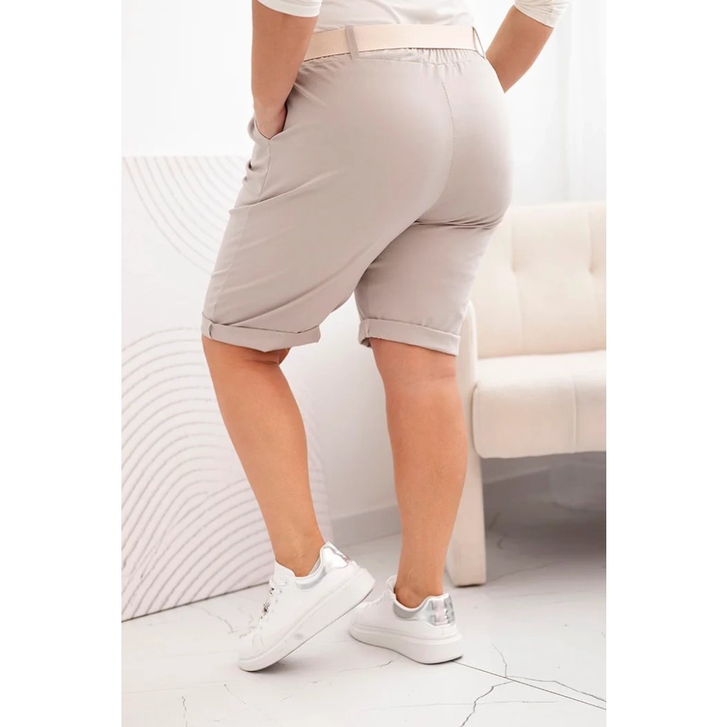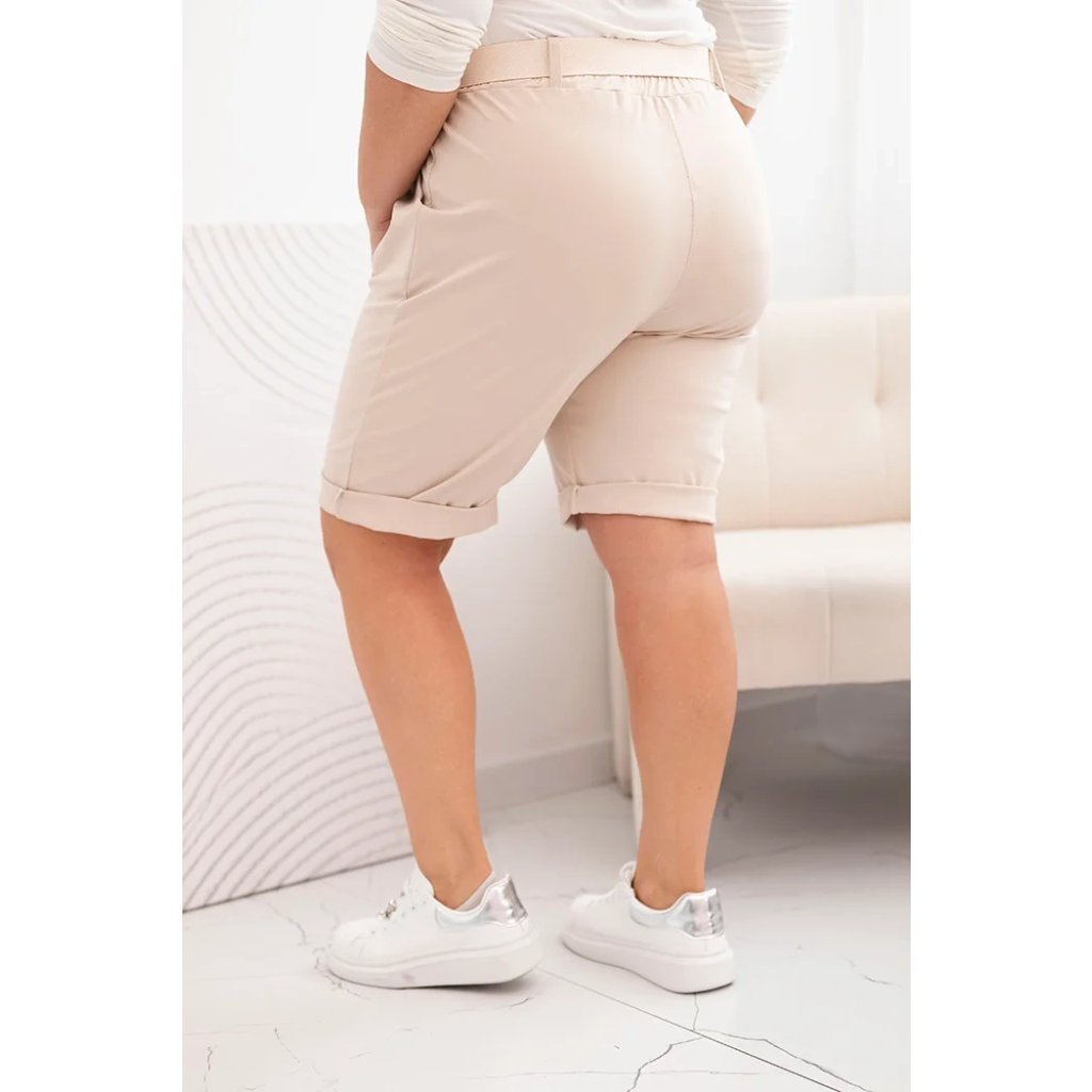 Tyto elegantní dámské šortky s vysokým pasem jsou skvělou volbou pro jarní a letní outfity. Vyrobené z příjemného materiálu, poskytují celodenní pohodlí a pružný pas s páskem umožňuje přizpůsobení postavě. Stylové ohrnutí nohavic jim dodává ležérní vzhled, takže se hodí jak na každodenní nošení, tak i pro elegantnější příležitosti – např. do práce, na schůzku nebo procházku. Šortky jsou lehké a prodyšné, ideální pro teplejší dny. Jejich univerzální střih se skvěle hodí ke košili, halence nebo topu. Jsou must-have v šatníku každé ženy, která si cení pohodlí a stylu.