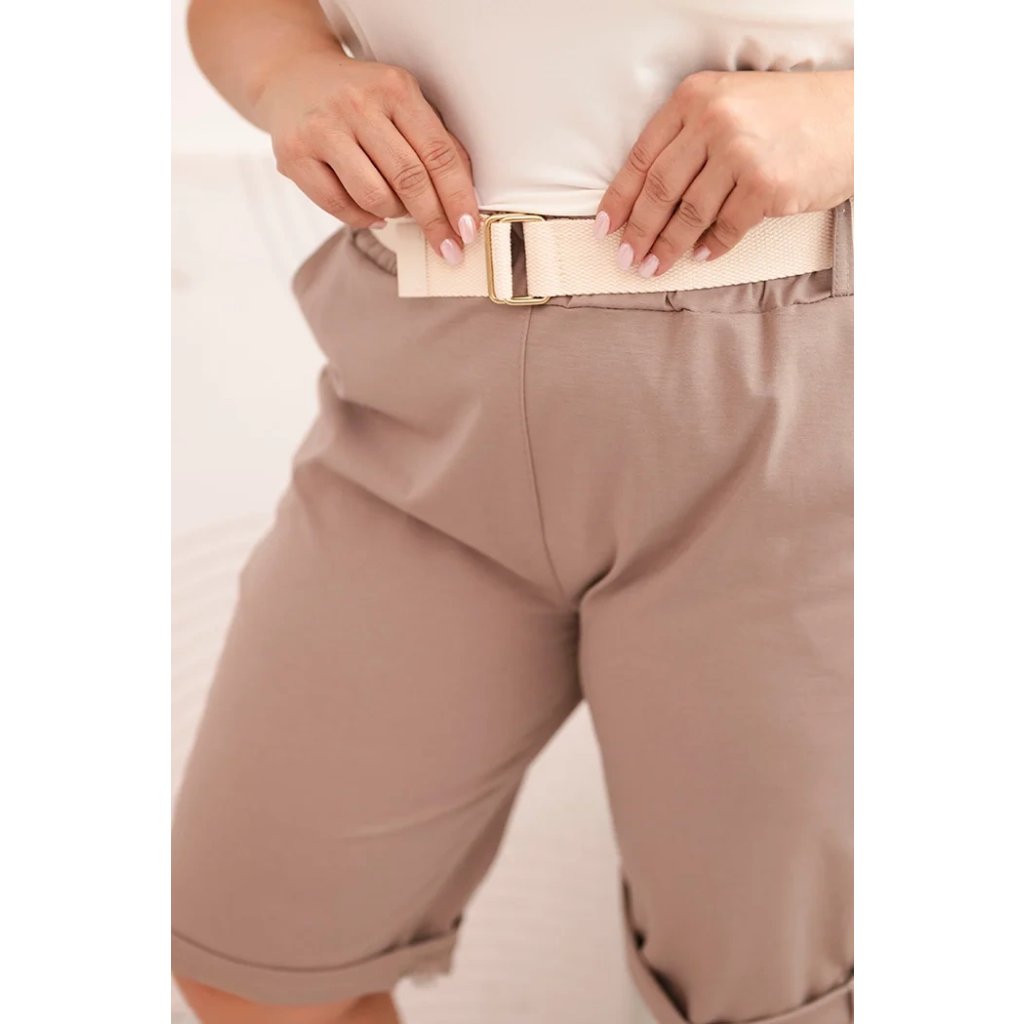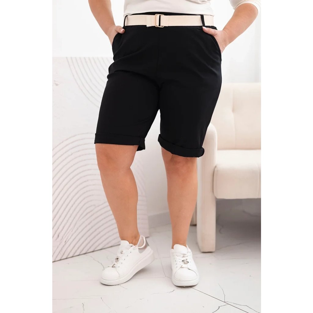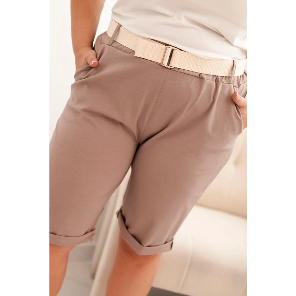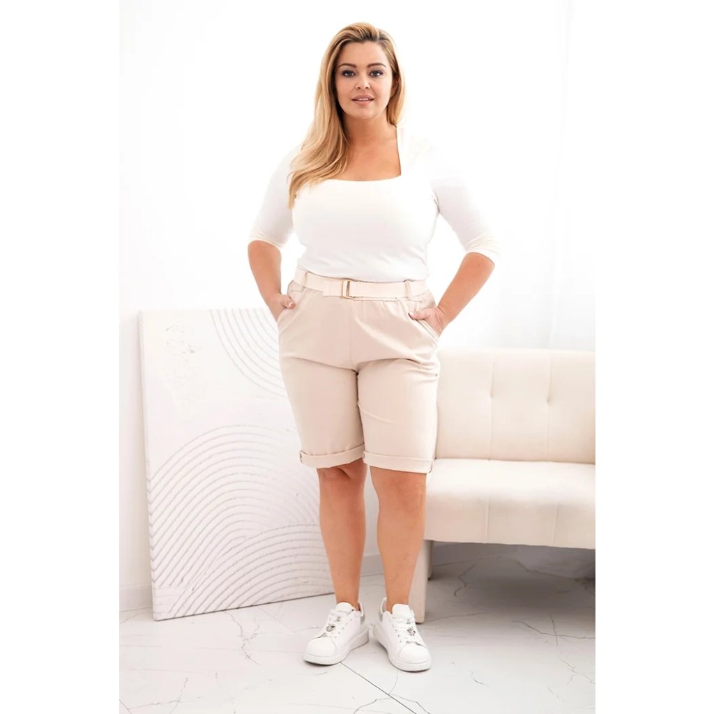 Tyto elegantní dámské šortky s vysokým pasem jsou skvělou volbou pro jarní a letní outfity. Vyrobené z příjemného materiálu, poskytují celodenní pohodlí a pružný pas s páskem umožňuje přizpůsobení postavě. Stylové ohrnutí nohavic jim dodává ležérní vzhled, takže se hodí jak na každodenní nošení, tak i pro elegantnější příležitosti – např. do práce, na schůzku nebo procházku. Šortky jsou lehké a prodyšné, ideální pro teplejší dny. Jejich univerzální střih se skvěle hodí ke košili, halence nebo topu. Jsou must-have v šatníku každé ženy, která si cení pohodlí a stylu.