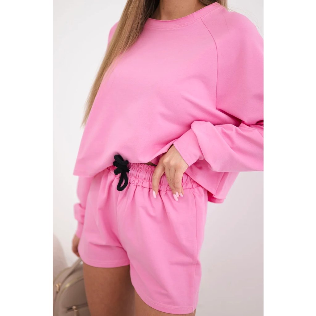 Souprava sestávající z bavlněné halenky a šortek je ideální volbou pro letní dny. Bavlna poskytuje pohodlí a prodyšnost, zatímco materiál se snadno čistí. Sada je vyrobena z vysoce kvalitních materiálů. Taková sada je ideální na prázdninový výlet, letní procházku nebo setkání s přáteli. Velikost je univerzální a vyhovuje dámám velikosti S, M nebo L.