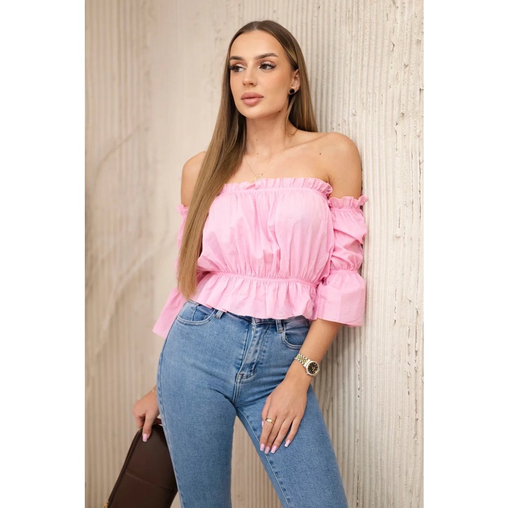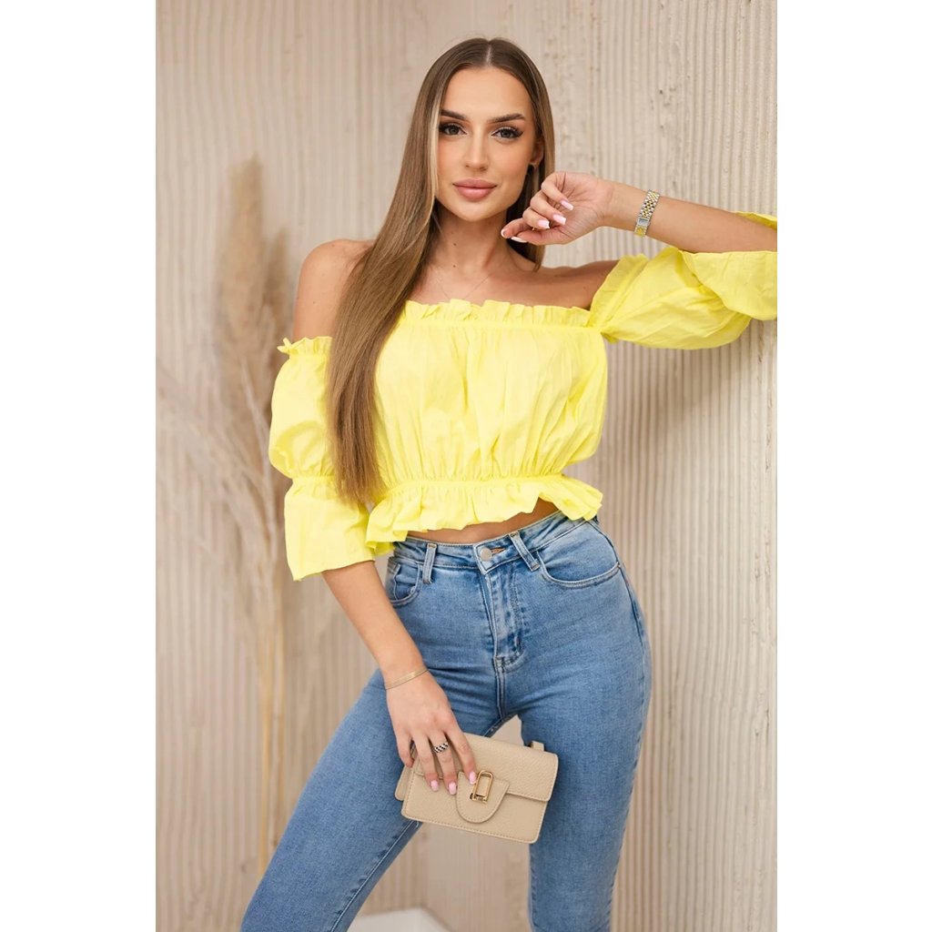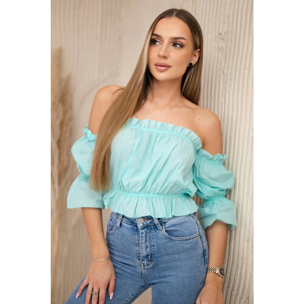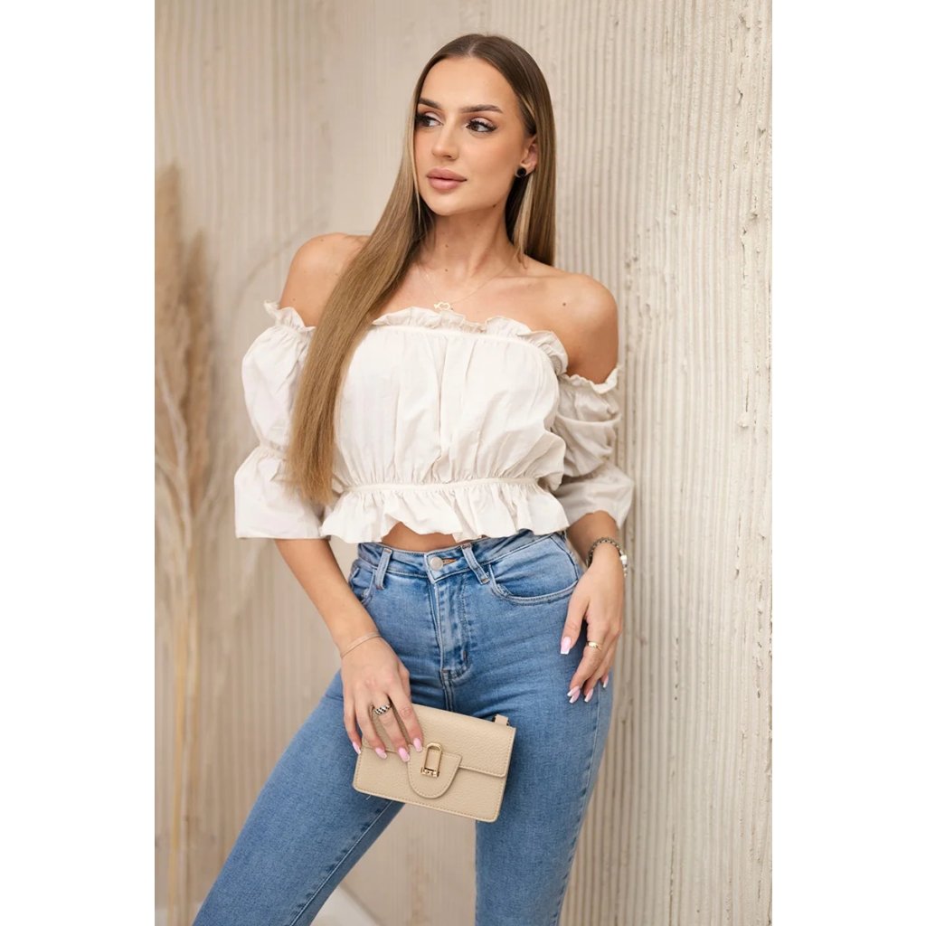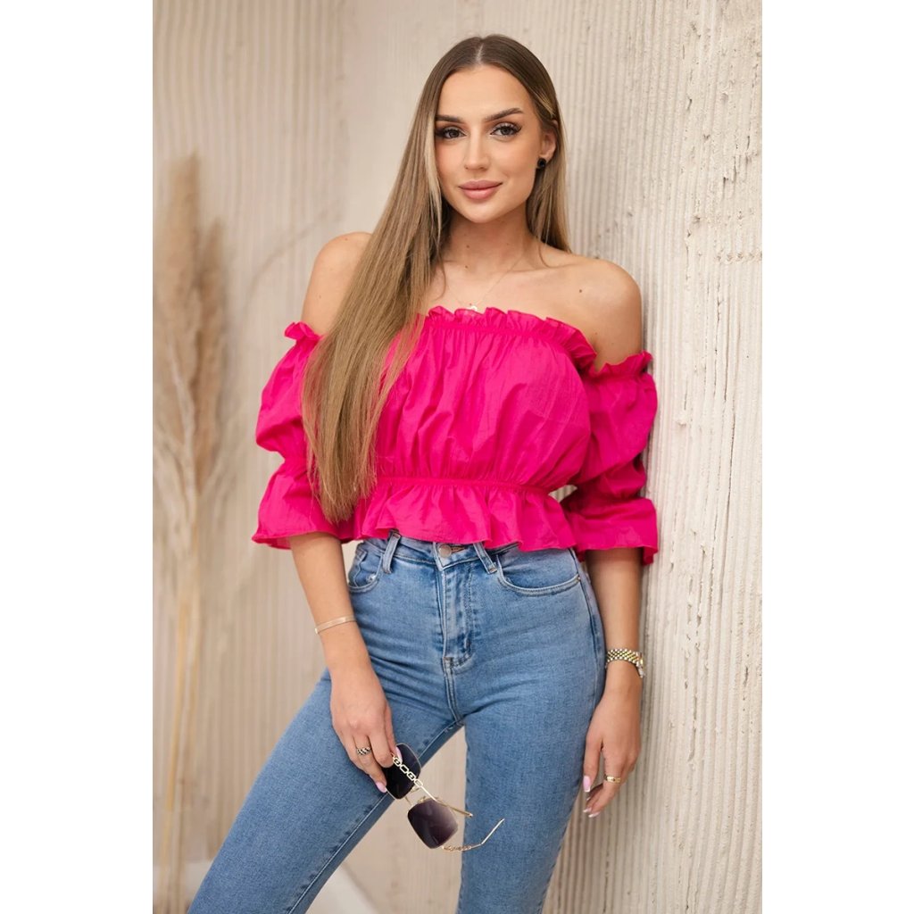 Představujeme vám módní halenku. Halenka s odhalenými rameny, španělský styl. Módní ozdůbky. Pružná guma všitá do pasu a výstřihu. Halenka je vyrobena z vysoce kvalitního materiálu.