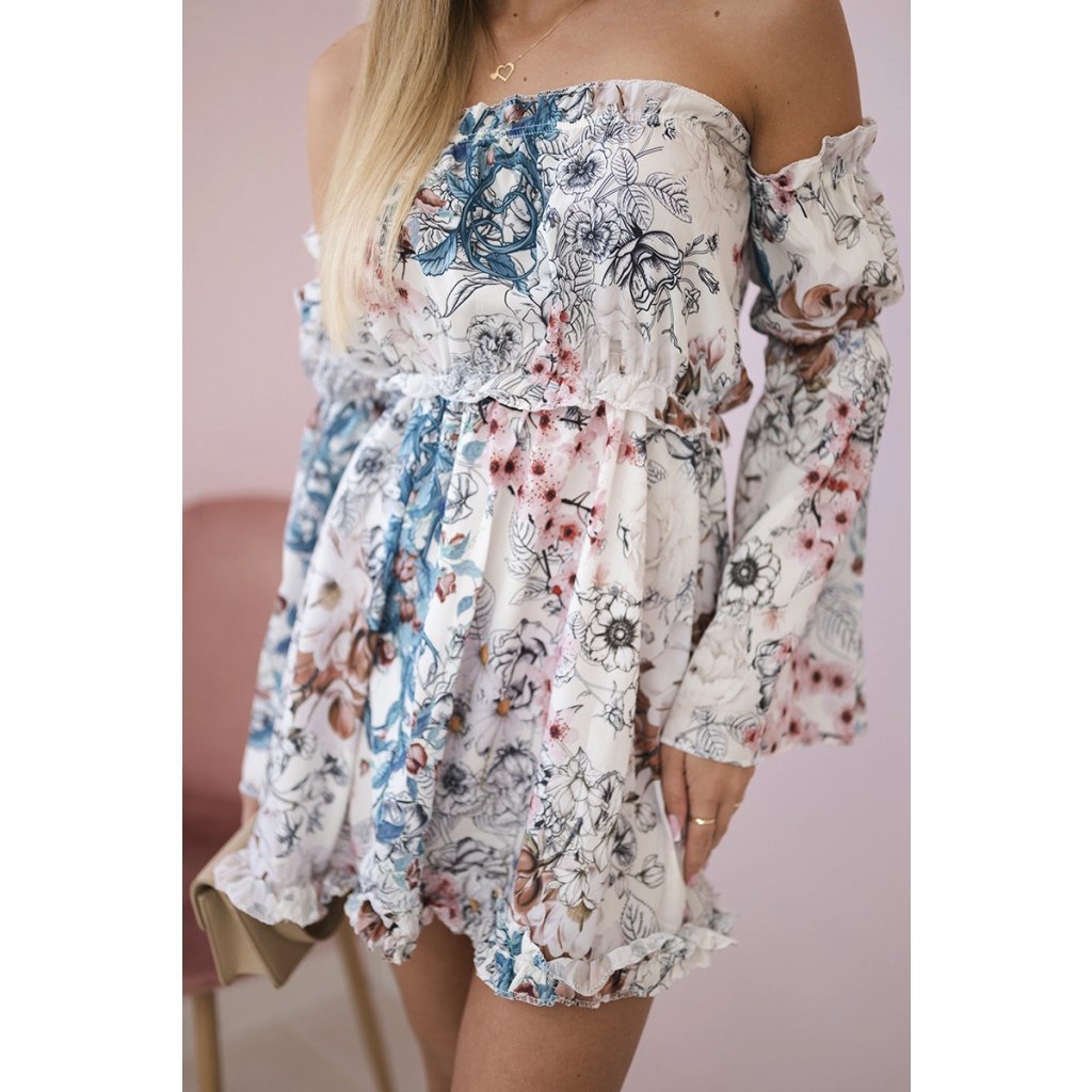 Představujeme vám módní šaty. Španělské šaty s odhalenými rameny. Módní ozdůbky. Pružná guma všitá do výstřihu a pasu. Šaty jsou vyrobeny z vysoce kvalitního materiálu. Velikost je univerzální a vyhovuje dámám, které nosí velikost S, M nebo L.