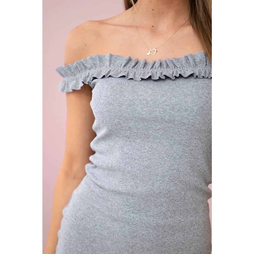 Představujeme vám módní šaty. Španělské šaty s odhalenými rameny. Módní ozdůbky. Pružná guma všitá do výstřihu. Šaty jsou vyrobeny z vysoce kvalitní žebrované tkaniny. Velikost je univerzální a vyhovuje dámám, které nosí velikost S, M nebo L.