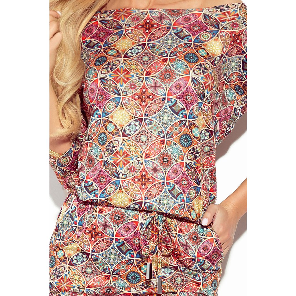 Sportovní šaty s 3/4 rukávy a kapsami - barevné kruhy. Vyrobeno z pružného materiálu s mírně semišovou strukturou. Polský výrobek. Značka Numoco.