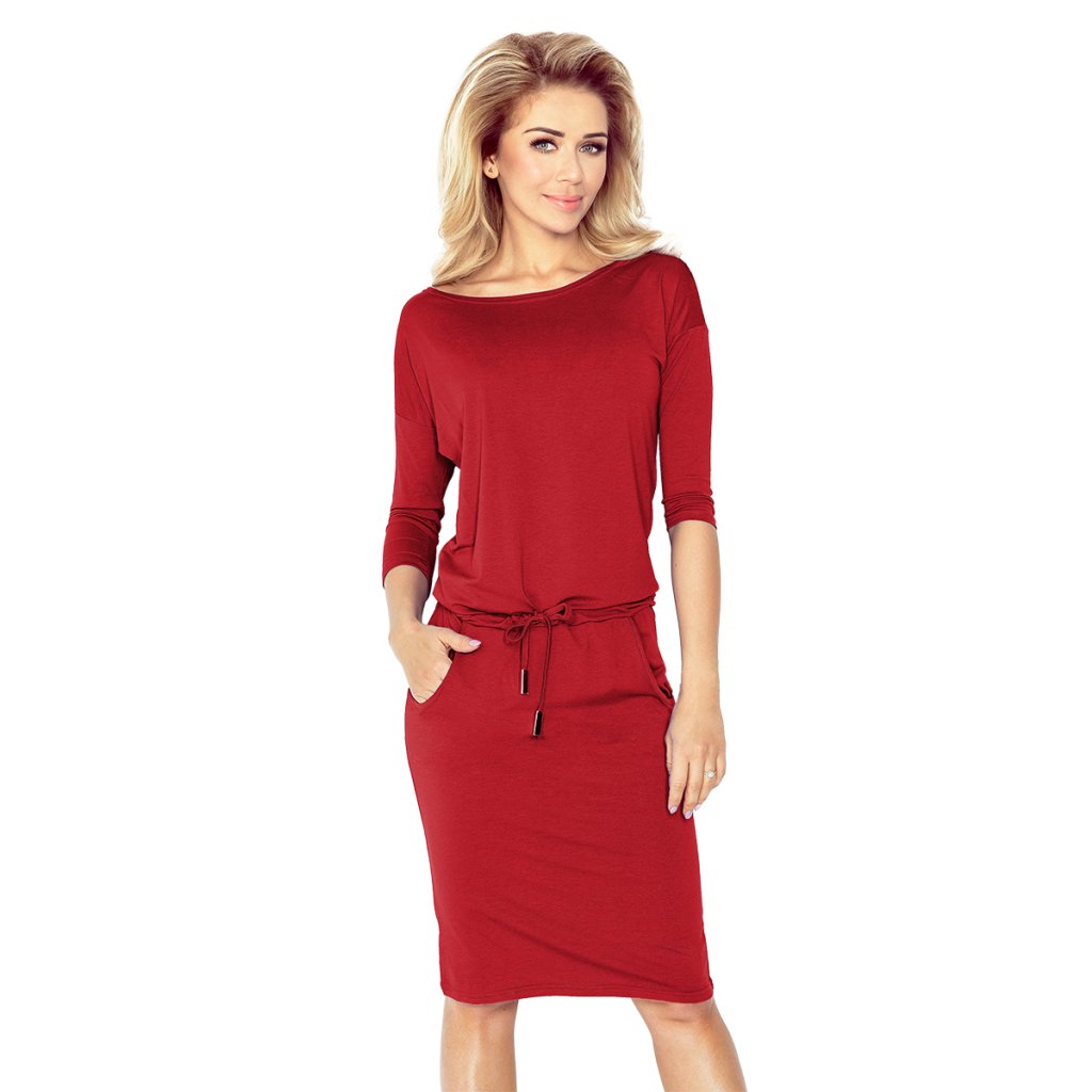 Sportovní šaty s rukávem 3/4 - tmavě červená barva