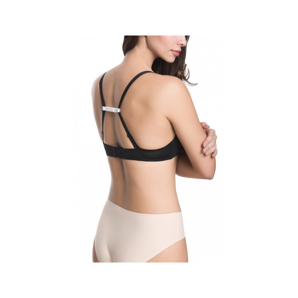 Stahovač ramínek s regulací délky. Je velice nápomocný, když chceme skrýt ramínka pod oblečením. Padající ramínka udrží na svém místě a u oblečení s vykrojenými rukávy přitáhne ramínka k sobě.