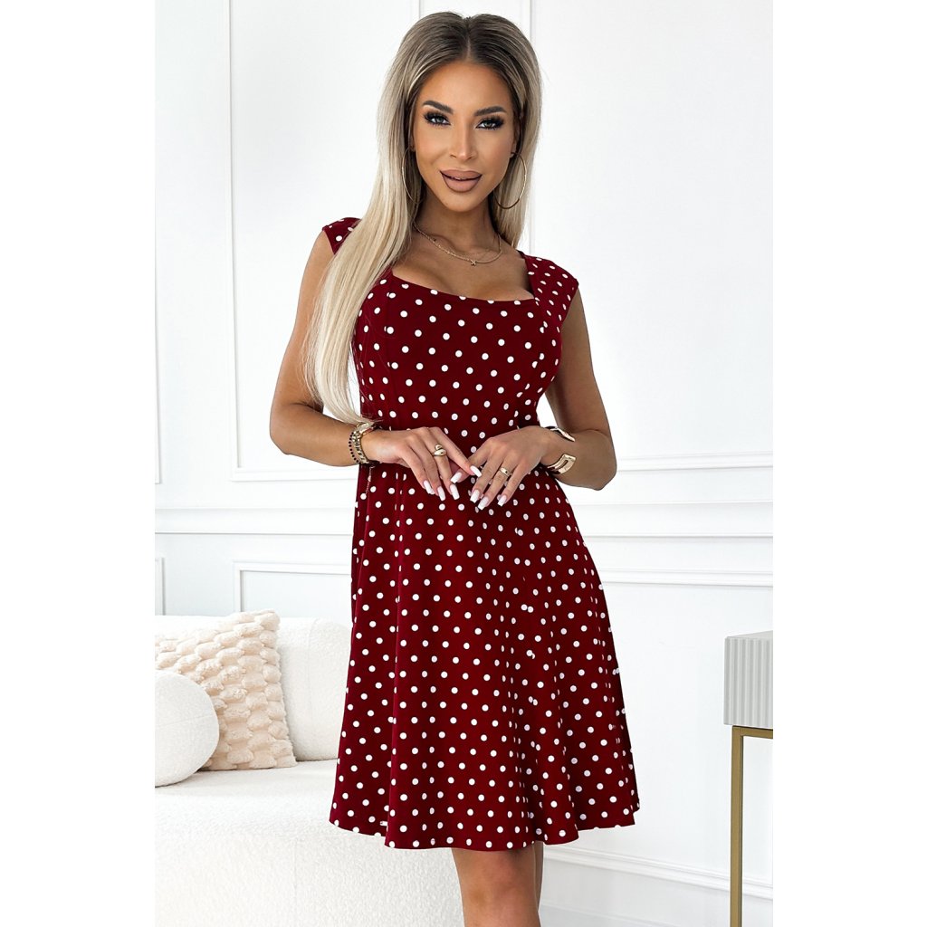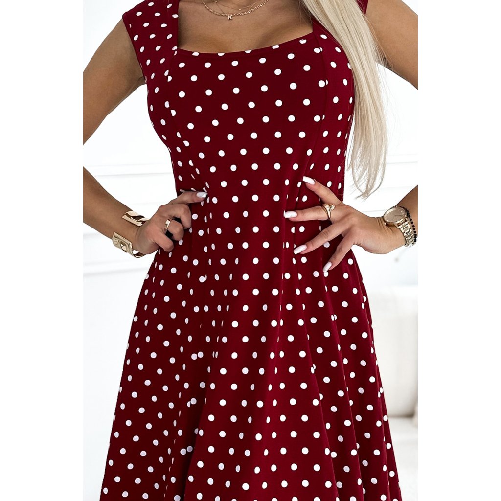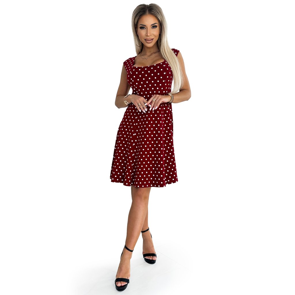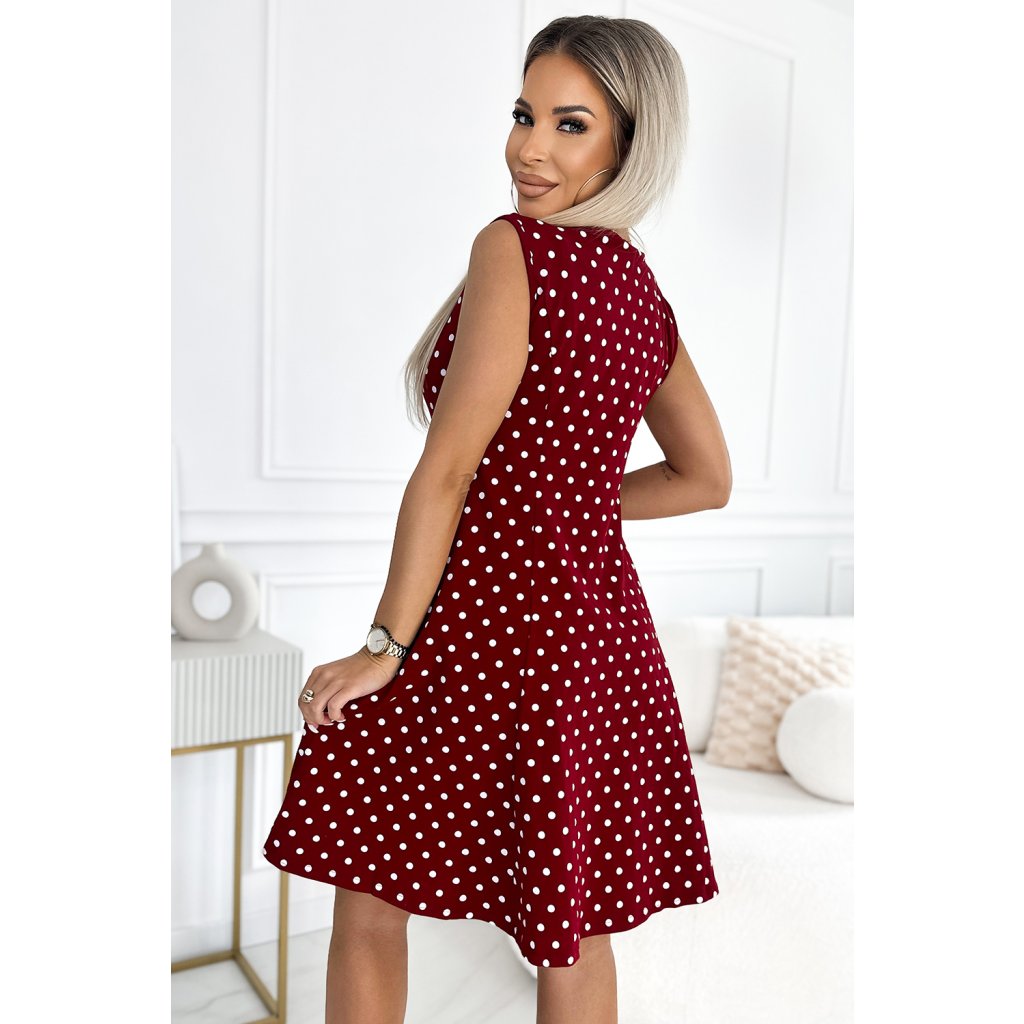 STELLA bavlněné šaty s diamantovým výstřihem - vínové s puntíky 241-3