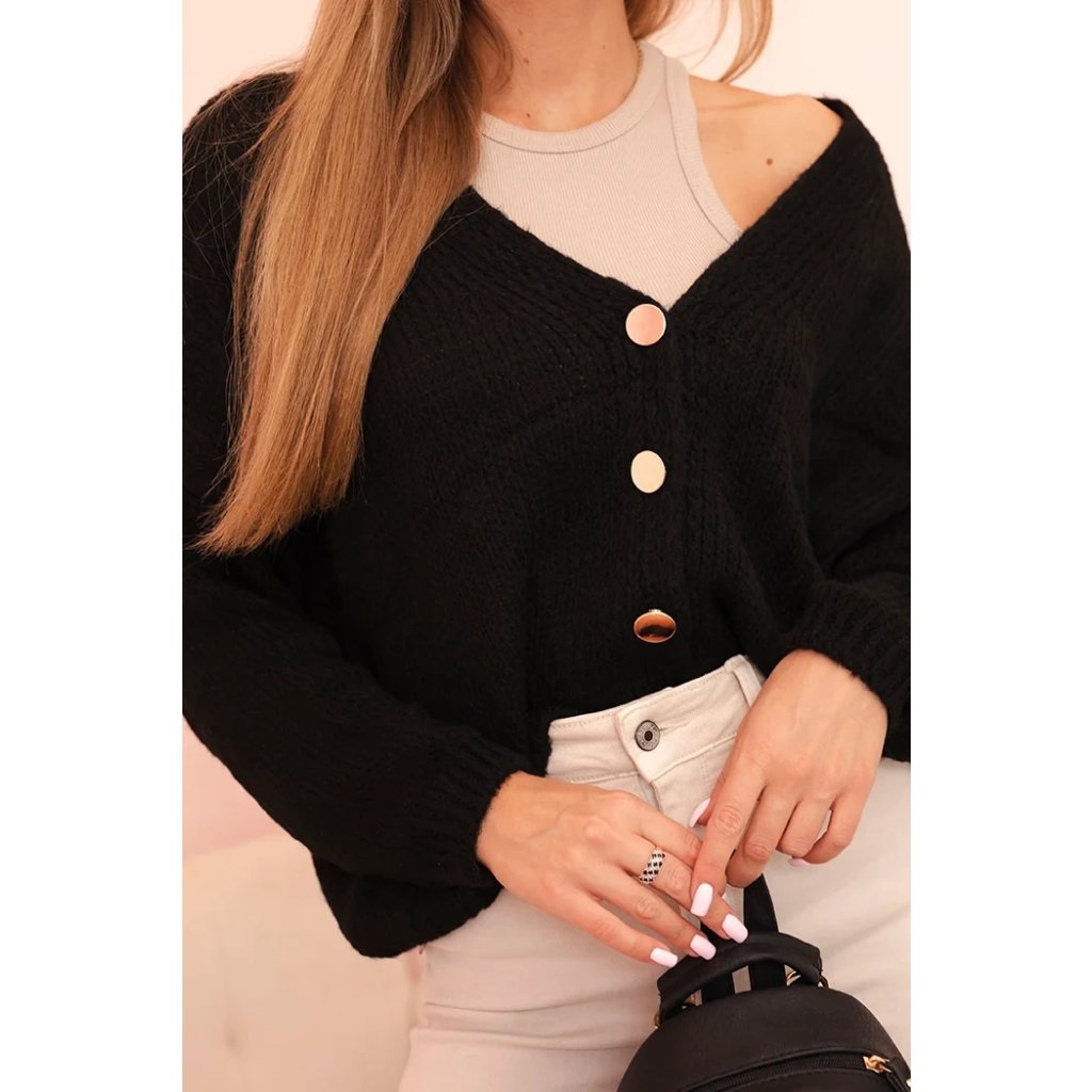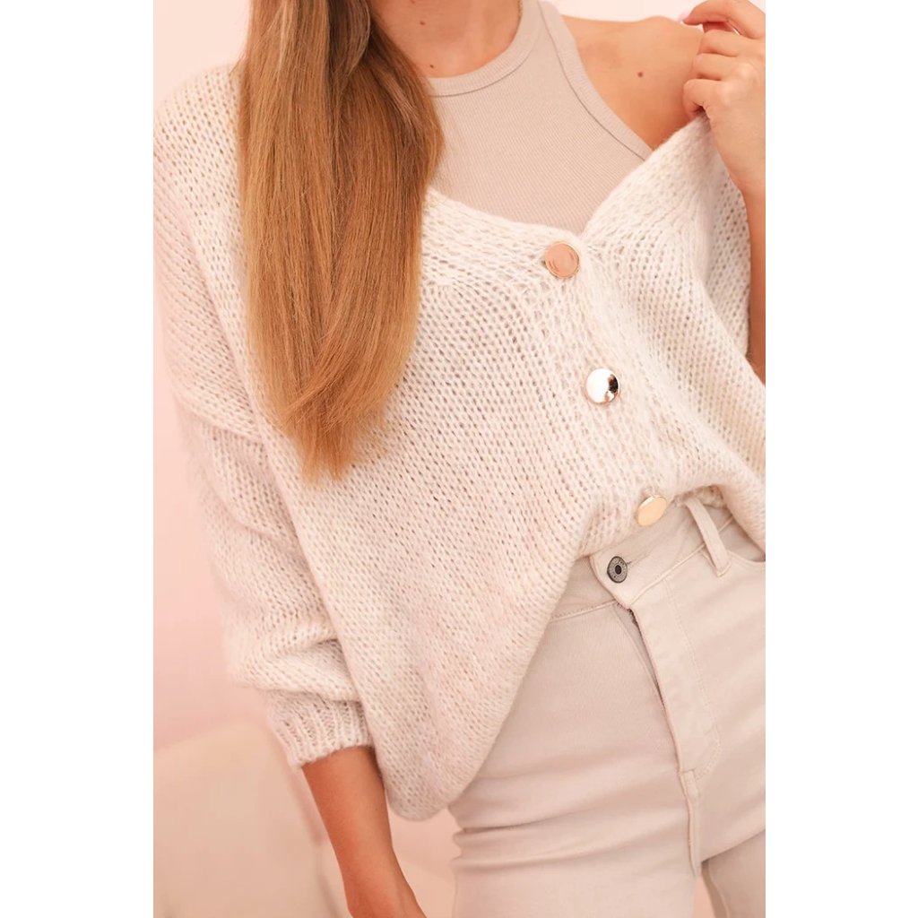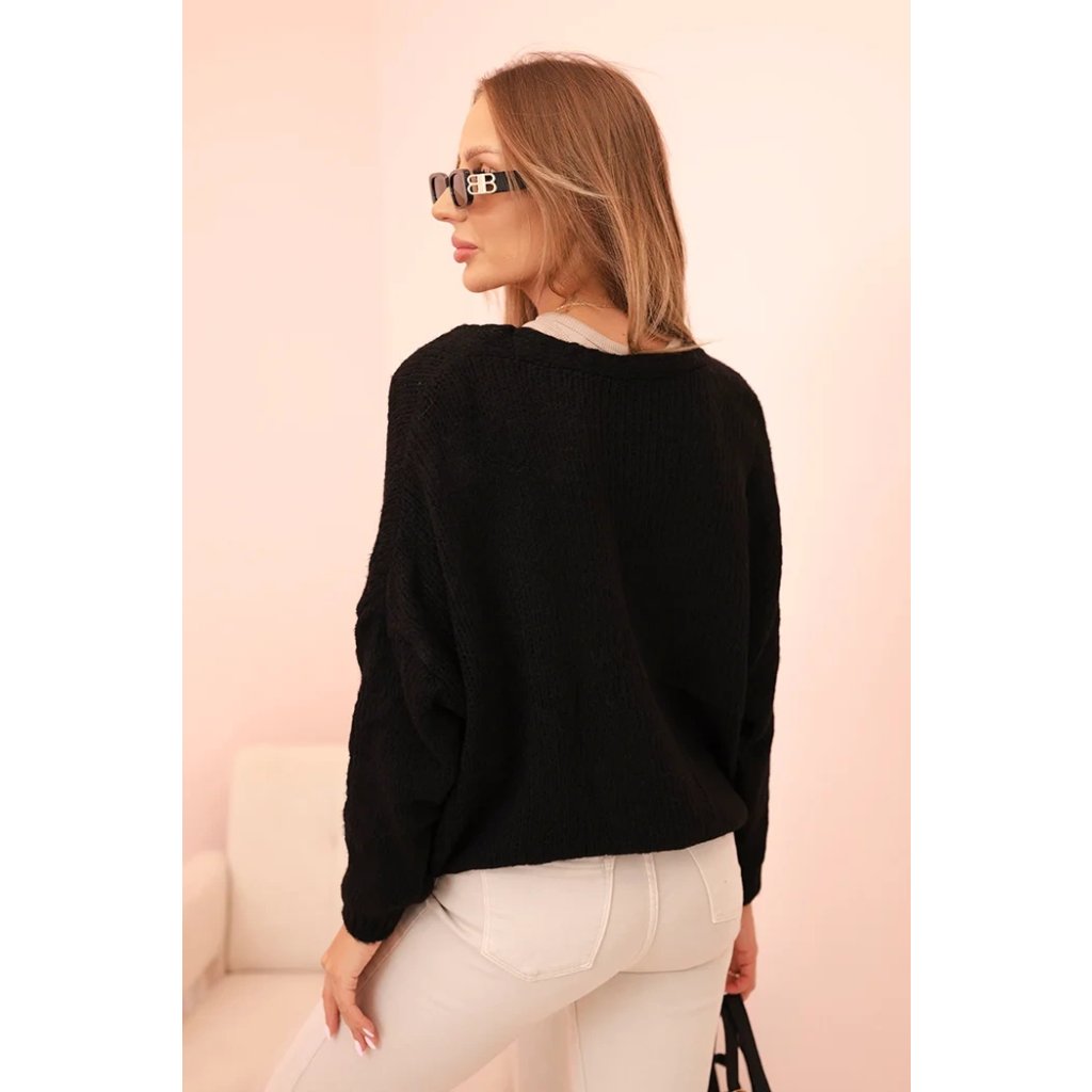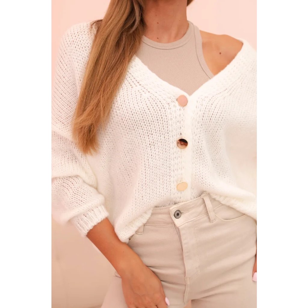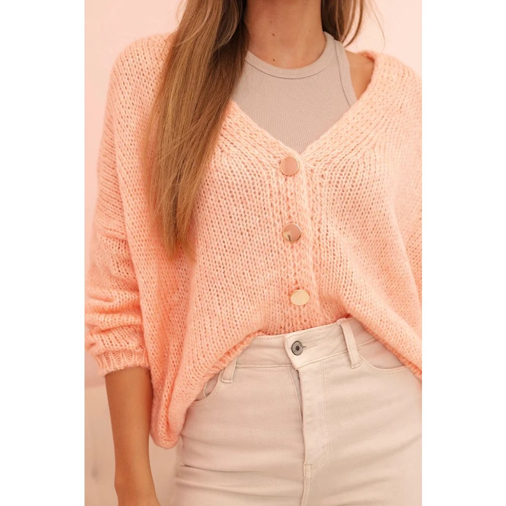 Tento dámský svetr s výstřihem do V je skvělou volbou pro ženy, které oceňují pohodlí, styl a univerzálnost. Vyrobený z měkkého a příjemného materiálu, je ideální pro chladnější dny – jak pro každodenní nošení, tak pro elegantnější outfity. Oversize střih se spadlými rameny a klasickým zapínáním na knoflíky zdůrazňuje volný, módní charakter kardiganu. Tento model snadno sladíte s džínami, legínami nebo sukní – na procházku, do práce nebo večerní setkání. Jemná struktura pleteniny dodává lehkost a zároveň zajišťuje, že je teplý a příjemný na nošení. Velikost je univerzální a bude vhodná pro ženy nosící velikost S, M nebo L.