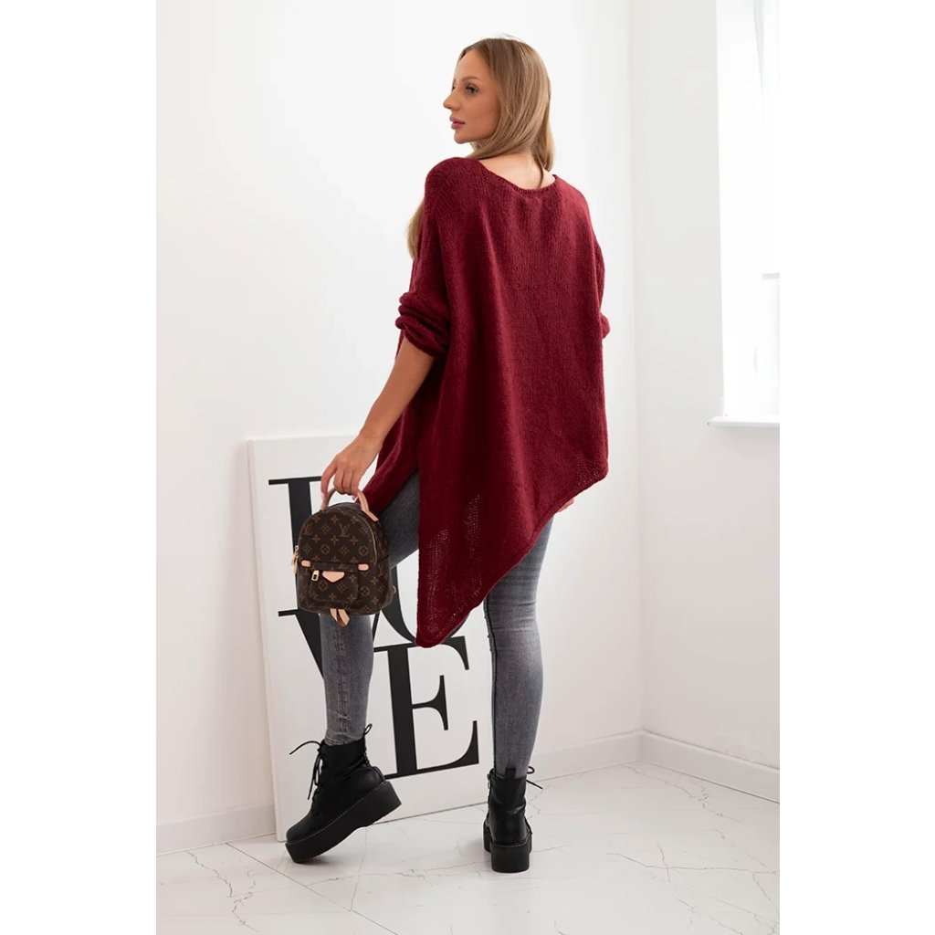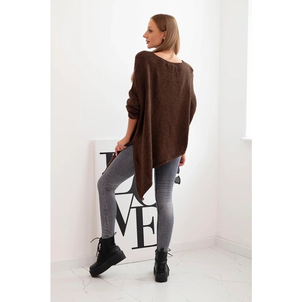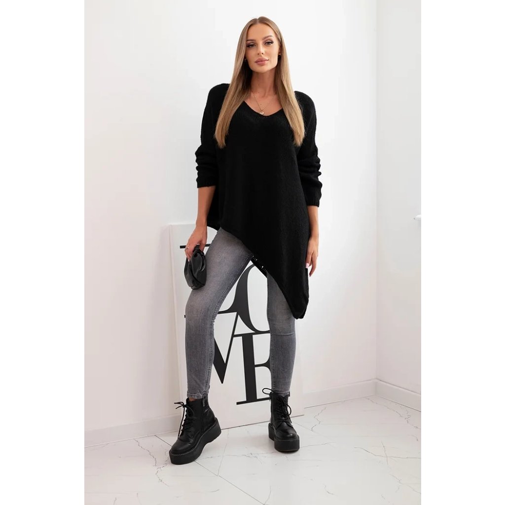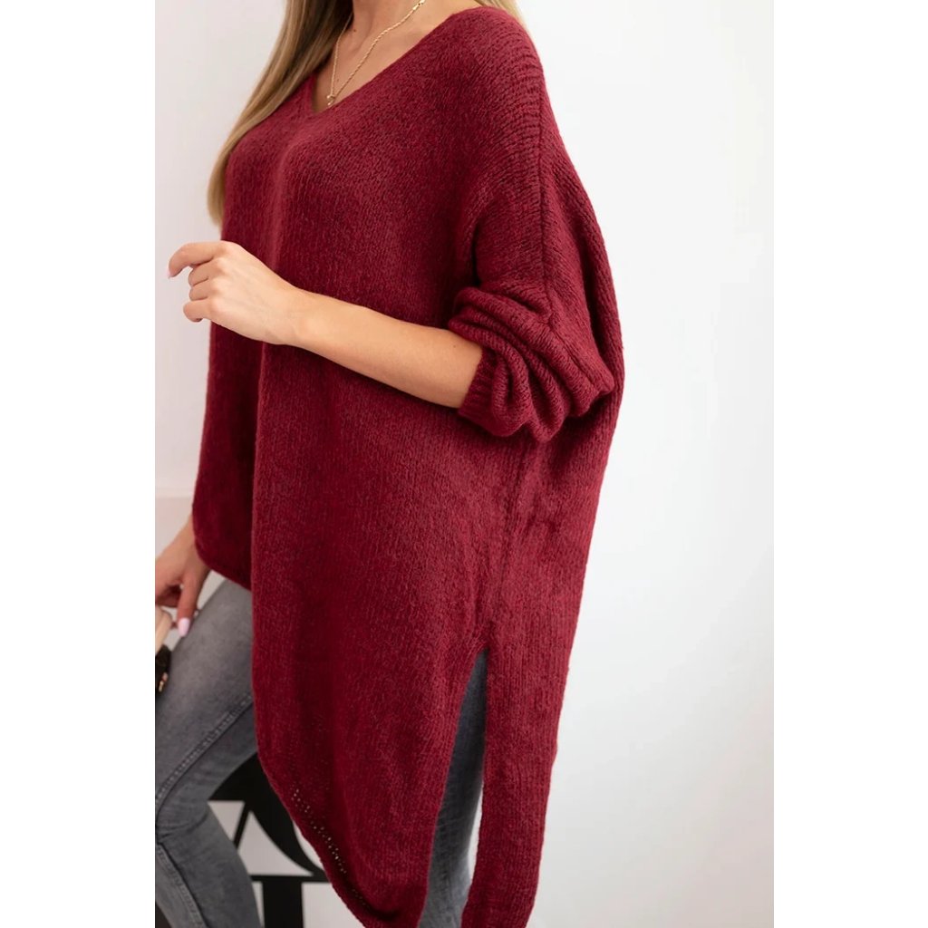 Tento dámský svetr s volným, asymetrickým střihem je nabídkou pro ženy, které si cení módního vzhledu a pohodlí. Vyrobený z měkké pleteniny s přídavkem vlny, skvěle se hodí na chladnější dny, poskytující teplo a komfort. Výstřih ve tvaru písmene V jemně zeštíhluje krk, a asymetrický spodní lem dodává celku moderní charakter.
