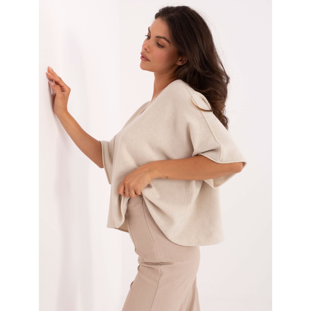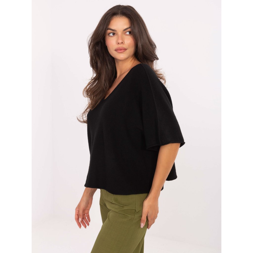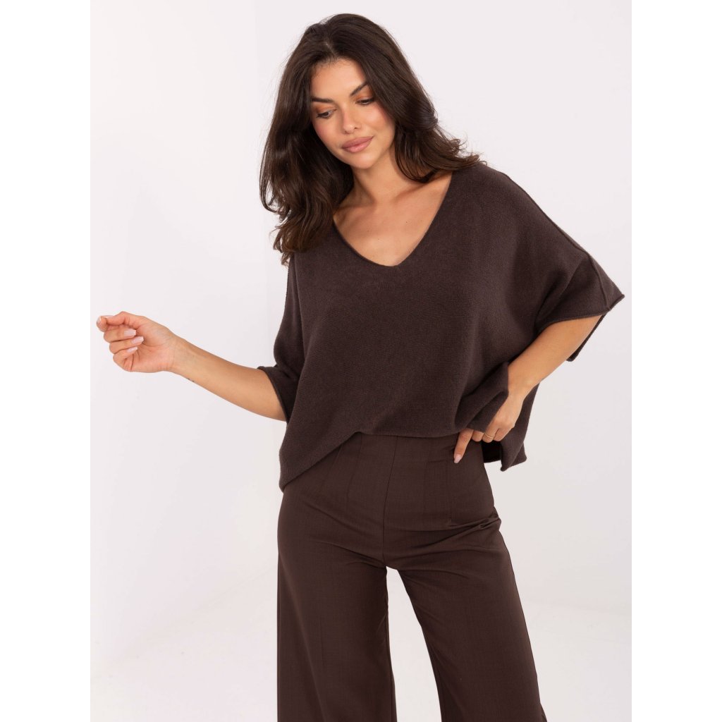 Míry svetru ve velikosti jedna, v plochém stavu, jsou: šířka v podpaží - 70 cm, délka rukávu - 37 cm, celková délka - 59 cm, šířka boků - 72 cm.