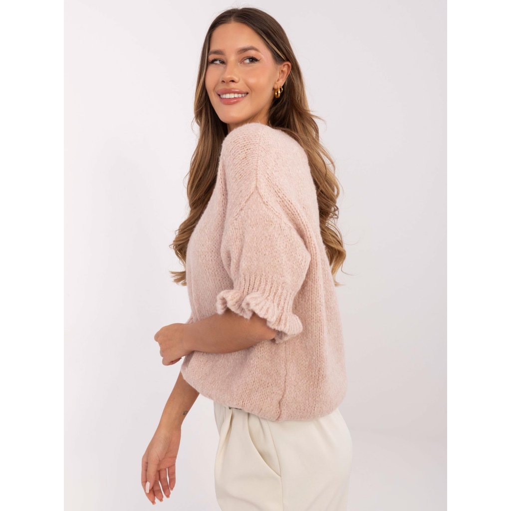 Rozměry svetru ve velikosti one size měřeno v plochém stavu: šířka v podpaží - 61 cm, délka rukávu - 20 cm (od švu), celková délka - 61 cm, šířka v bocích - 47 cm (v plochém stavu), šířka v bocích - 95 cm (po natažení).