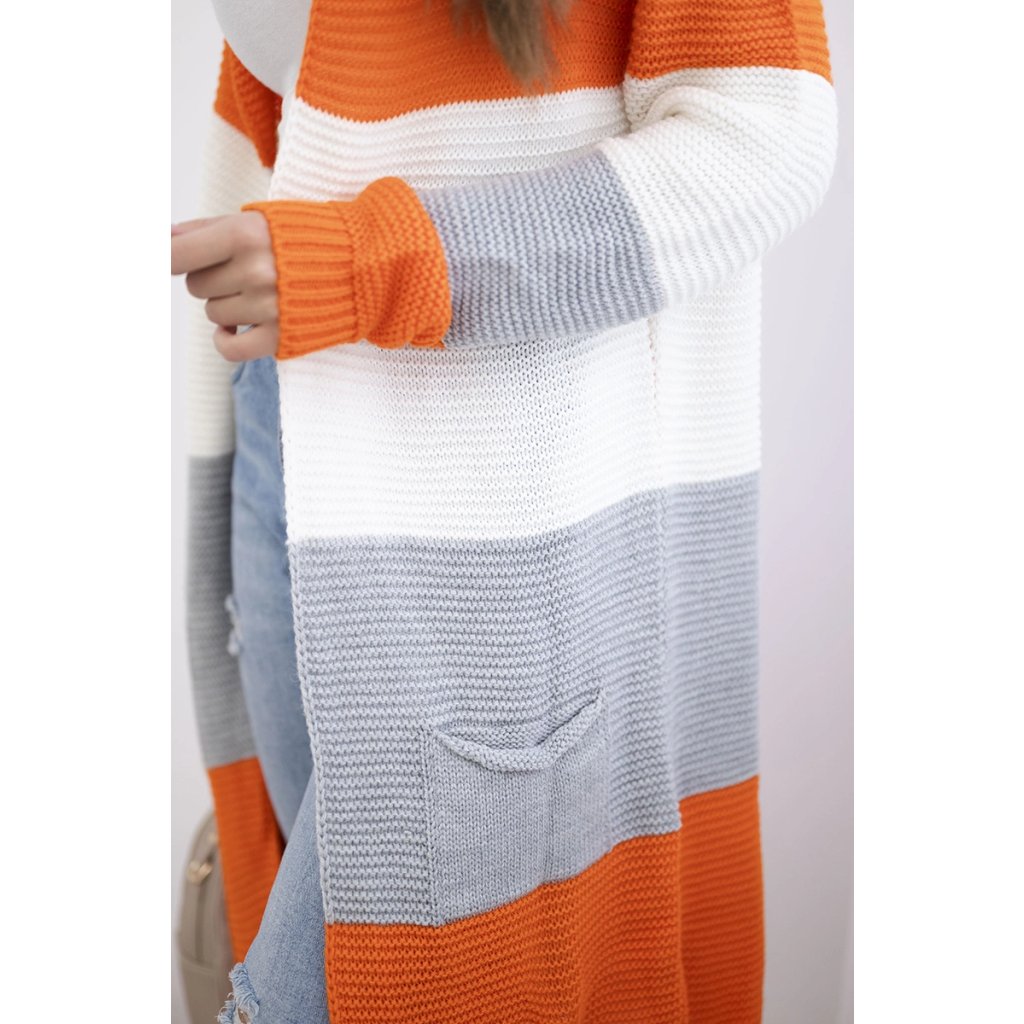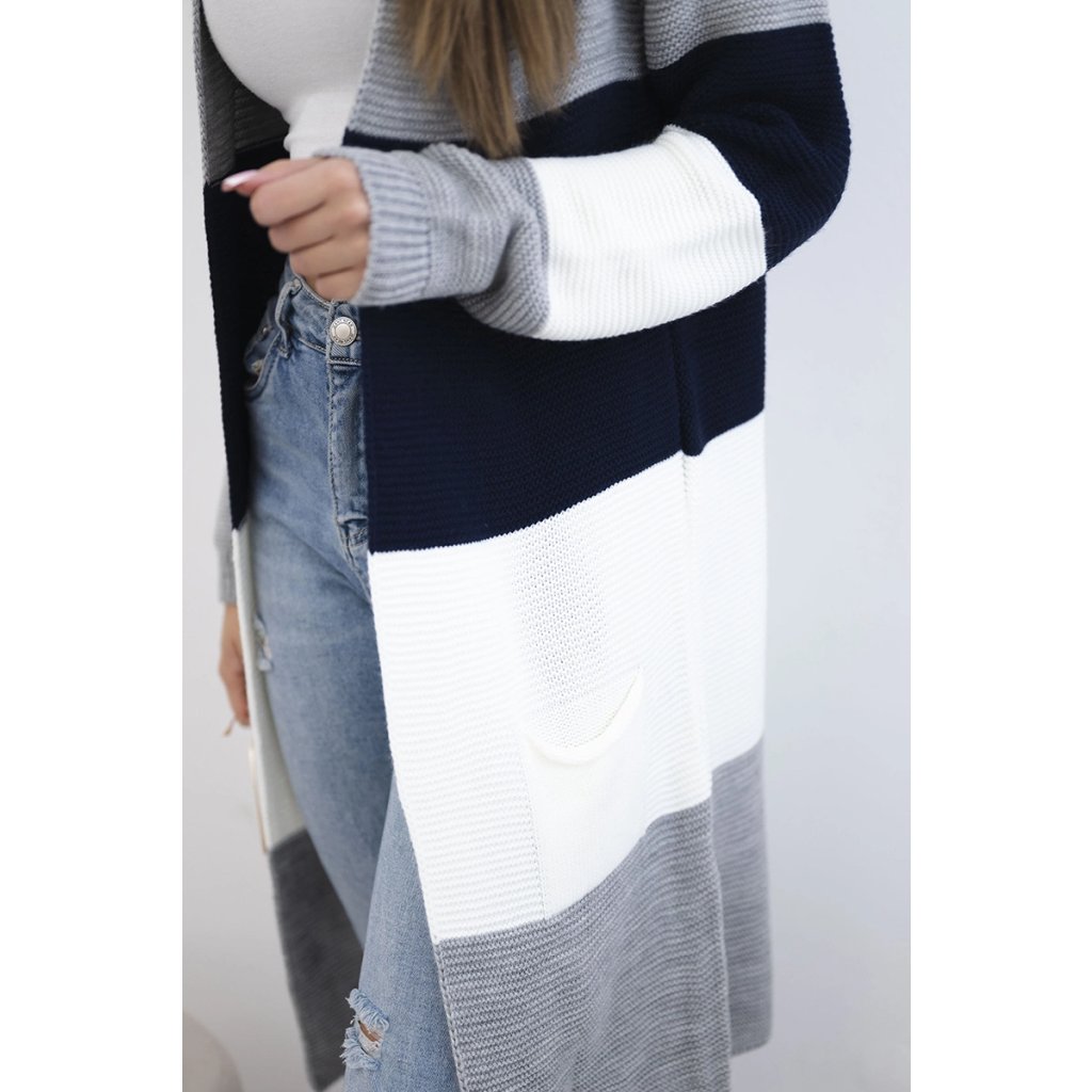 Představujeme vám dlouhý svetr se širokými pruhy.