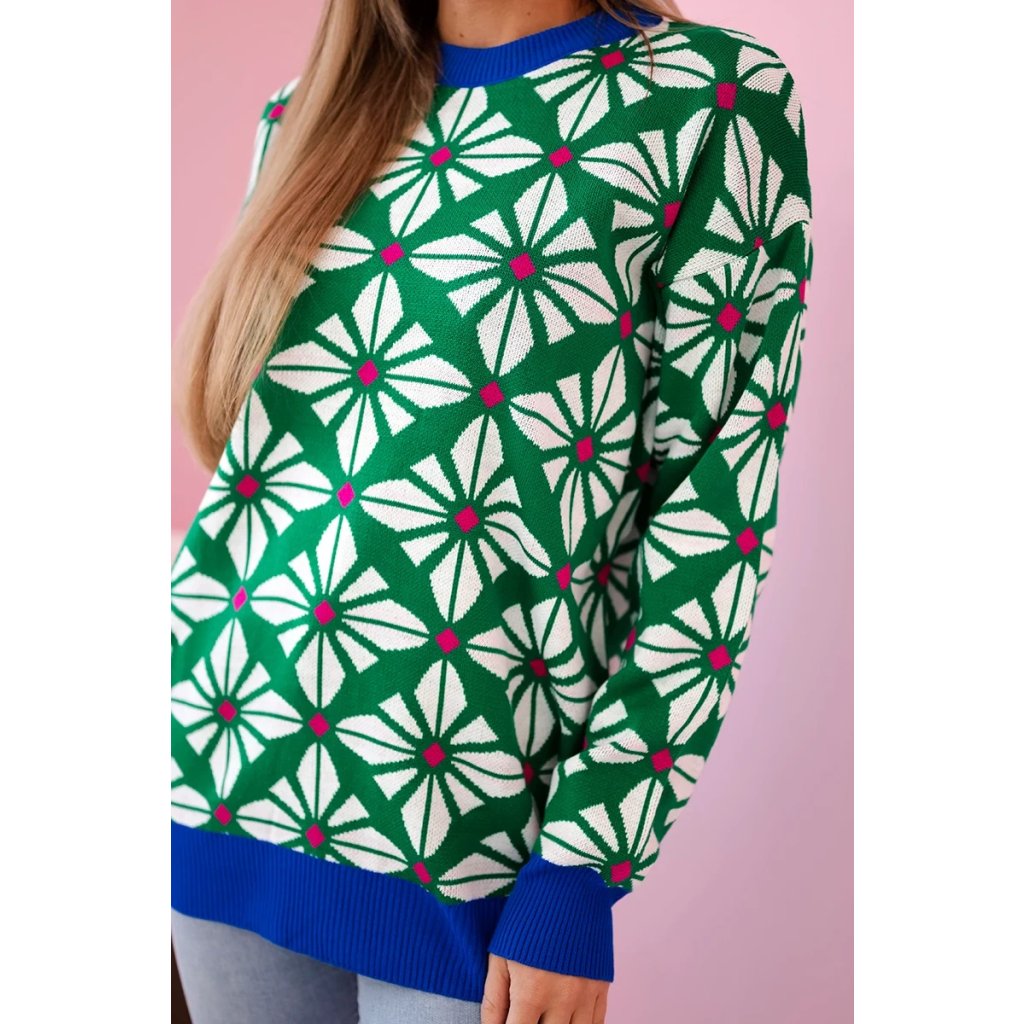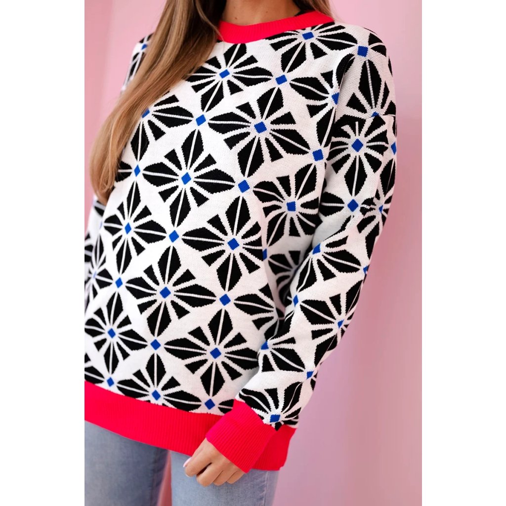 Představujeme vám módní svetr. Svetr s geometrickým vzorem. Velmi stylové, pro každou dámu. Svetr je vyroben z vysoce kvalitního materiálu. Velikost je univerzální a vyhovuje dámám ve velikostech M, L, XL.