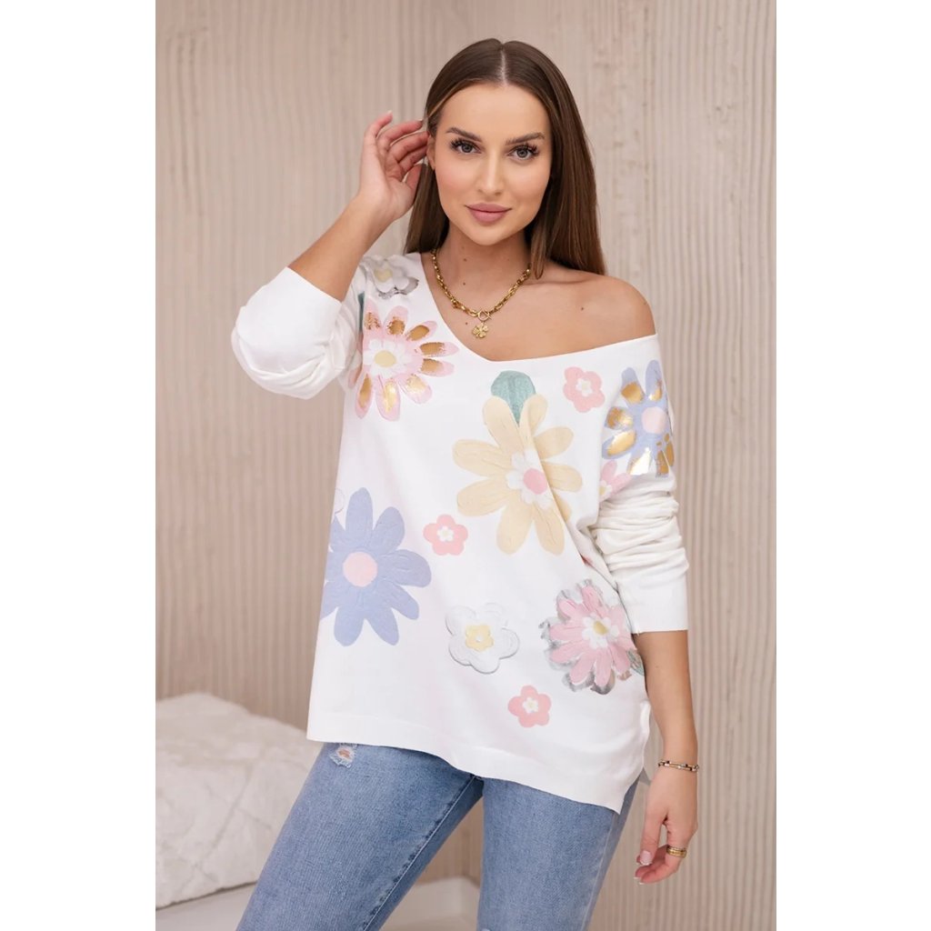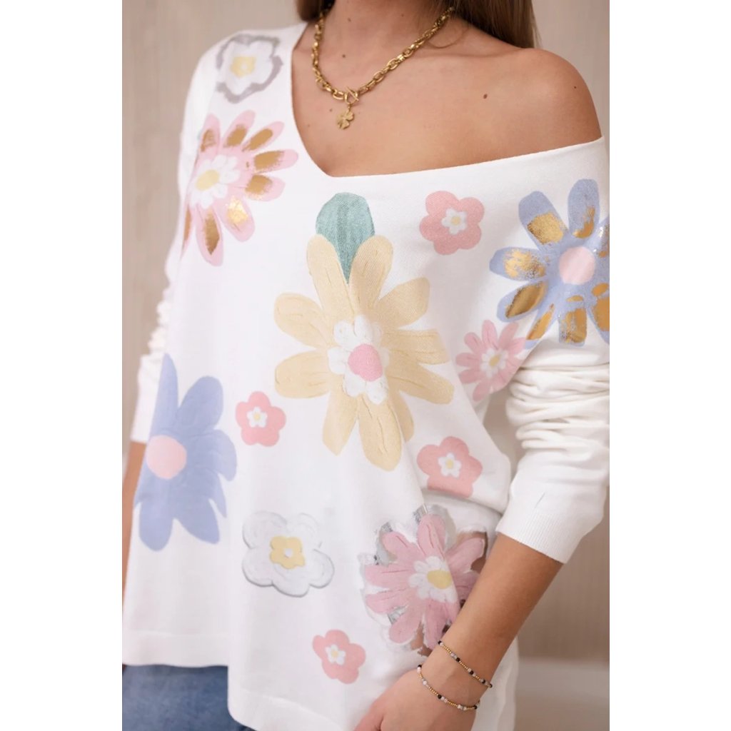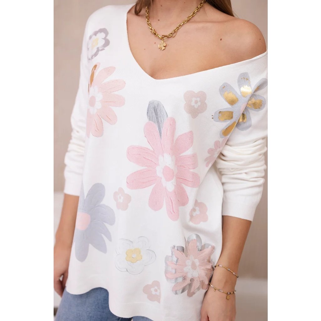 Svetrová halenka Flowers s barevnými květy - výprodej