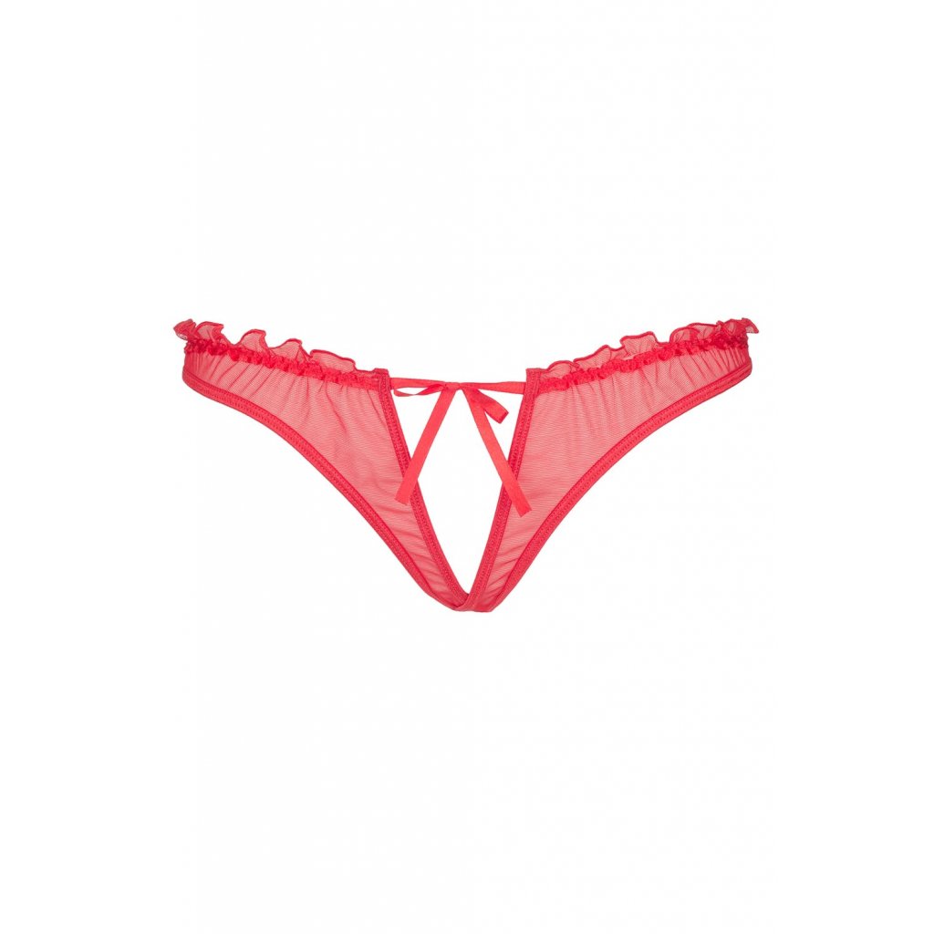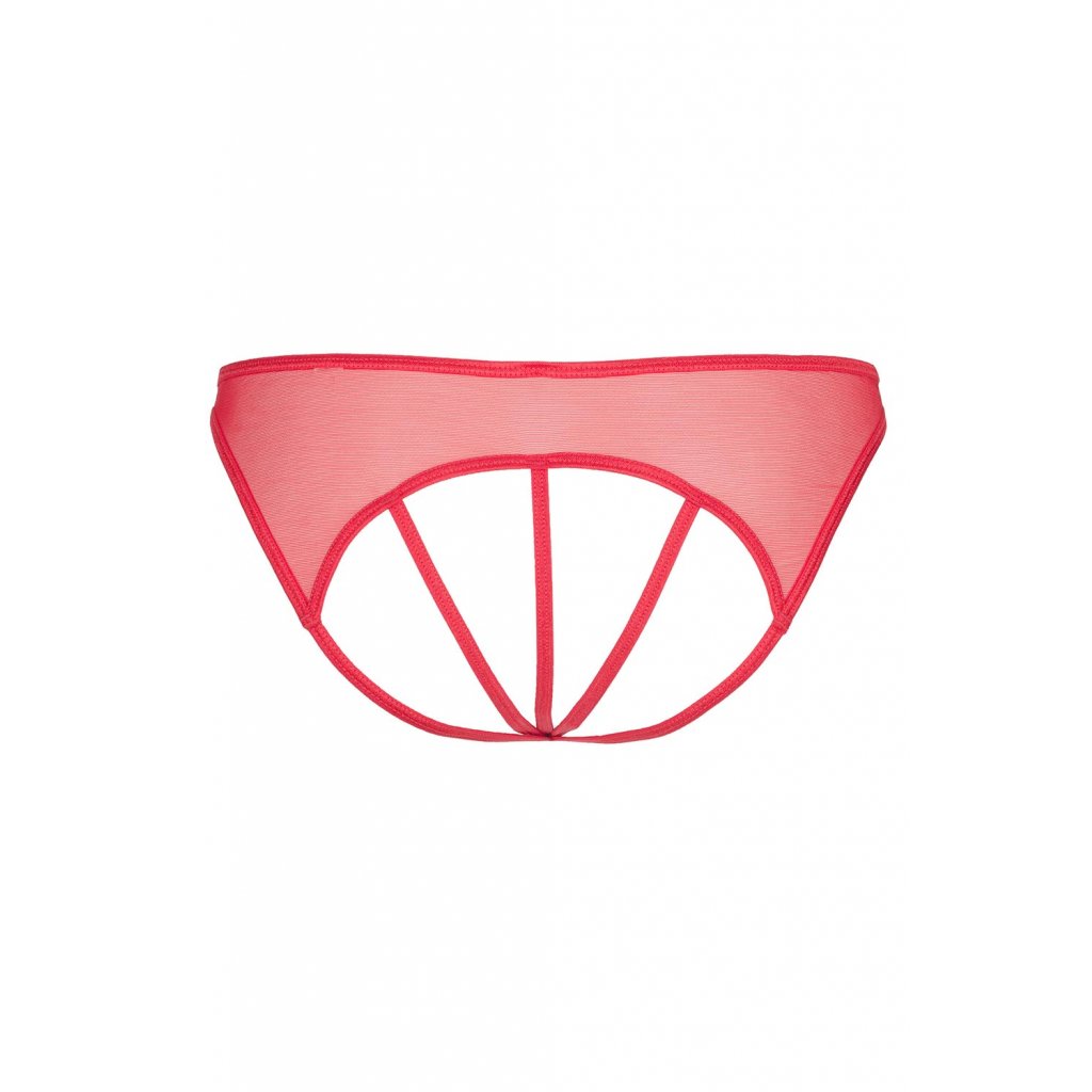 Magenta tanga jsou skrovná, ohnivě červená tanga s pikantním výřezem vpředu a zajímavými ramínky vzadu. Tanga jsou vyrobena z jemné tylové síťoviny. Koketní mašle a volánky dodávají šarm.
