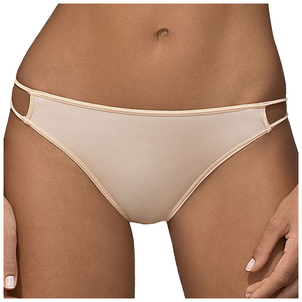Smyslná dámská tanga z kolekce značky MAT. Tanga jsou vyrobená z hladkého mikrovlákna. Dvojité pásky se křižují na bocích. Zadní díl je velmi zajímavý a efektní. Pro vytvoření kompletu doporučujeme podprsenku Paula.Složení: 63 % polyamid, 22 % bavlna, 15 % elastan.