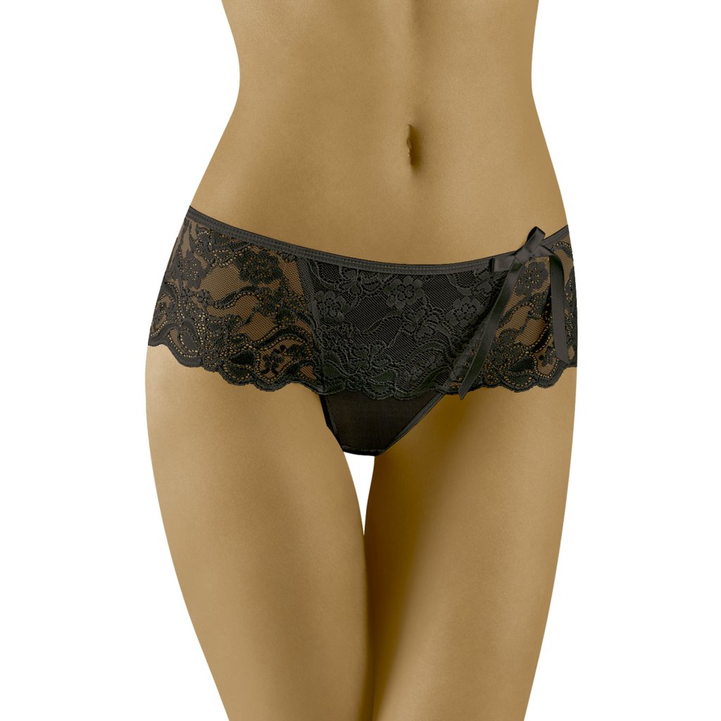 Dámská tanga šortkového střihu značky Wolbar. Luxusní tanga kombinovaná jemným tylem a květinovou krajkou po celém obvodu. Do spodního dílu je zapracován bavlněný klínek pro pohodlné nošení.Materiálové složení: 87% polyamid, 13% elastan.Doplňkové parametry