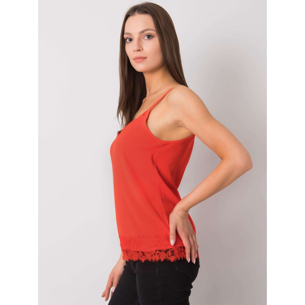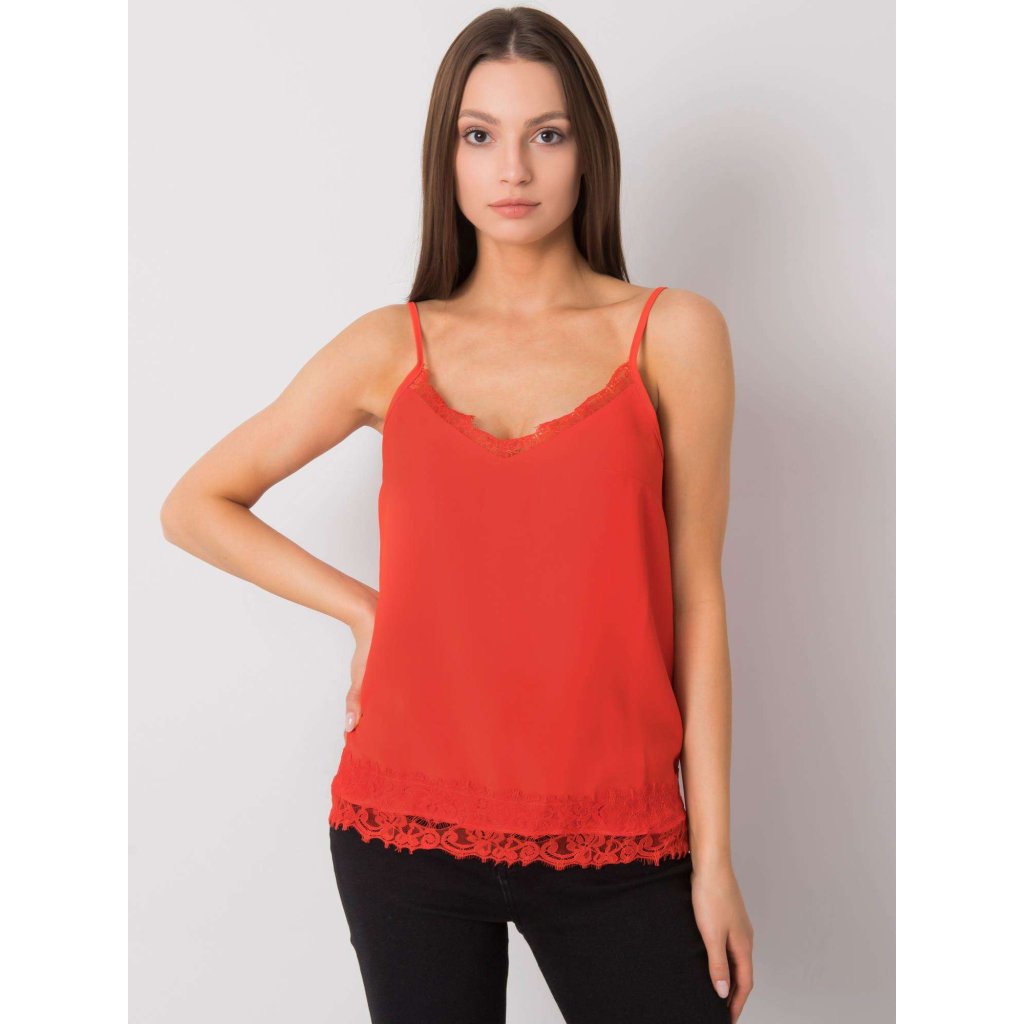 Červené tílko s krajkou.