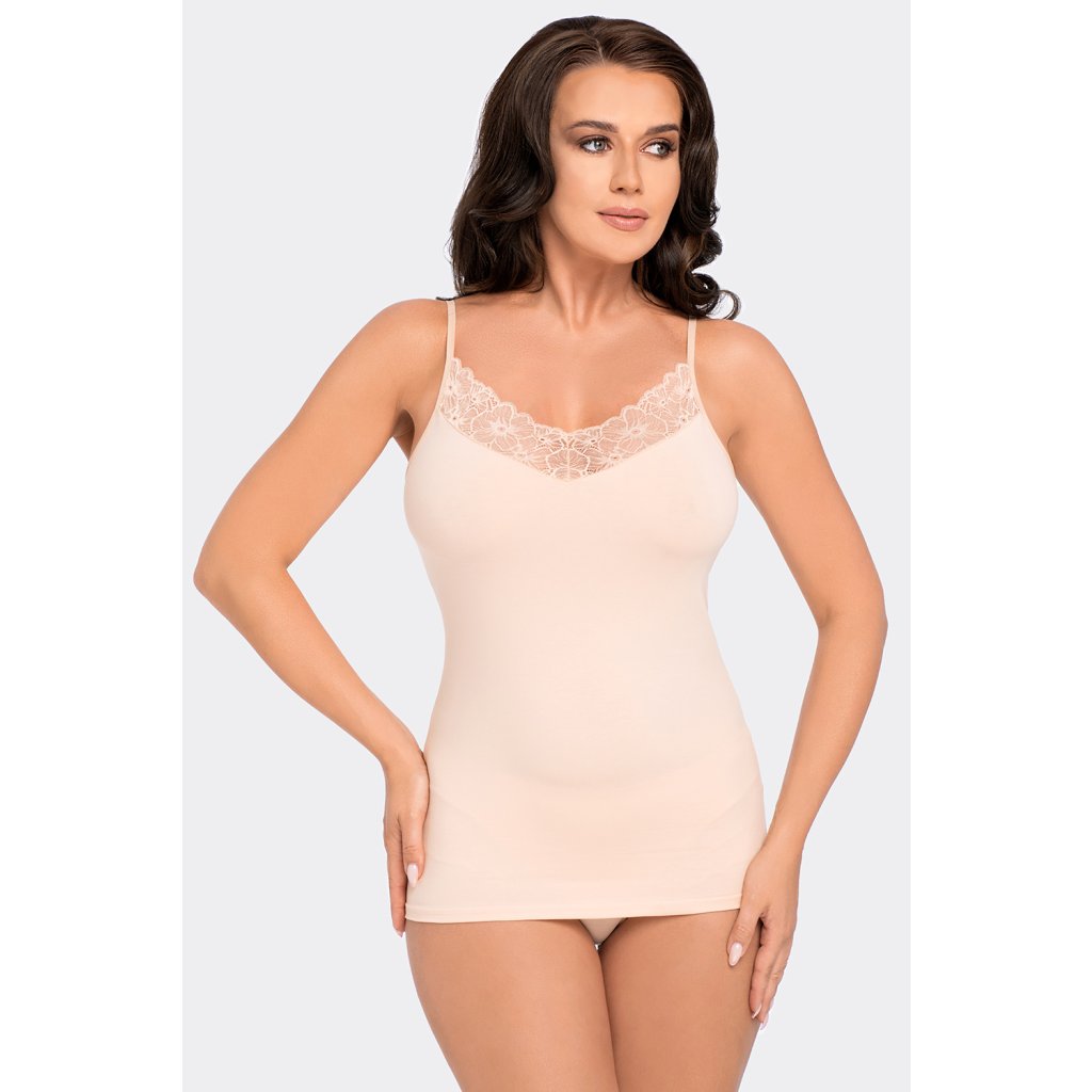 Klasické bavlněné tričko.- výstřih je zakončen jemnou krajkou, která dodává tomuto modelu eleganci a šarm