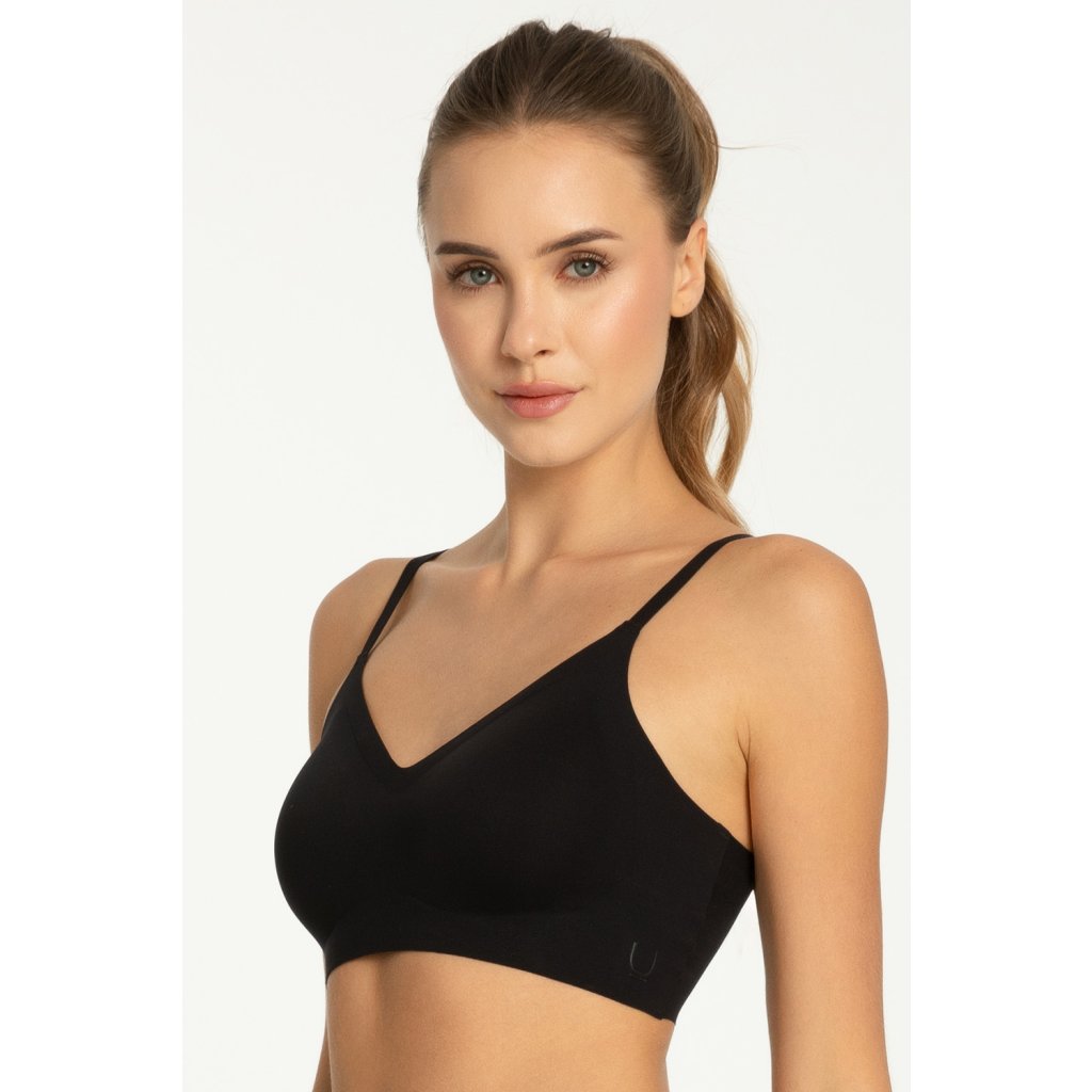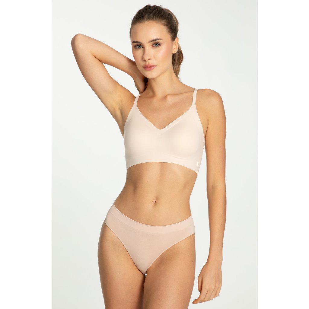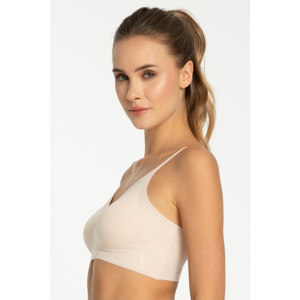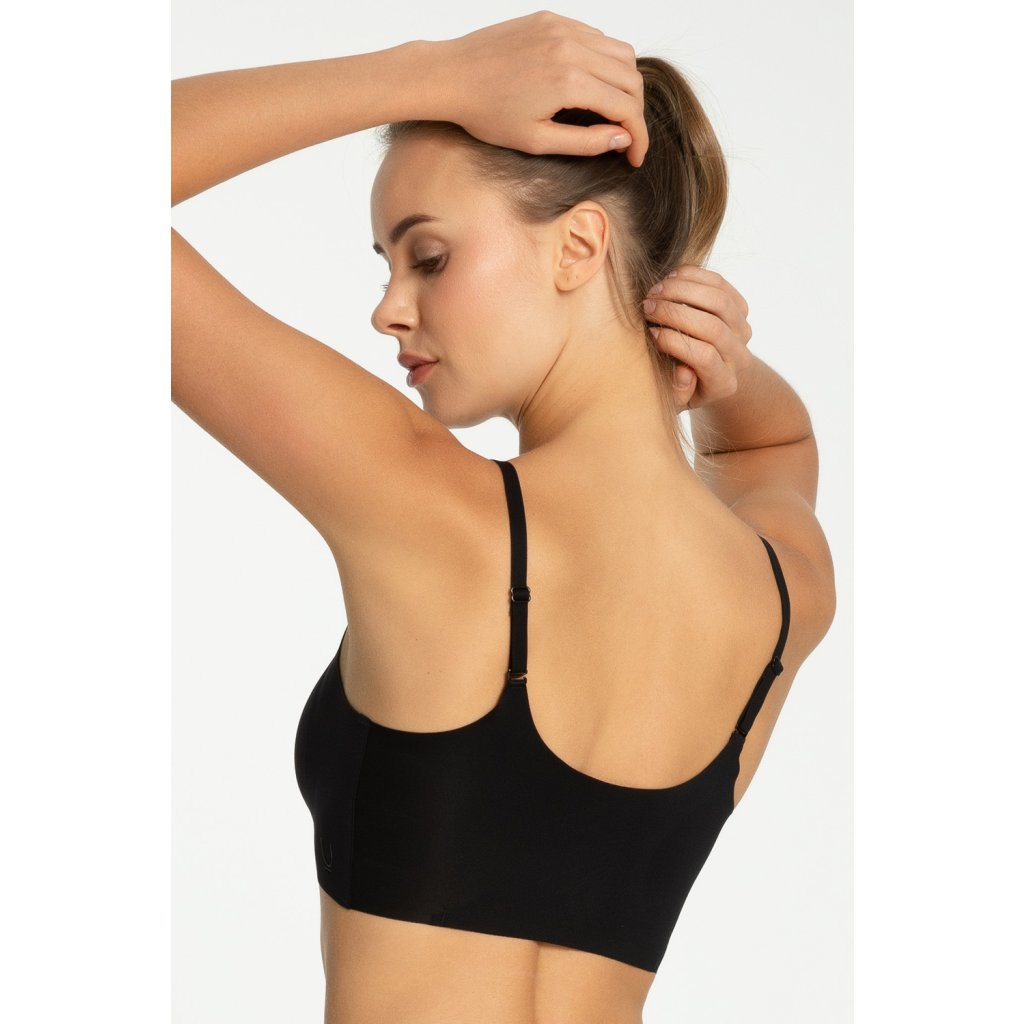 Elastický, protiskluzový spojovací pásek ve spodní části, spojující vložky do podprsenky, poskytuje stabilitu a zabraňuje jejich posunování