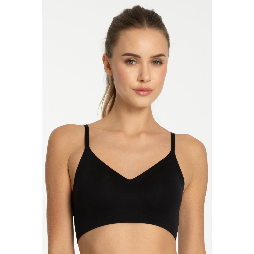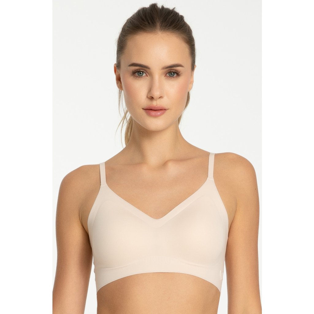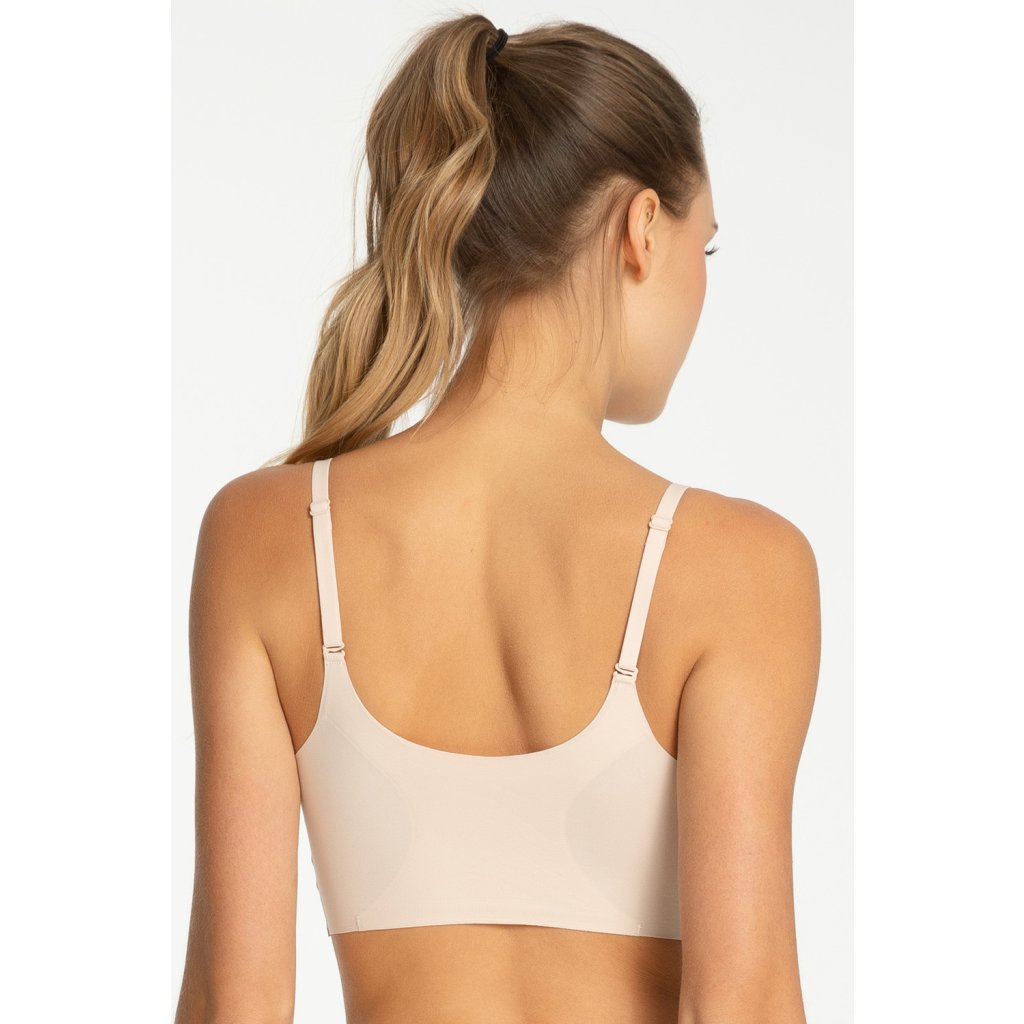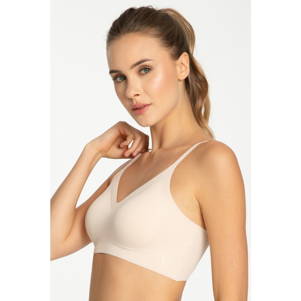 Elastický, protiskluzový spojovací pásek ve spodní části, spojující vložky do podprsenky, poskytuje stabilitu a zabraňuje jejich posunování