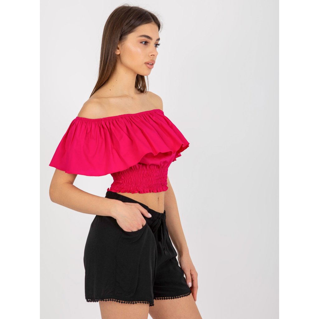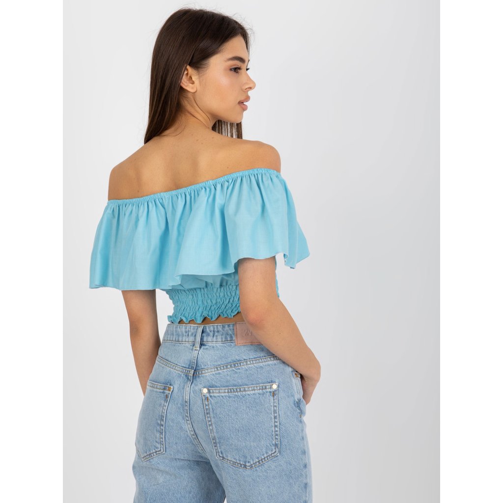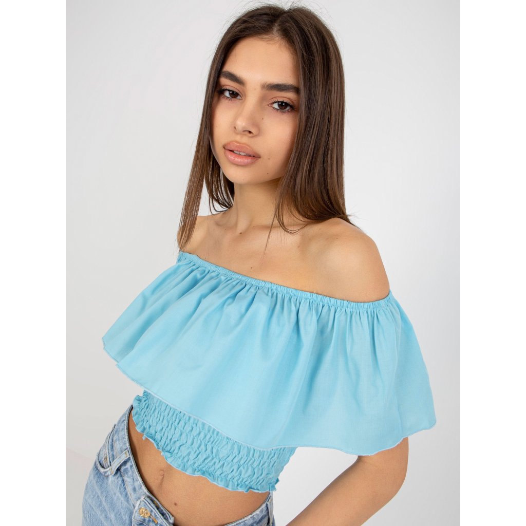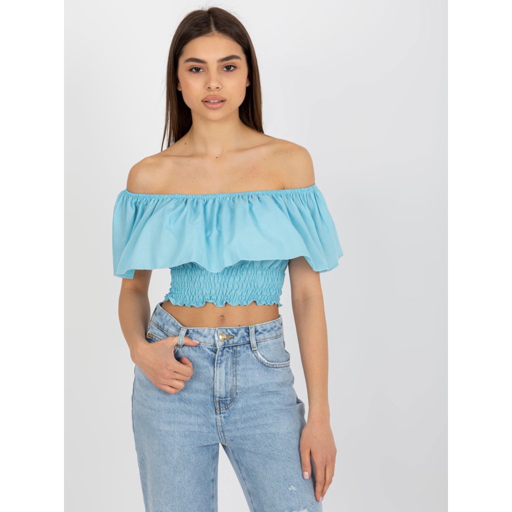 Dámský španělský top s odhalenými rameny s řasením.vzor: hladký