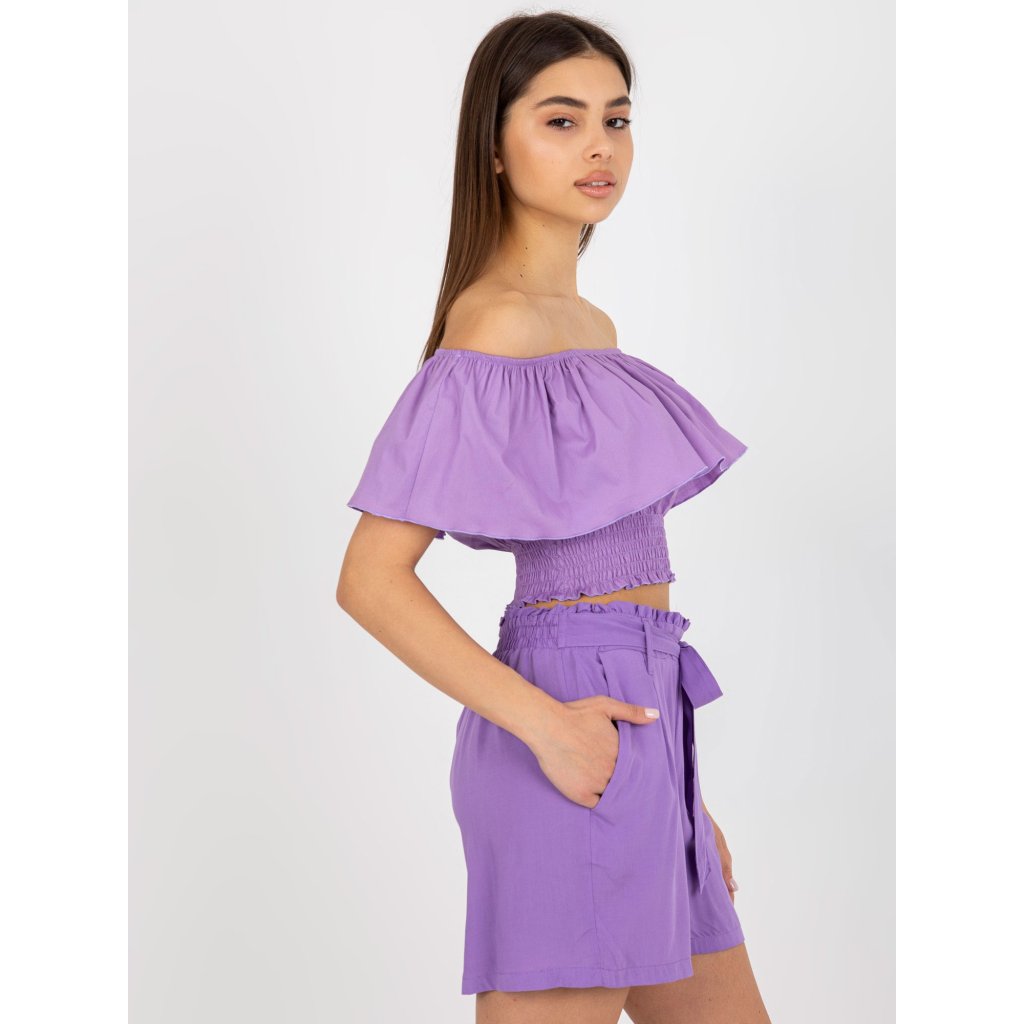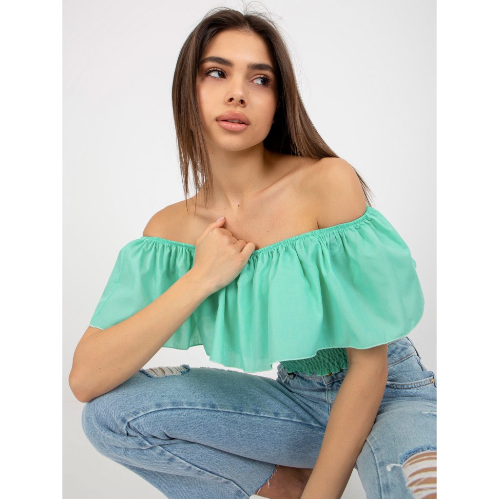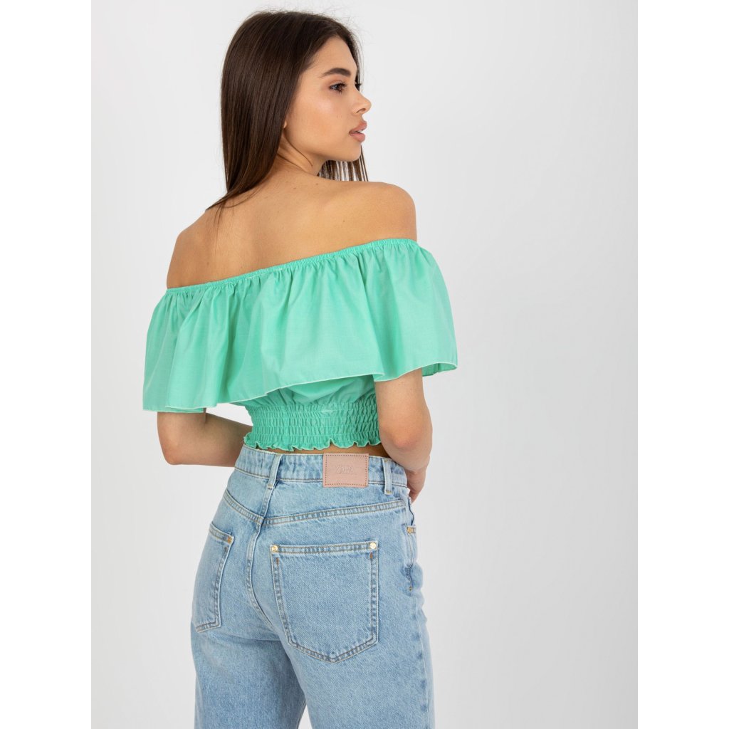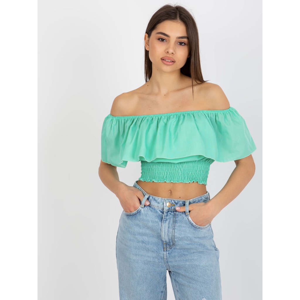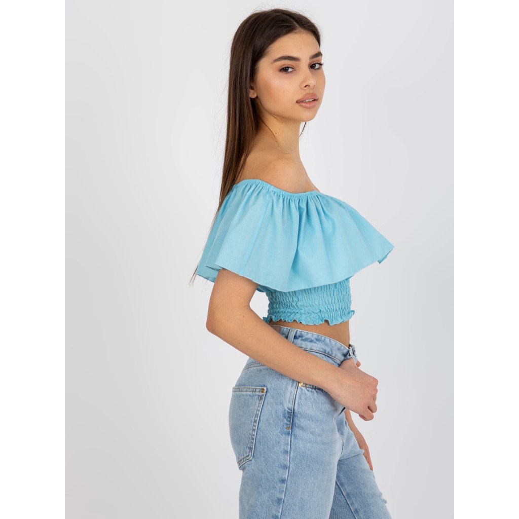 Dámský španělský top s odhalenými rameny s řasením.vzor: hladký