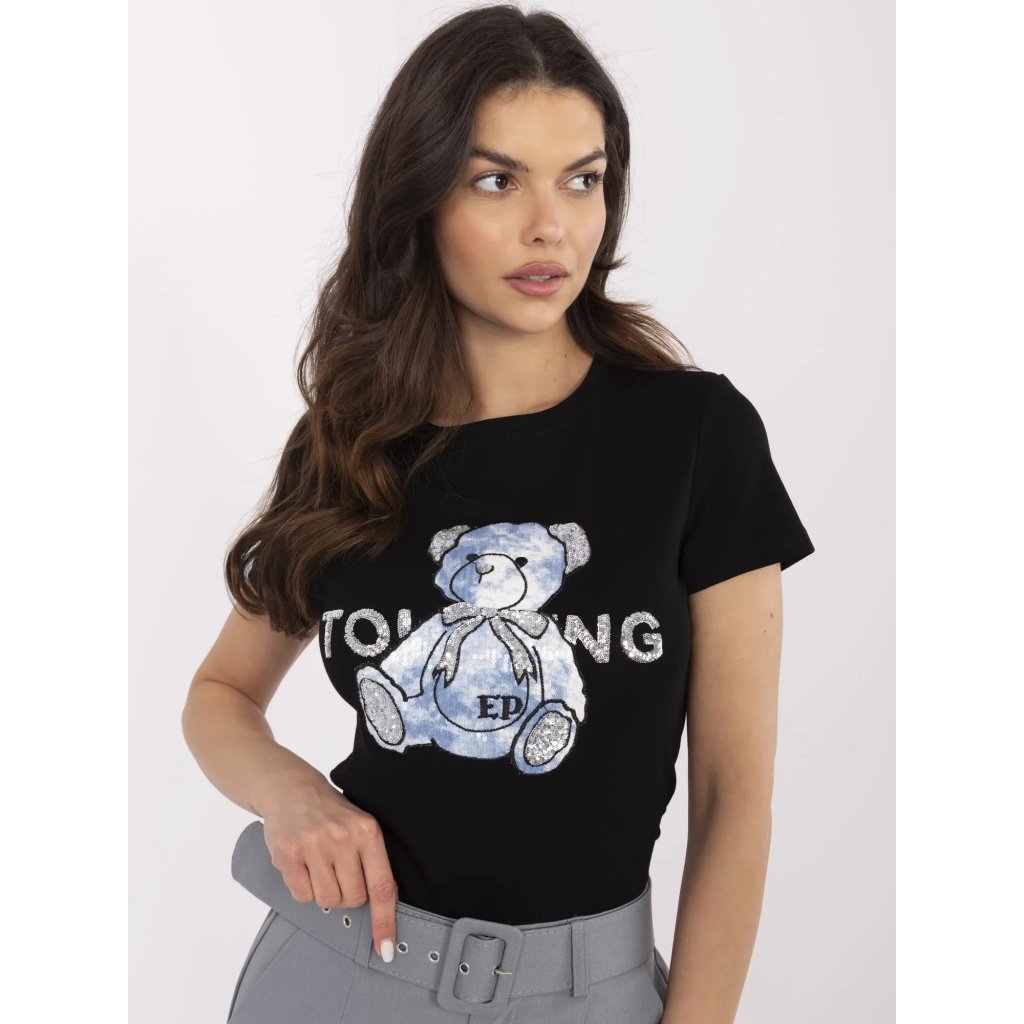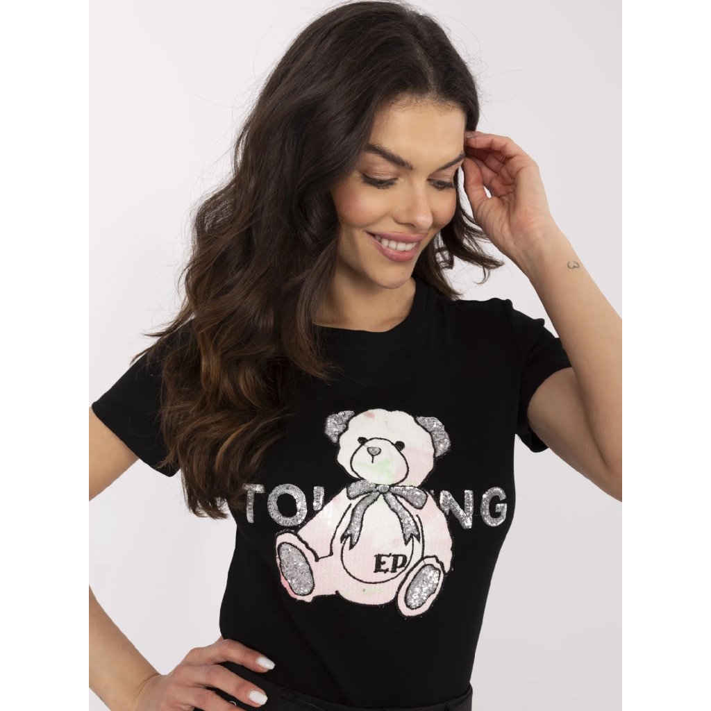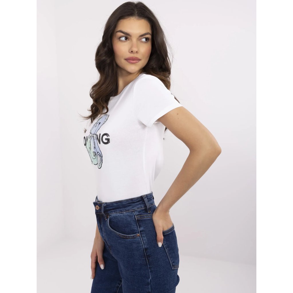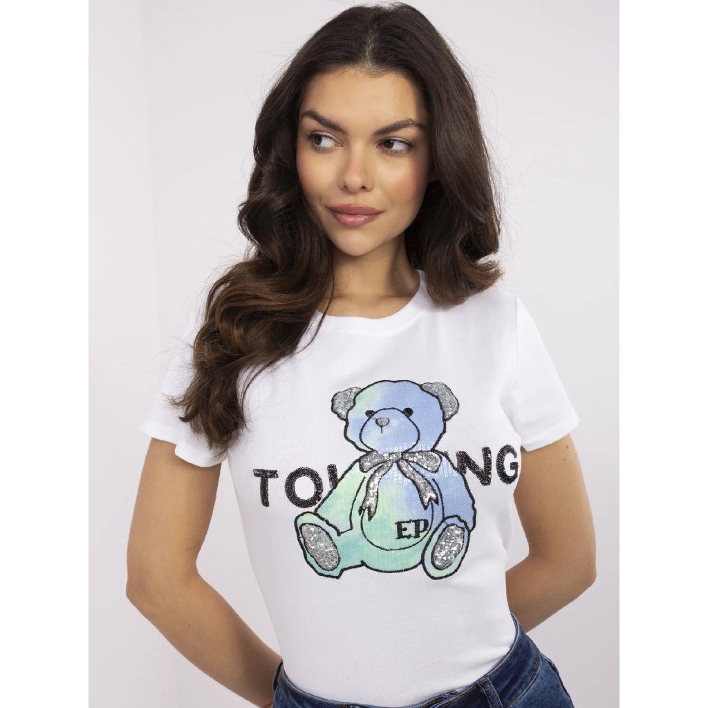 Wymiary t-shirtu w rozmiarze one size mierzone na płasko: szerokość pod pachami - 44 cm, długość rękawa - 16 cm (od szwu), szerokość w biodrach - 44 cm, długość całkowita - 61 cm.