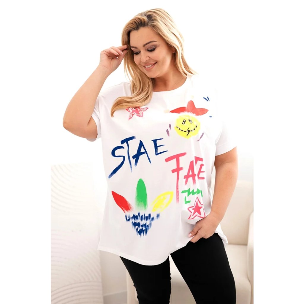 Zvolte originální vzhled a maximální pohodlí! Toto volné bavlněné tričko je ideální volbou pro ženy, které se chtějí odlišit v davu. Její jedinečný, ručně malovaný potisk s barevnými motivy dodává outfitu umělecký charakter a mladistvou energii. Díky příjemné tkanině s přídavkem elastanu se halenka skvěle přizpůsobí postavě a poskytuje pohodlí po celý den. Volný střih a krátký rukáv z ní činí skvělou volbu pro každodenní styling, setkání s přáteli nebo letní procházky. Je to oblečení, které nejen dobře vypadá, ale také zaručuje pocit volnosti.
