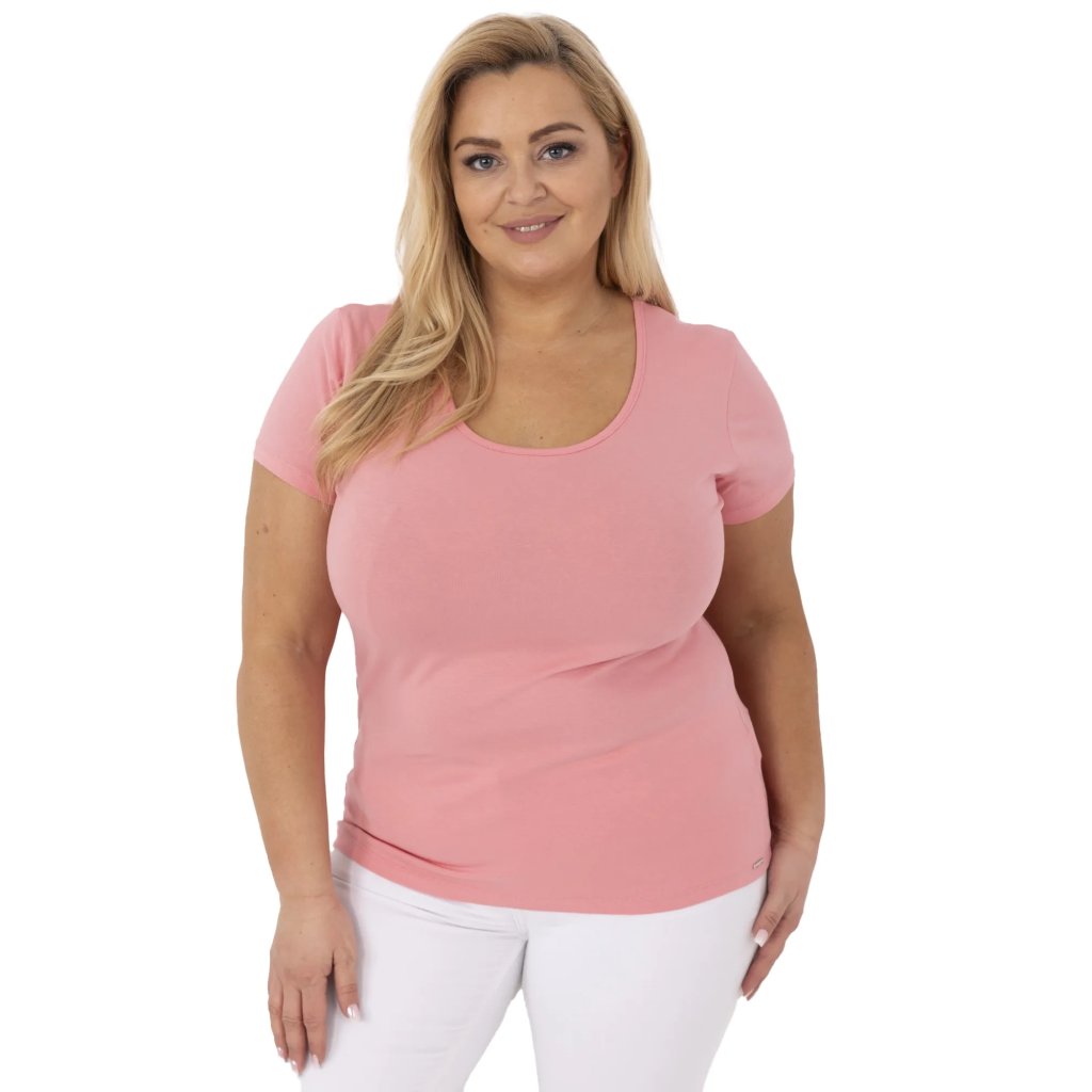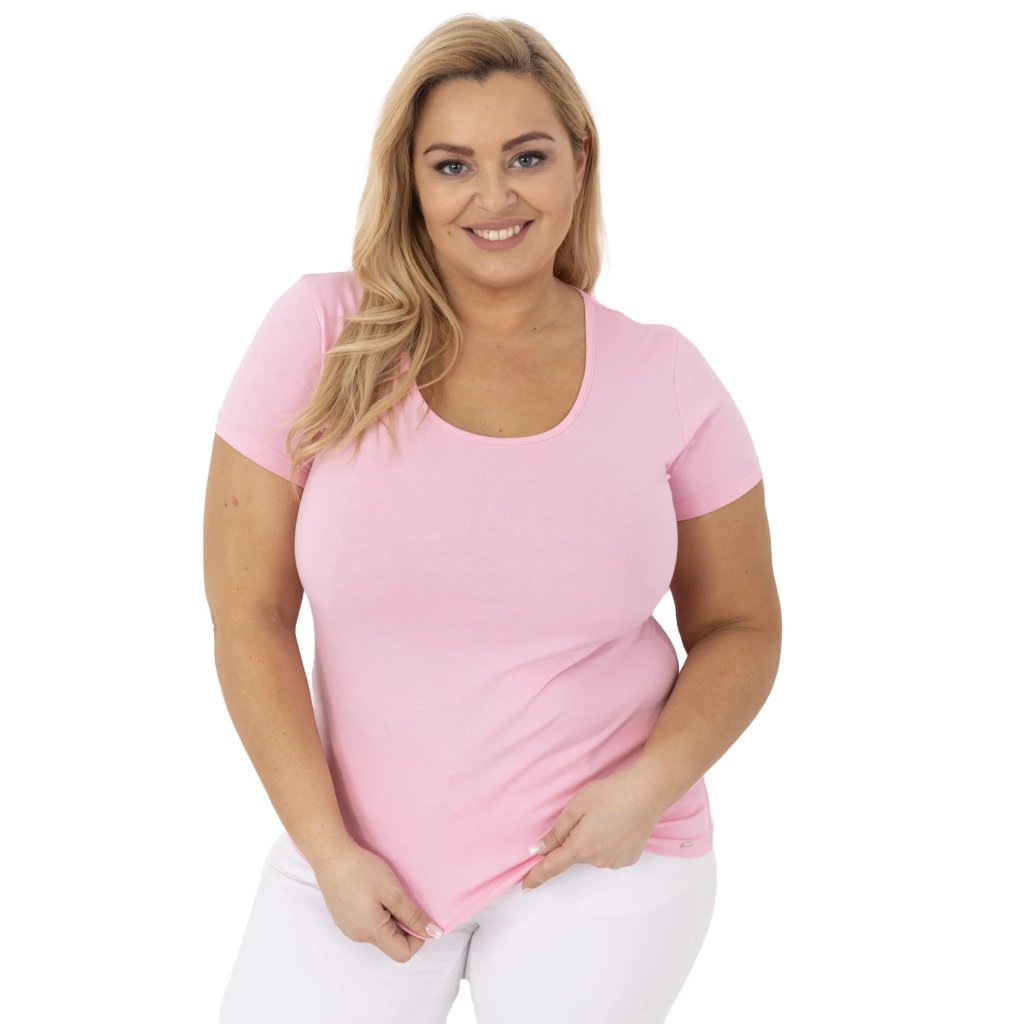 Dámské bavlněné jednobarevné tričko Plus Size s krátkým rukávem