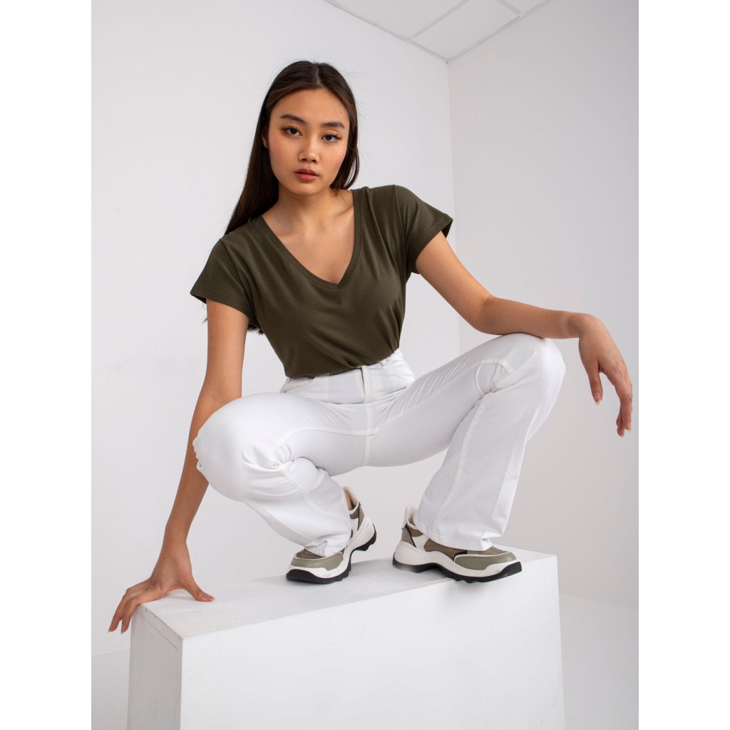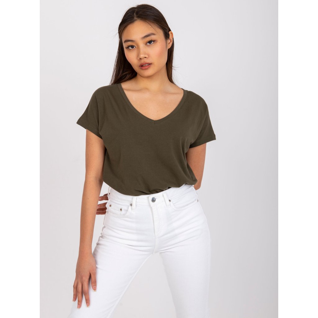 Dámské jednobarevné tričko s výstřihem do Vsložení materiálu: 90% bavlna, 10% elastan