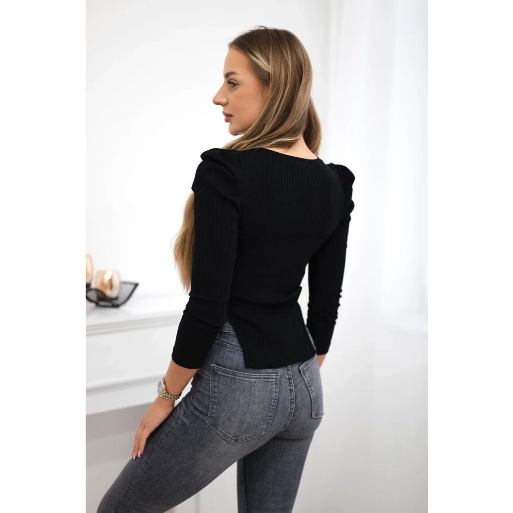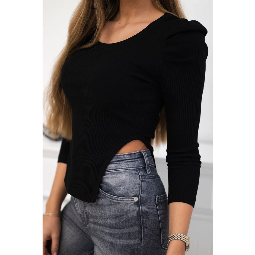 Představujeme vám módní halenku. Halenka má bufetové rukávy. Halenka z žebrované tkaniny. Boční rozparky ve spodní části. Halenka je vyrobena z vysoce kvalitního materiálu. Velikost je univerzální a vyhovuje dámám, které nosí velikost XS, S nebo M.
