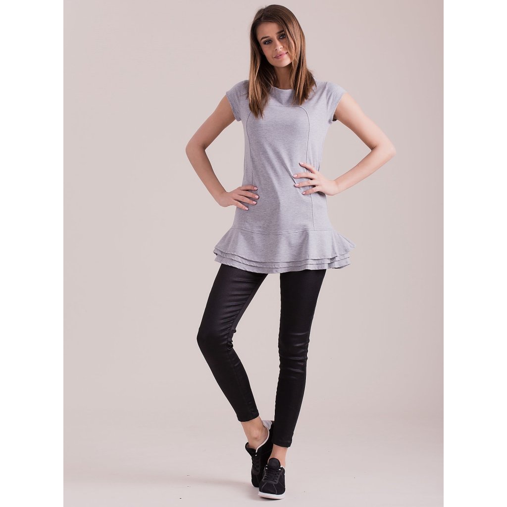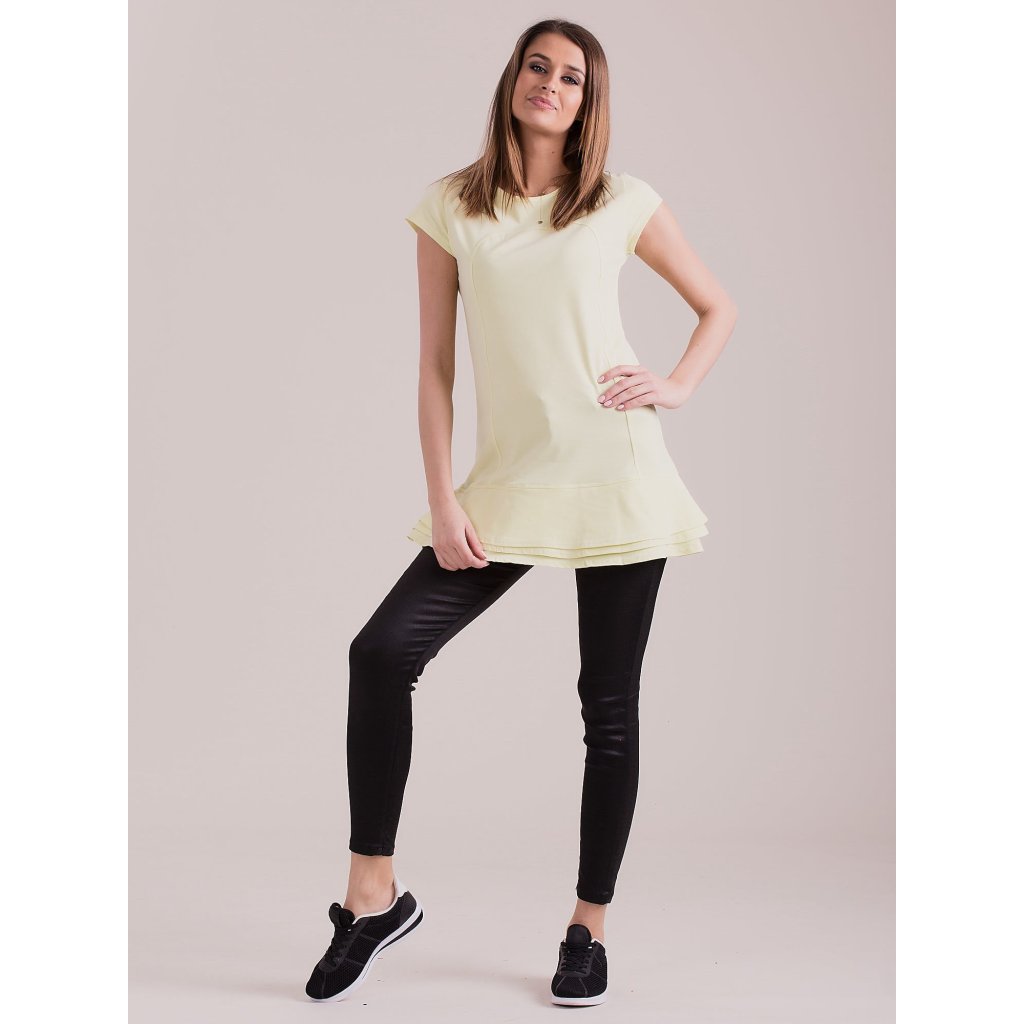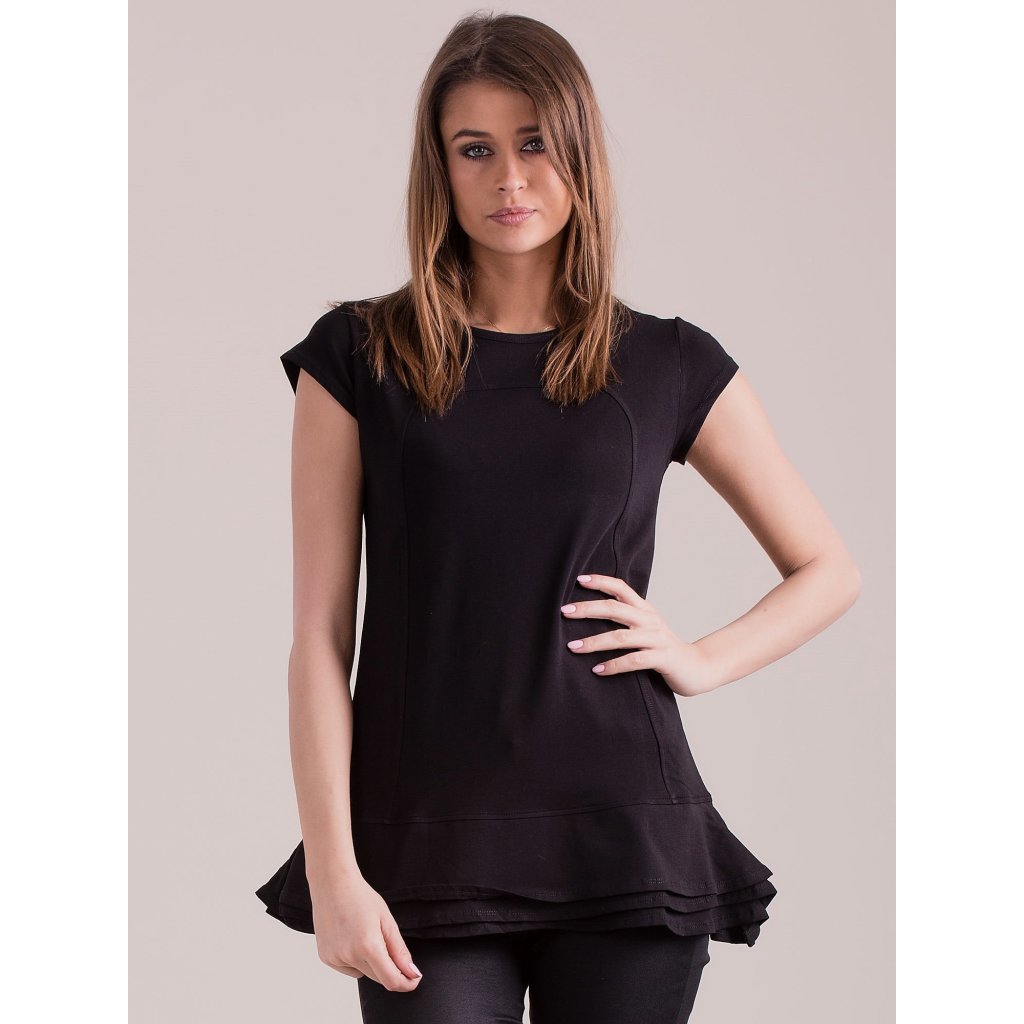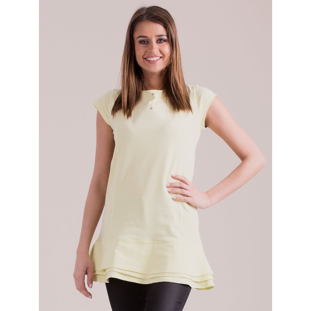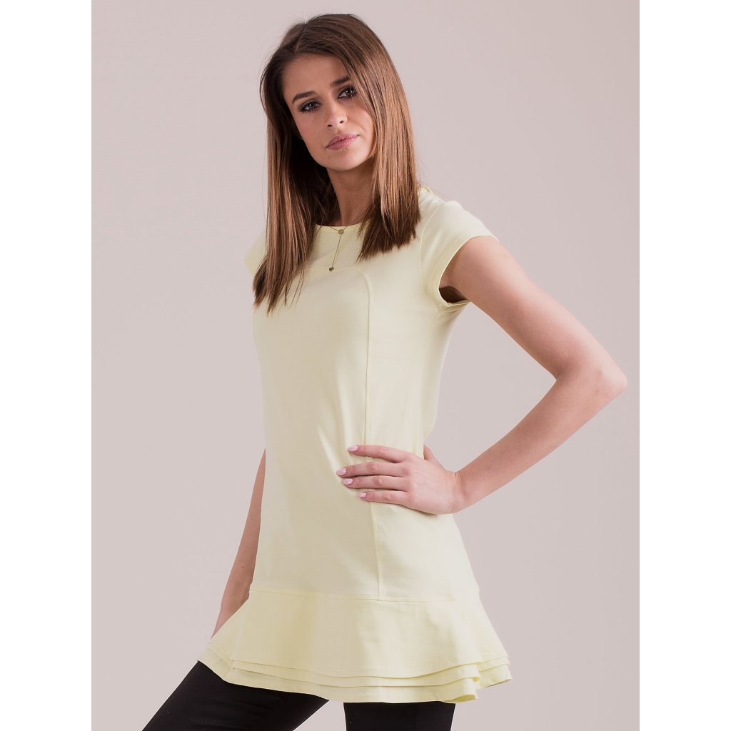 Dámská tunika s vrstvenými volány a s krátkým rukávem.
