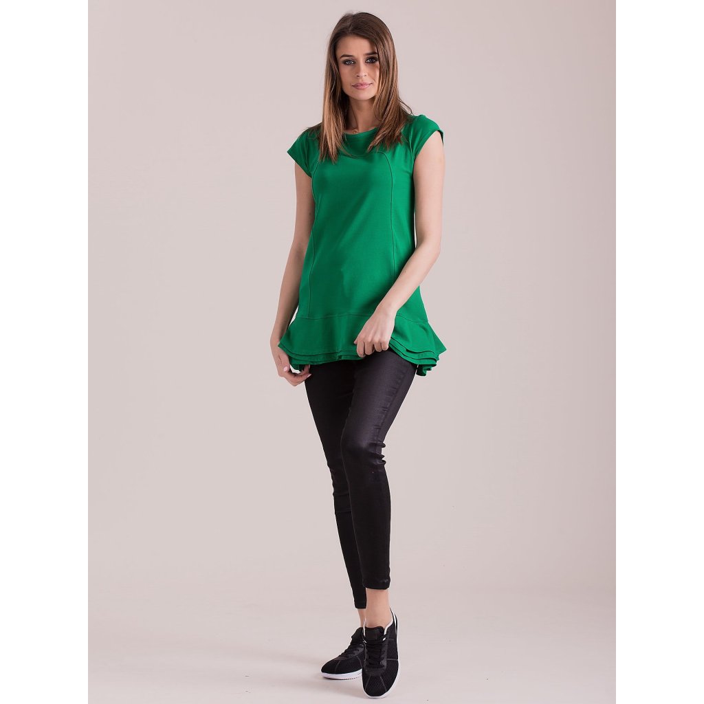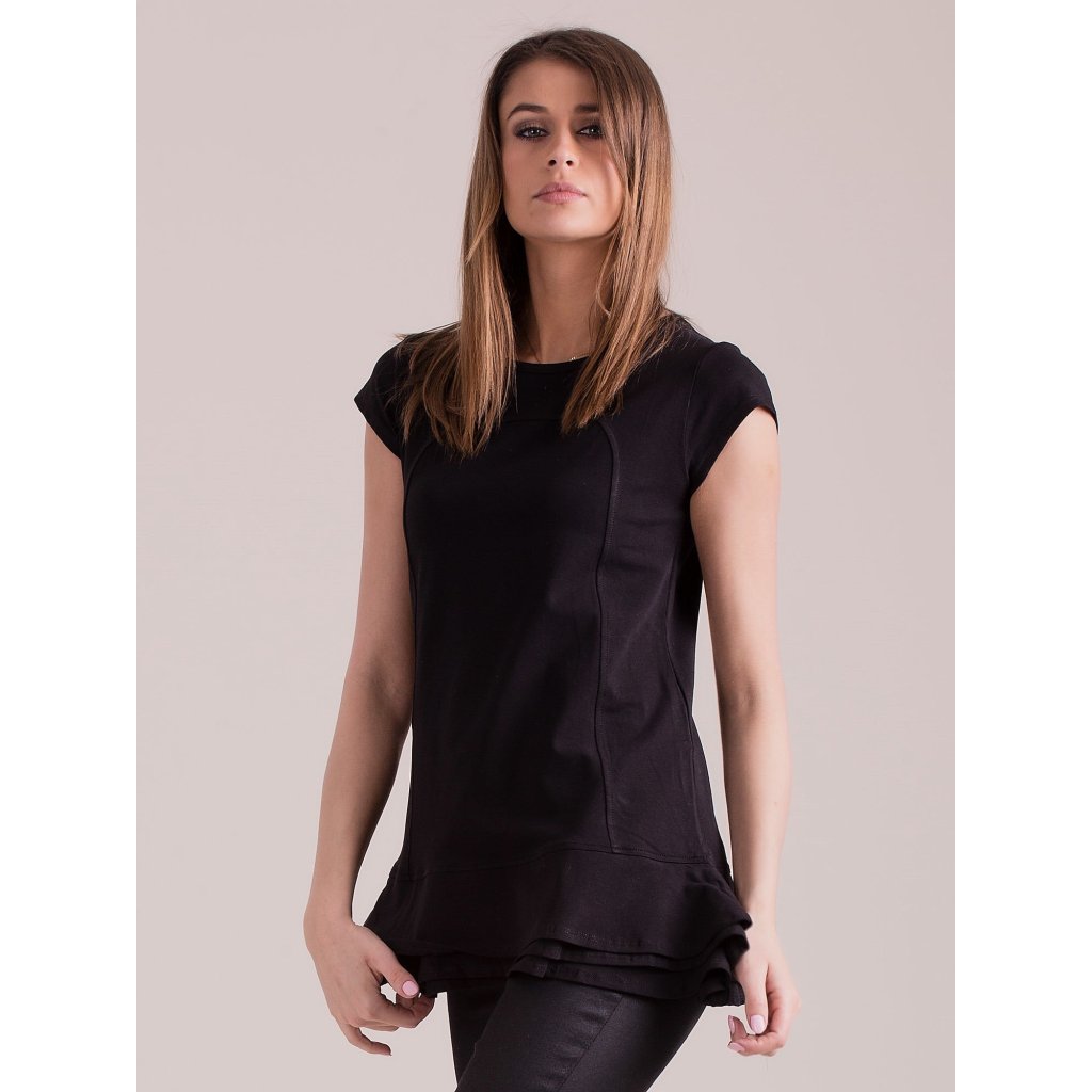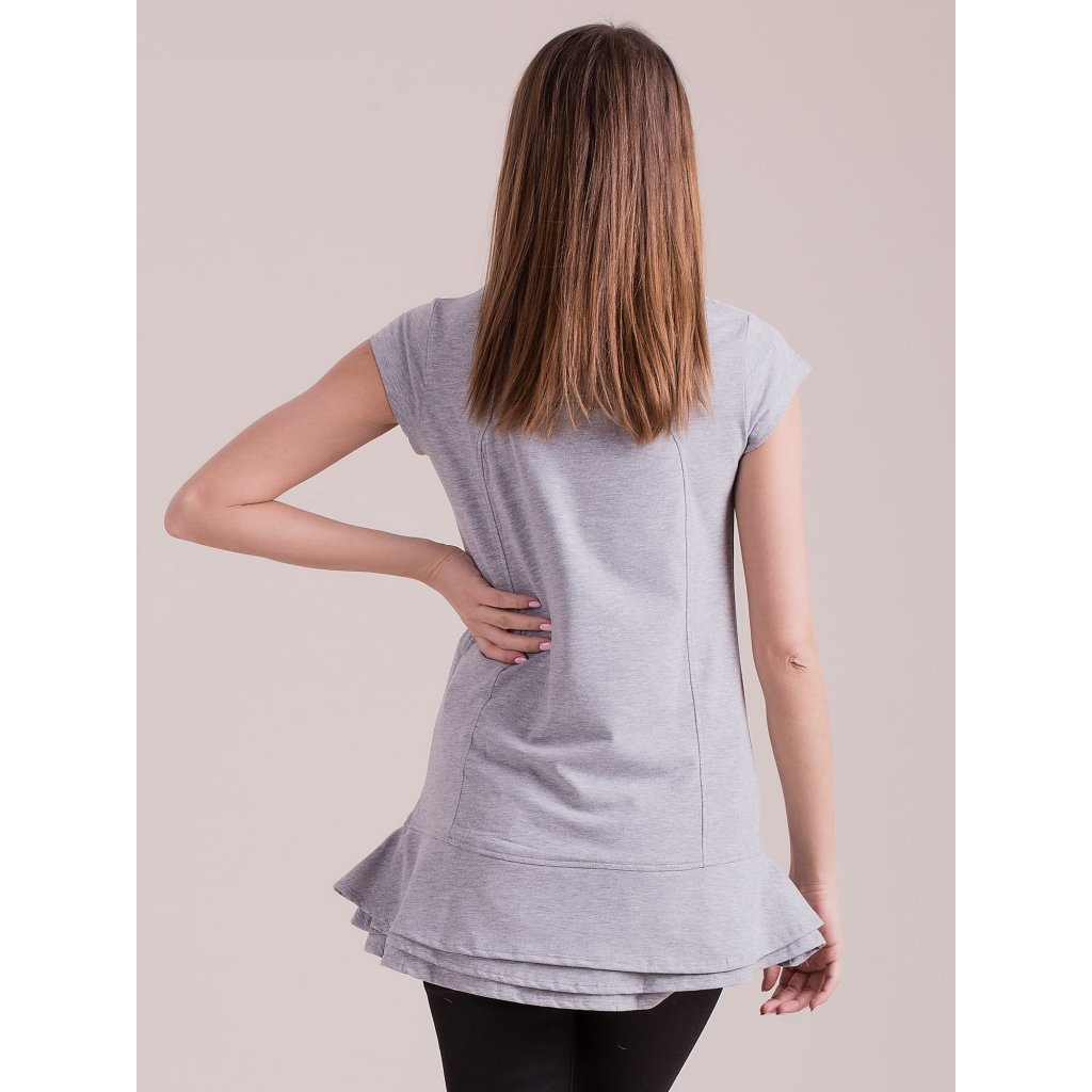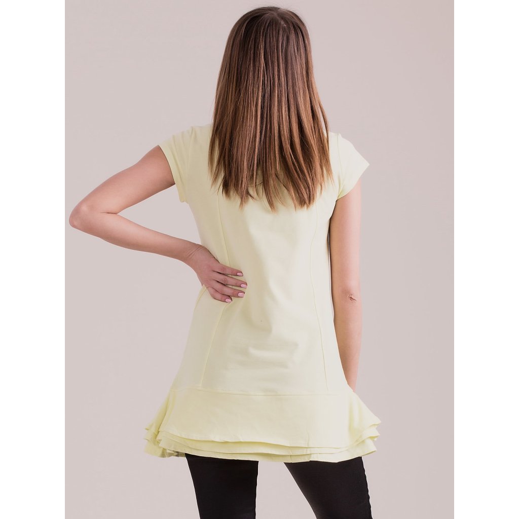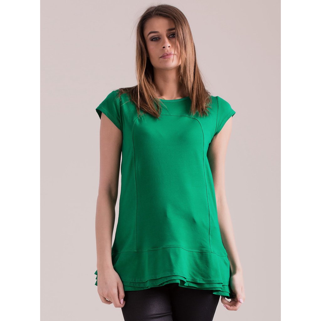 Dámská tunika s vrstvenými volány a s krátkým rukávem.