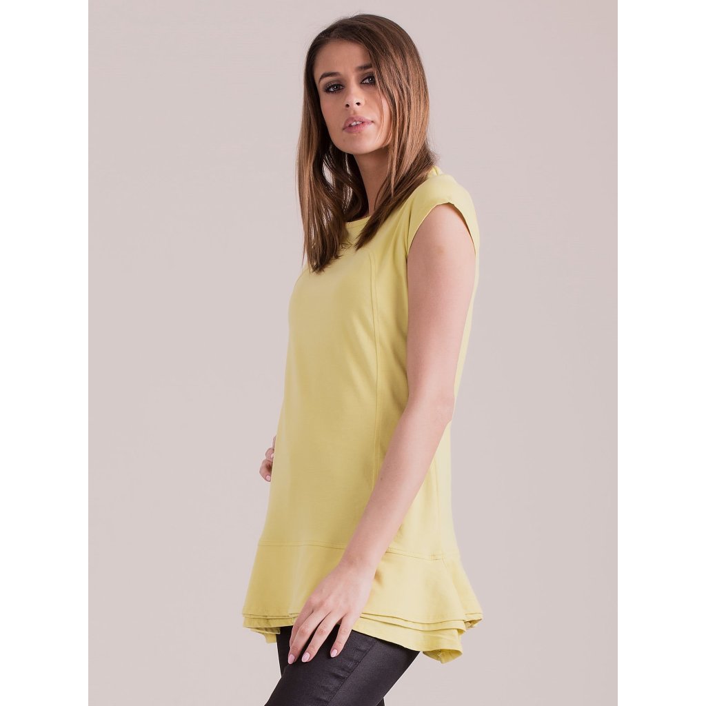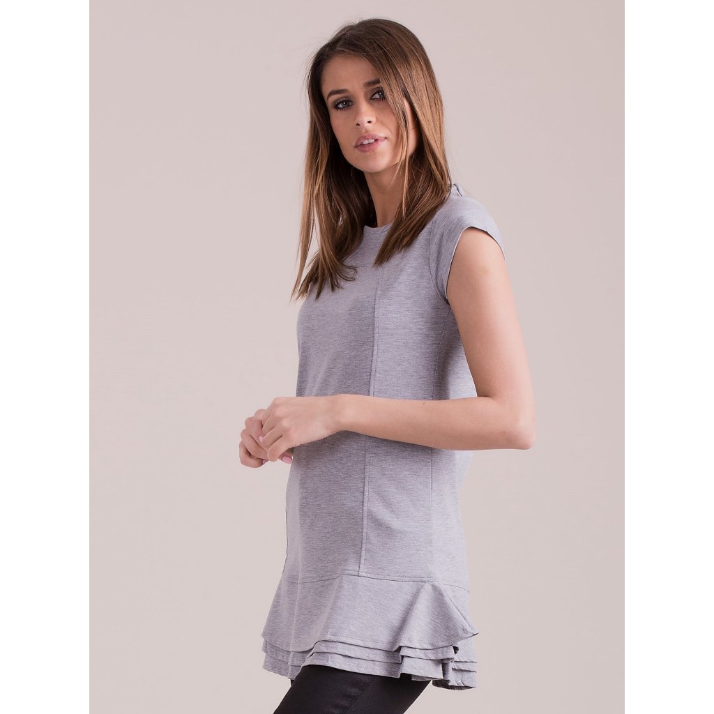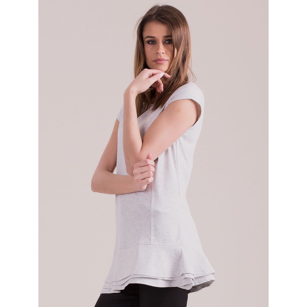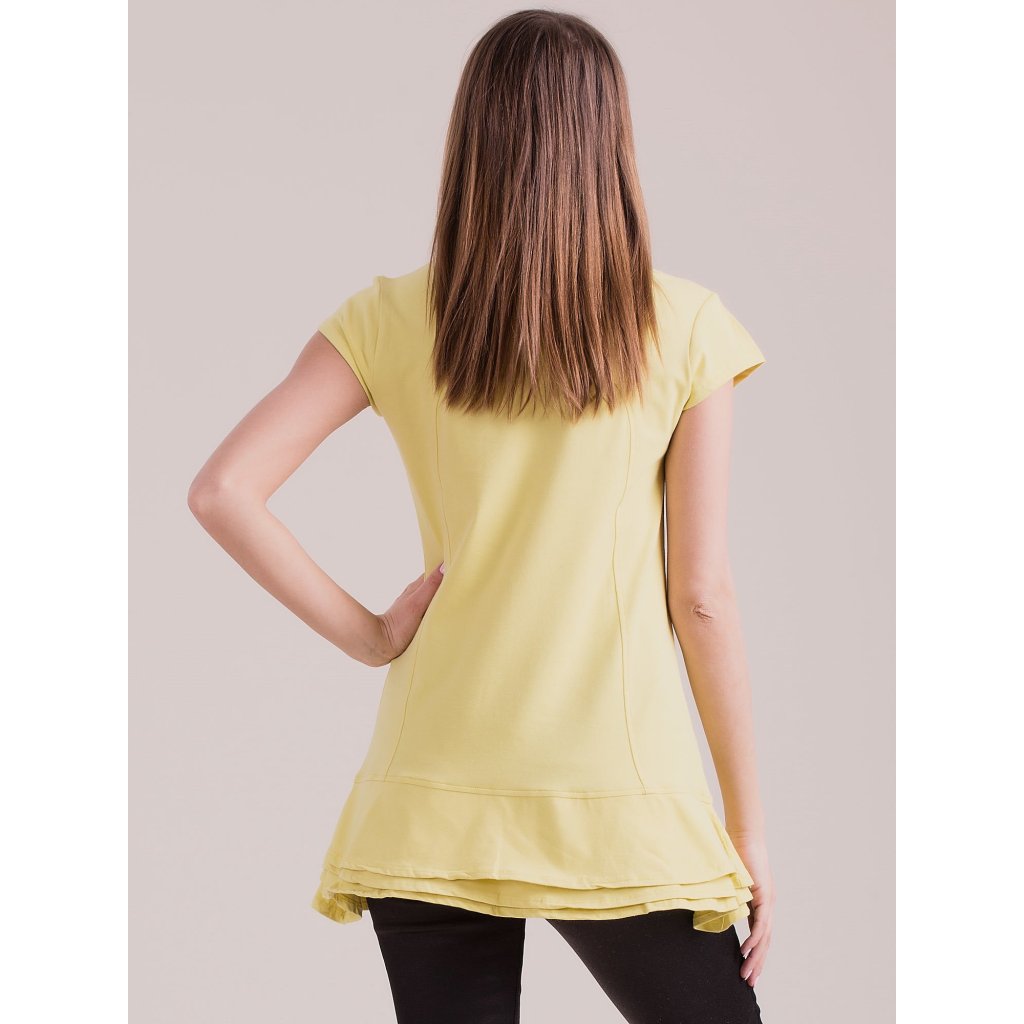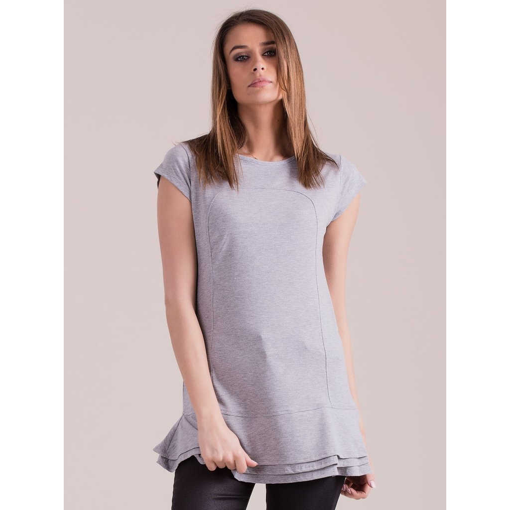 Dámská tunika s vrstvenými volány a s krátkým rukávem.