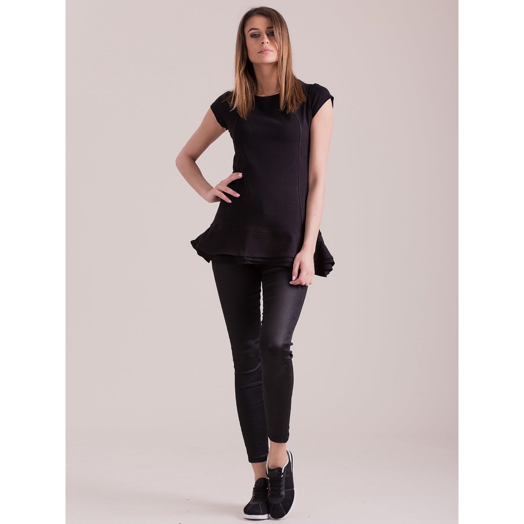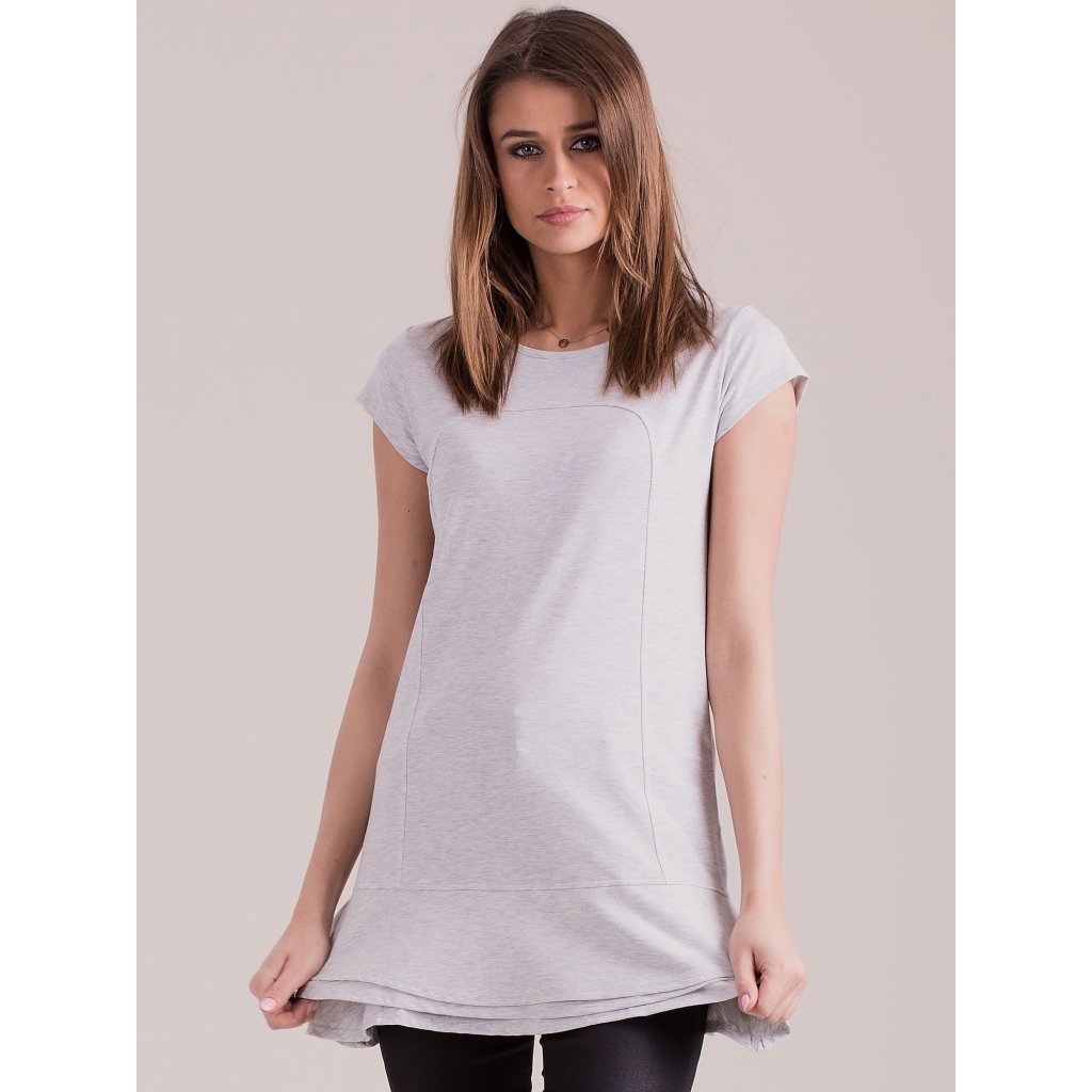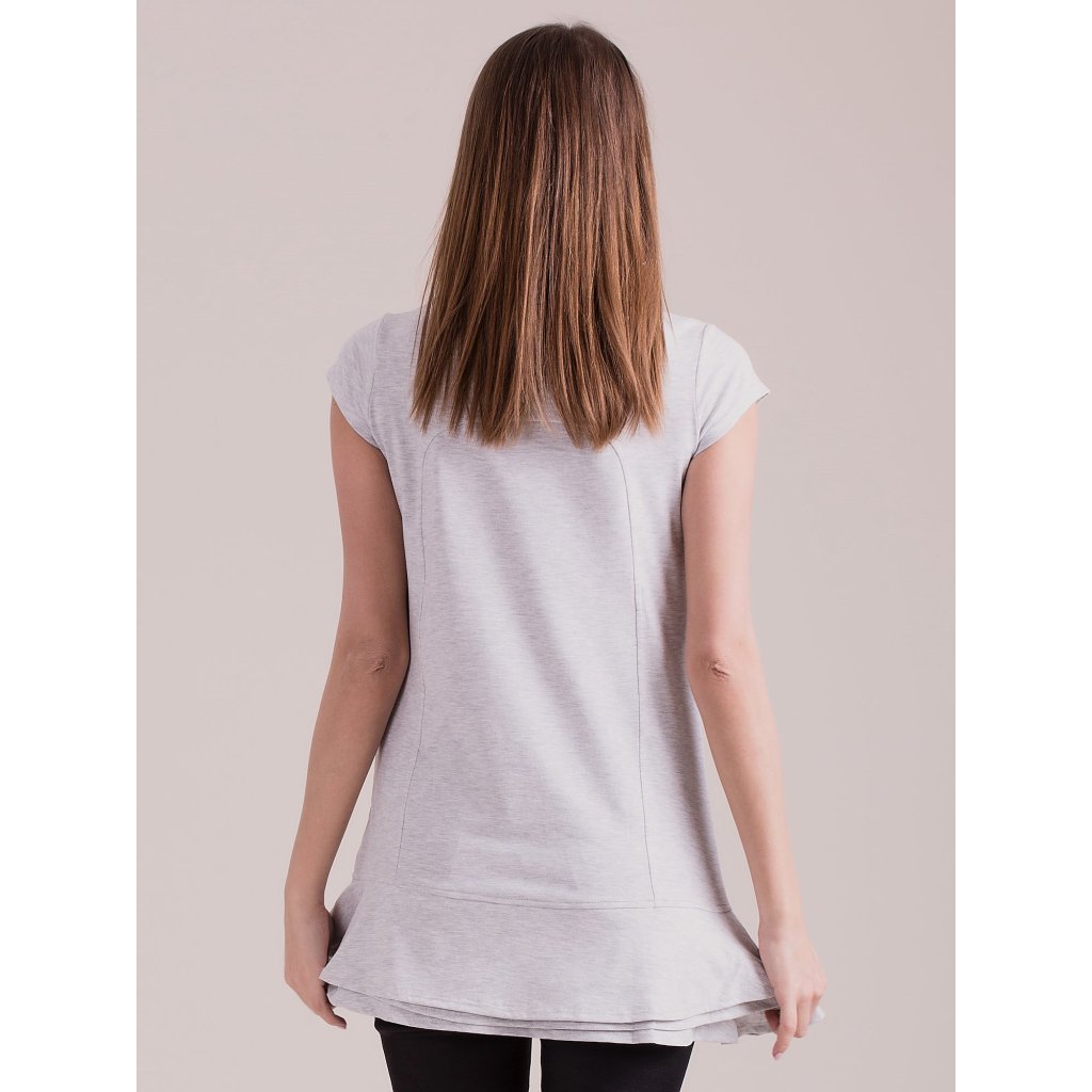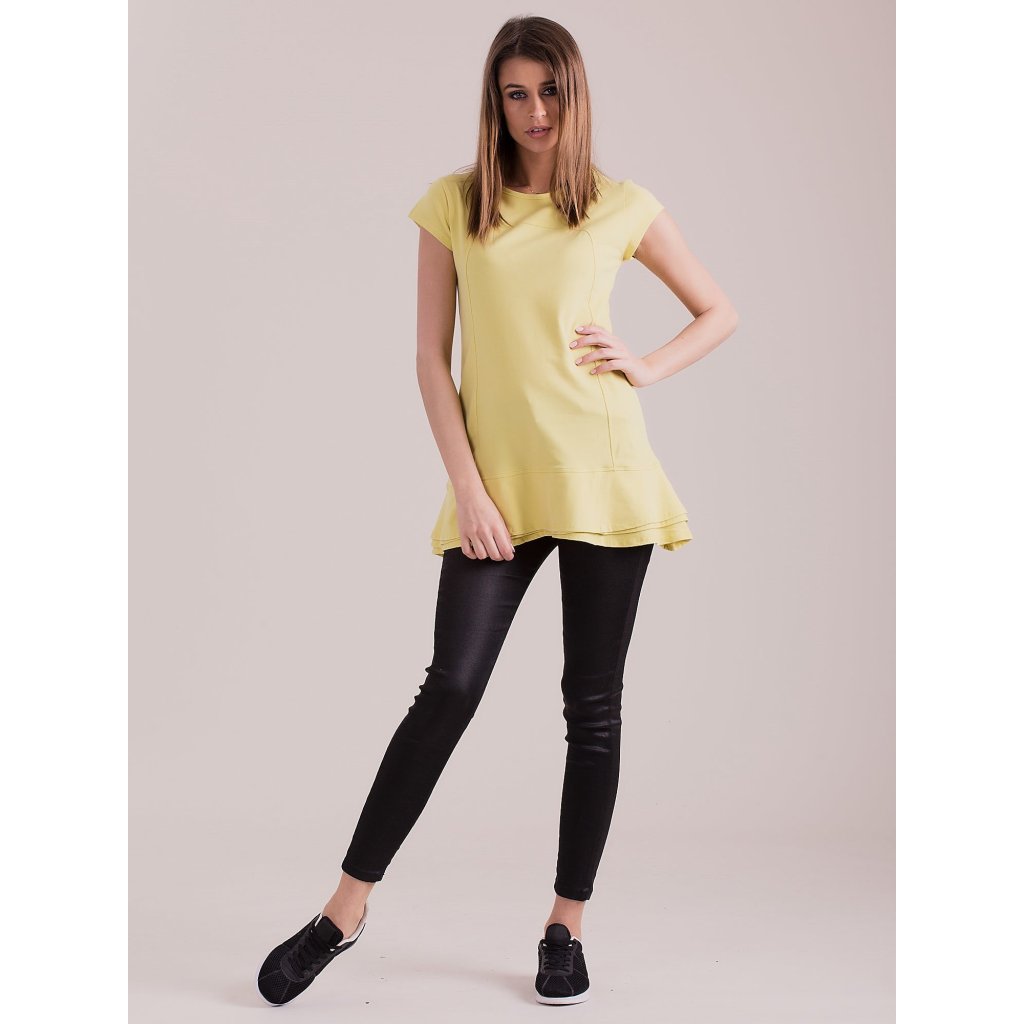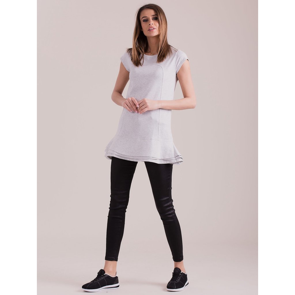 Dámská tunika s vrstvenými volány a s krátkým rukávem.