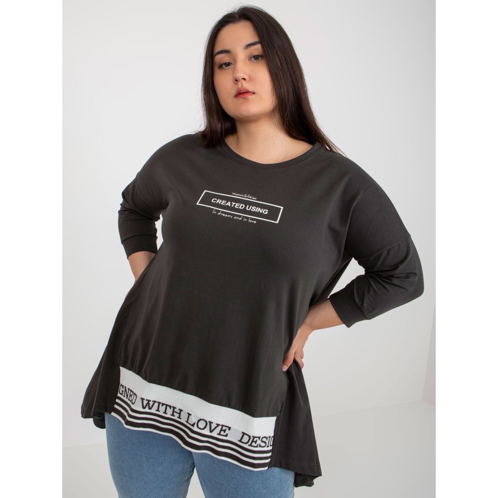 Dámská Plus size tunika s 3/4 rukávem a nápisem.
