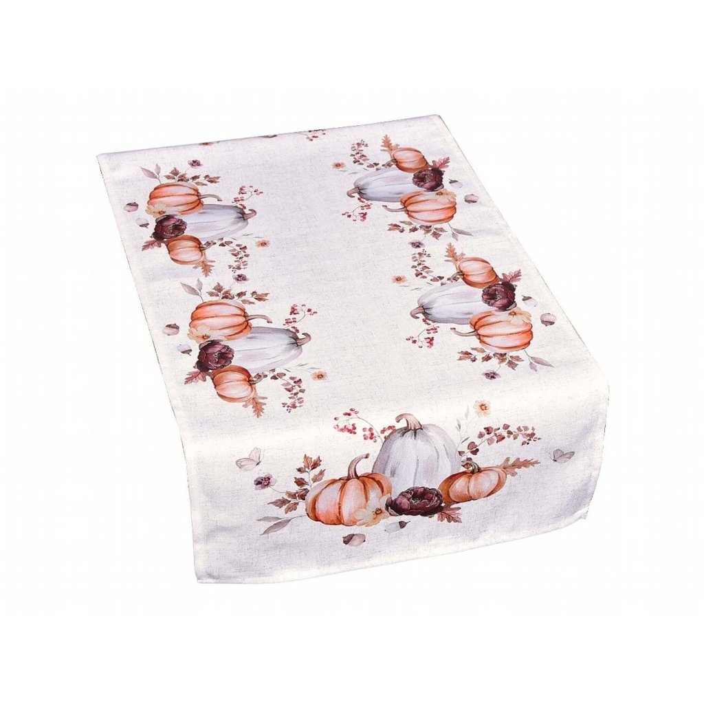 Stylový ubrus s podzimním motivem dýně o rozměru 40x90 cm je ideální dekorací pro jídelní stůl, konferenční stolek nebo komodu. Vnese do vašeho domova teplou a útulnou atmosféru.
