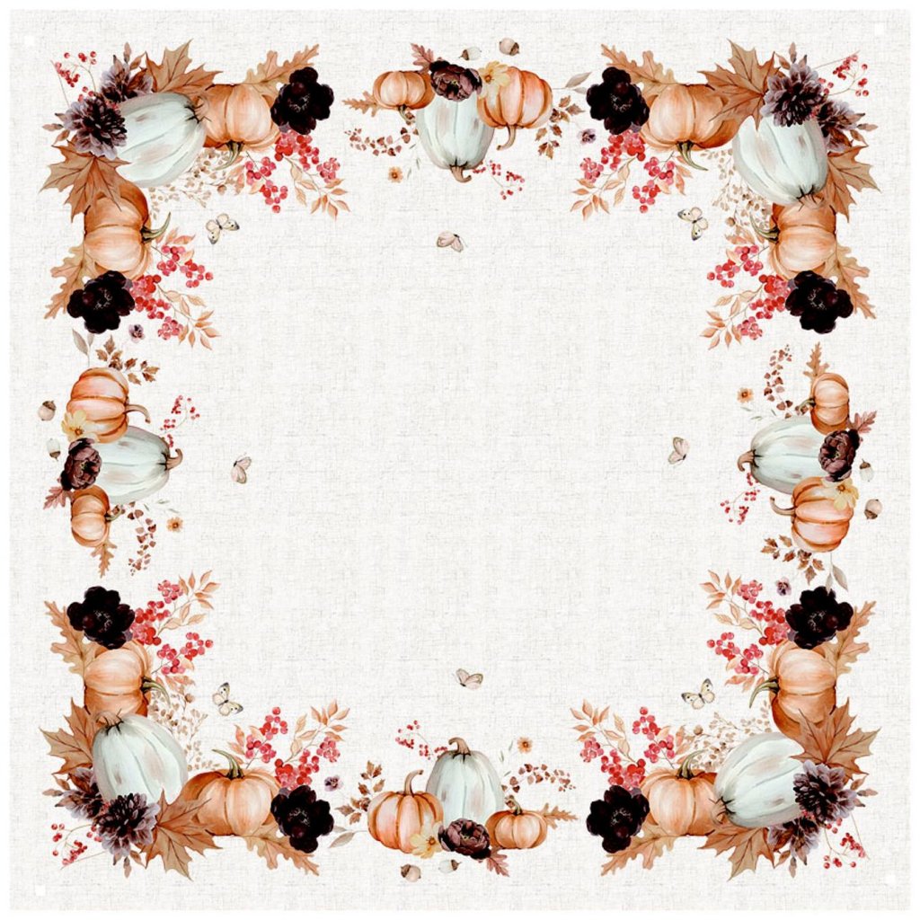 Stylový ubrus s podzimním motivem dýně o rozměru 85×85 cm je ideální dekorací pro jídelní stůl, konferenční stolek nebo komodu. Vnese do vašeho domova teplou a útulnou atmosféru.